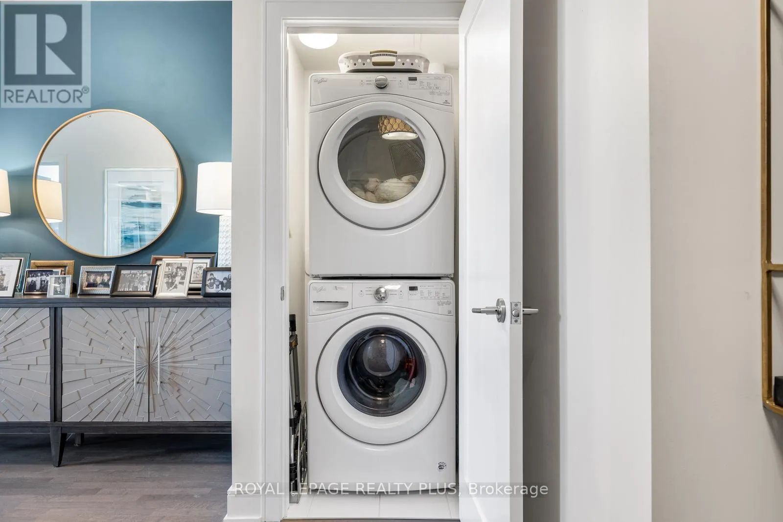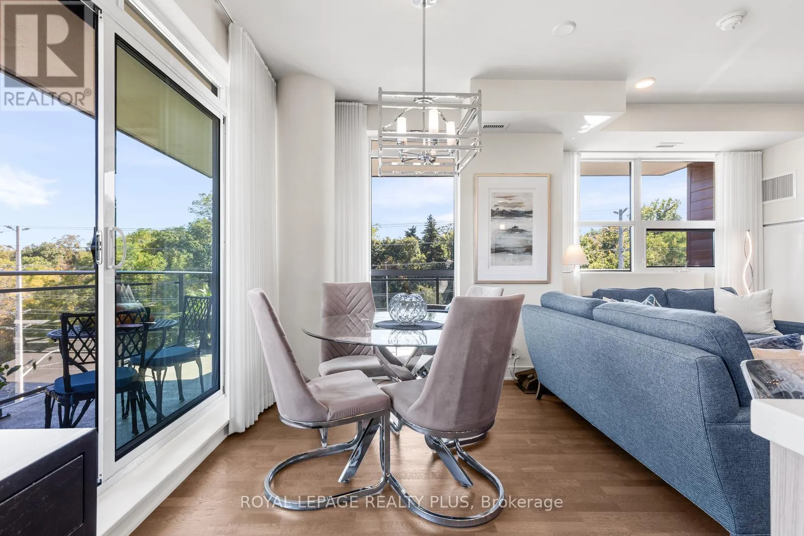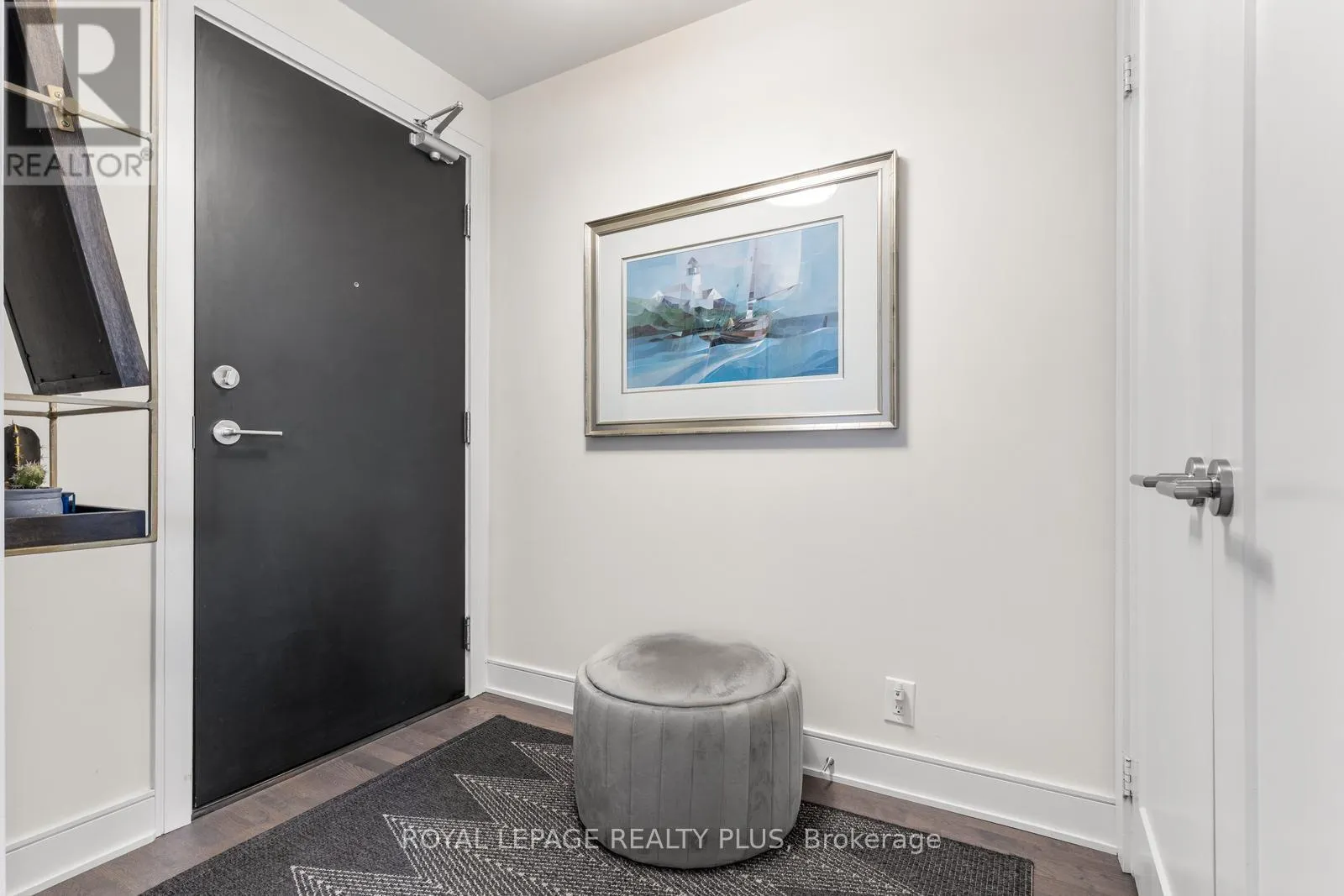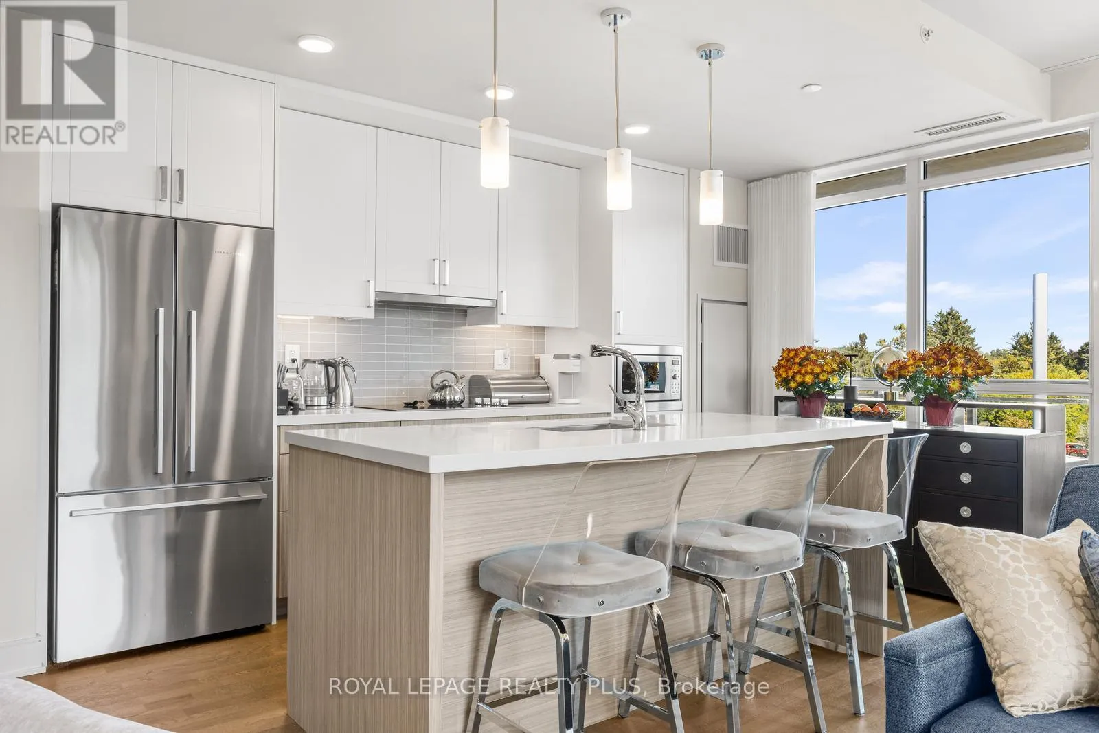 CLARKSON RD/MEADOWOOD Rich quality features and upgrades throughout this gorgeous corner unit with unobstructed southeastern views! The entry foyer leads to an open private space that is ideal for a computer center. Living room floor to ceiling custom built wall unit has electric fireplace, TV outlet, storage plus indirect lighting over open display cubes. Walk-out to balcony from corner dining area, beautiful large surround windows. The Kitchen is marvelously complete! Stainless steel appliances, double door fridge, pot drawers, extra shelves, cupboard organizers, granite counters, large island plus a built-in credenza with upper shelves. Primary bedroom, 3-pc ensuite, organized walk-in closet and blind on remote. This split bedroom model also has a 4 pc bath with jetted tub. Full size washer/ dryer. Hardwood throughout. Parking space, electric car charger, locker on suite floor. Conveniently located this well designed 2-bedroom condo is filled with custom upgrades and so much more! (id:27476)