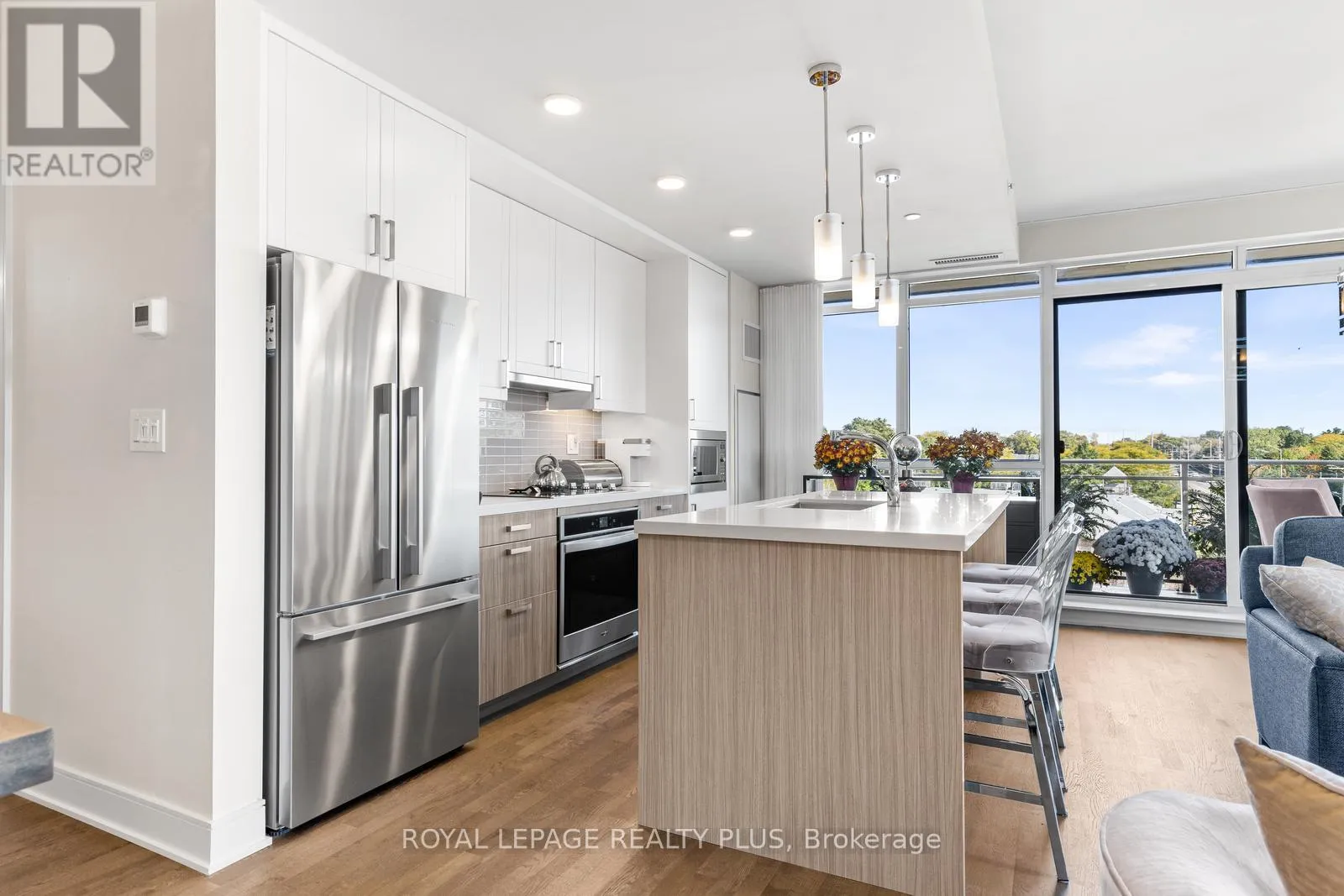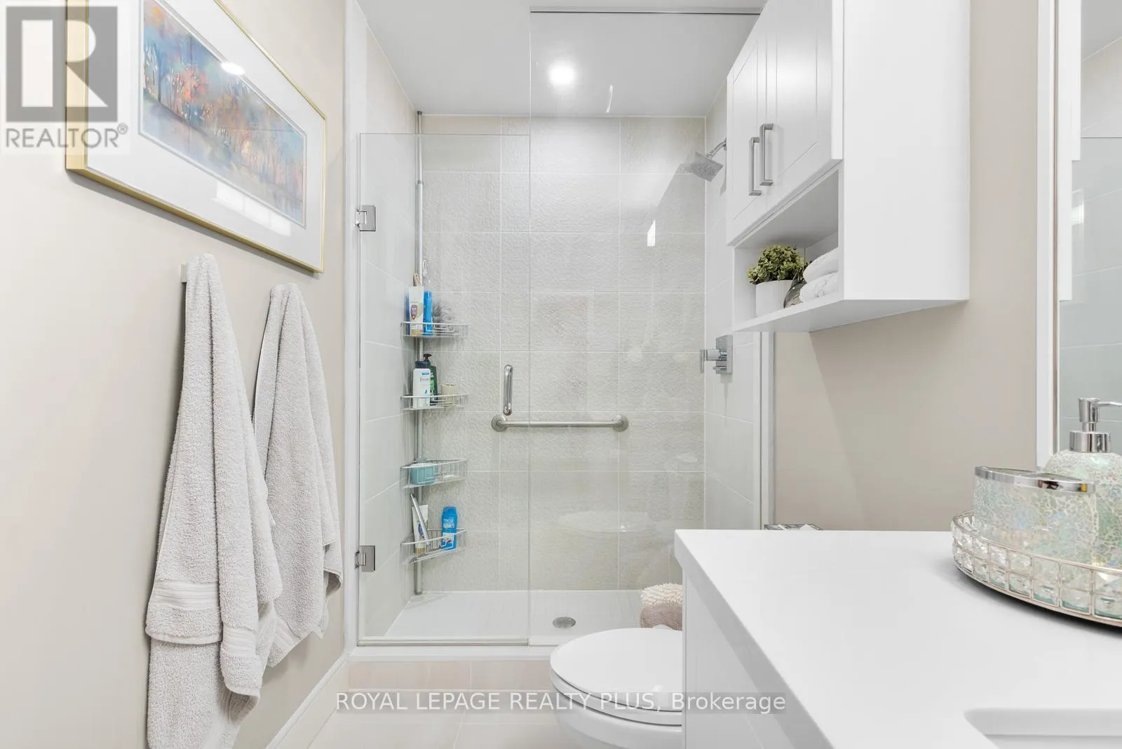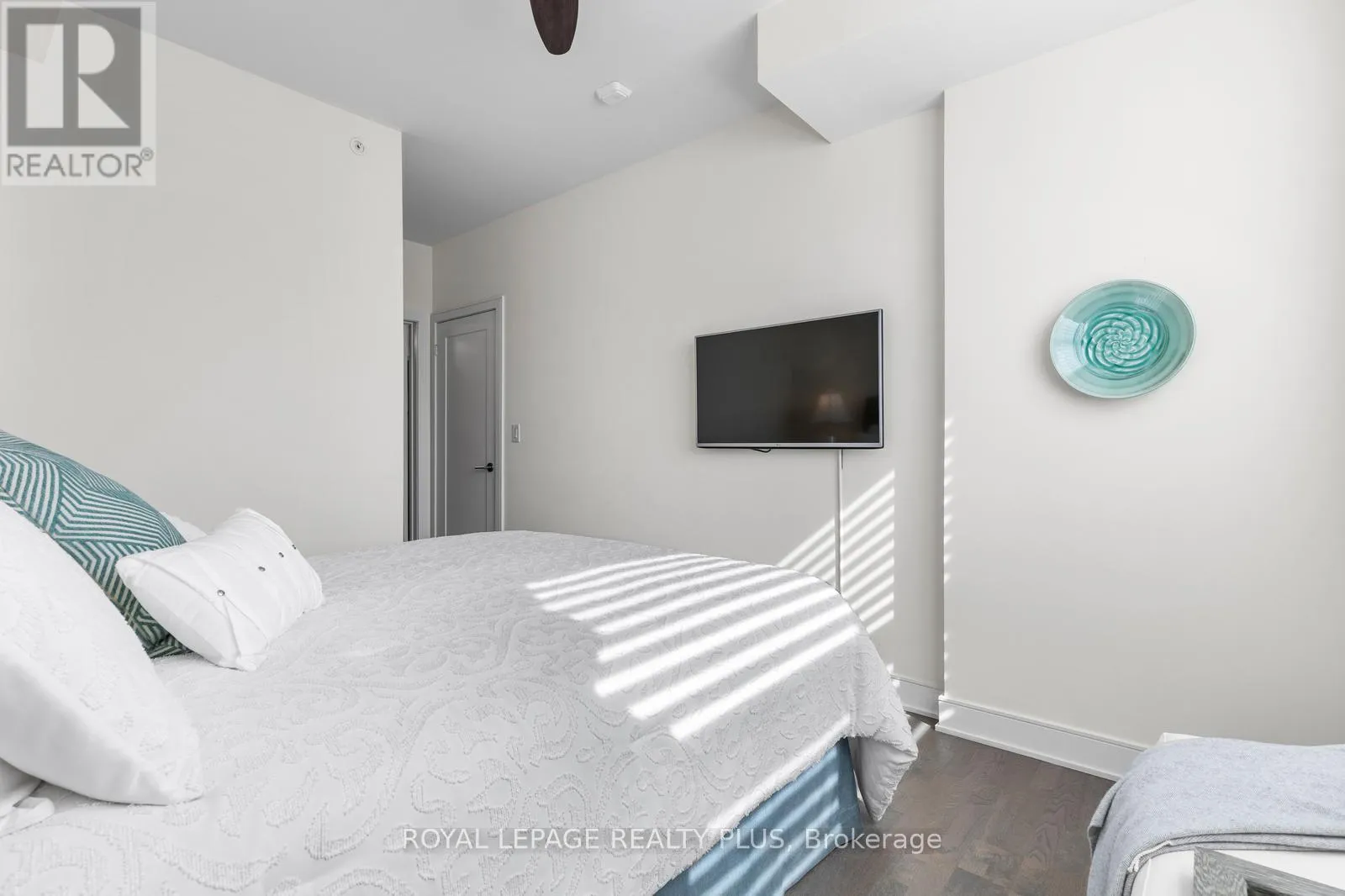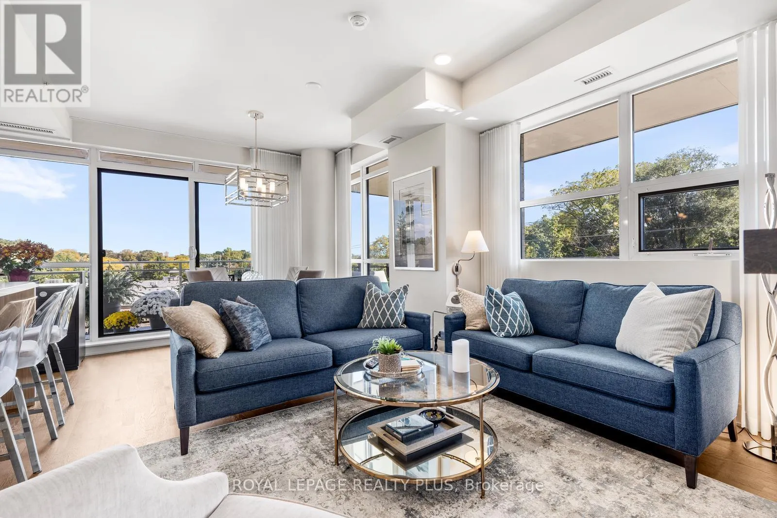 CLARKSON RD/MEADOWOOD Rich quality features and upgrades throughout this gorgeous corner unit with unobstructed southeastern views! The entry foyer leads to an open private space that is ideal for a computer center. Living room floor to ceiling custom built wall unit has electric fireplace, TV outlet, storage plus indirect lighting over open display cubes. Walk-out to balcony from corner dining area, beautiful large surround windows. The Kitchen is marvelously complete! Stainless steel appliances, double door fridge, pot drawers, extra shelves, cupboard organizers, granite counters, large island plus a built-in credenza with upper shelves. Primary bedroom, 3-pc ensuite, organized walk-in closet and blind on remote. This split bedroom model also has a 4 pc bath with jetted tub. Full size washer/ dryer. Hardwood throughout. Parking space, electric car charger, locker on suite floor. Conveniently located this well designed 2-bedroom condo is filled with custom upgrades and so much more! (id:27476)