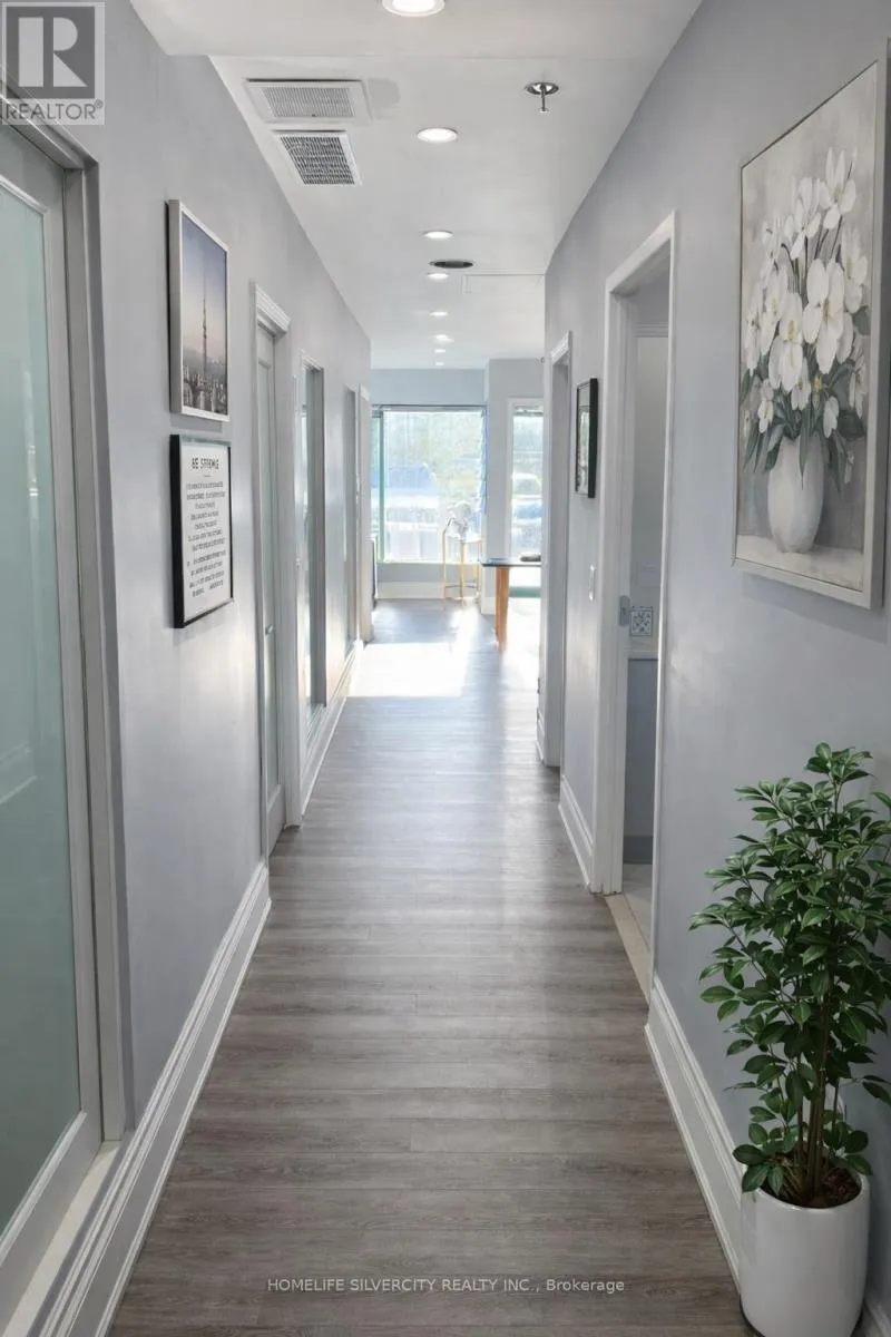 Derry & Tranmere Prime location with a fully move-in-ready office space.This main-floor commercial unit offers excellent visibility, easy access, and a professional layout ideal for a wide range of businesses. The space features stylish vinyl flooring, bright pot lighting throughout, and a welcoming reception area that creates a strong first impression. The unit includes multiple functional rooms, a modern entertainment and meeting area, dedicated training and office spaces, convenient washrooms, and a kitchen area for staff. A private front entrance allows for clear branding, with signage opportunities to showcase your business. Ample on-site parking ensures convenience for both clients and employees. Flexible in design and layout, this space can be easily customized to suit your business needs. A rare opportunity to secure a high-exposure, main-floor commercial space in a prime location. (id:27476)