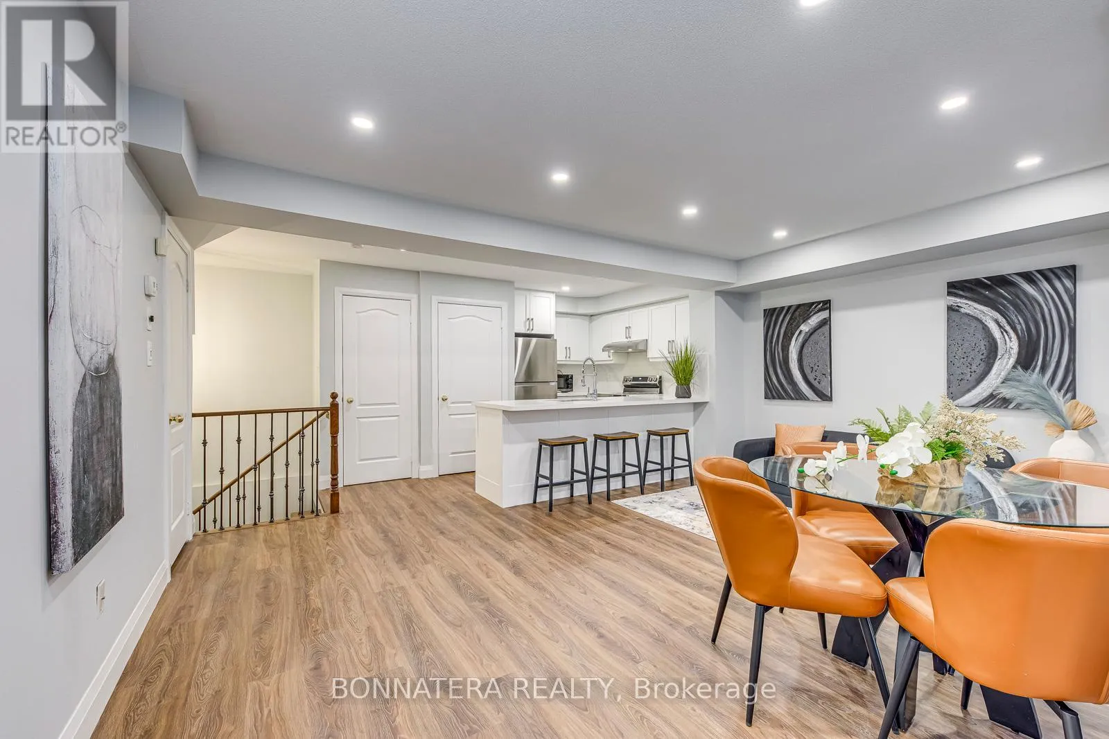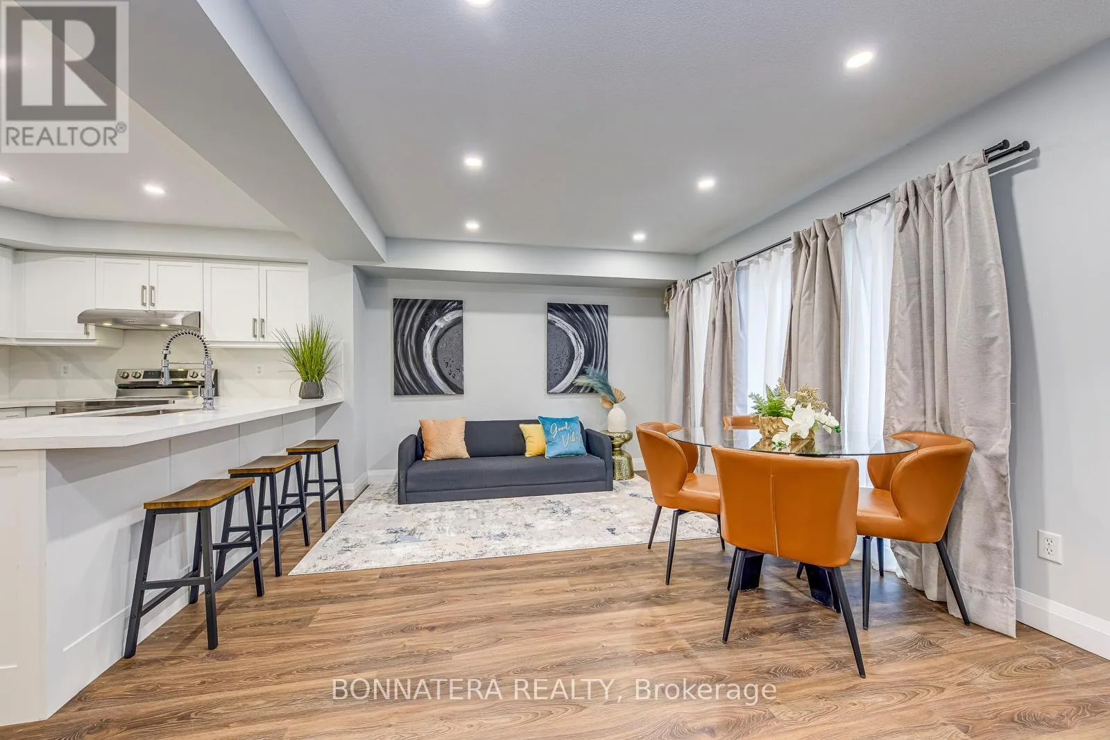 Eglinton and Ninth Line Impeccably maintained and tastefully renovated, this modern stacked townhouse offers outstanding value in the heart of Churchill Meadows-perfect for refined, low-maintenance living. Freshly painted and move-in ready, this well-cared-for home blends contemporary style with everyday practicality. Featuring 2 bedrooms and 2 full bathrooms, it's an excellent choice for first-time buyers, professionals, or a small family ready to transition from condo living. A generous living and dining space that connects effortlessly to the kitchen, ideal for hosting or daily comfort. Renovated Kitchen (2025): A crisp white kitchen with quartz countertops, a stylish backsplash, elegant gold-tone hardware, breakfast bar, ample cabinetry, and a clean, modern finish. Hardwood and laminate flooring throughout for a polished, cohesive look. Primary Bedroom complete with a 4-piece ensuite and plenty of room to relax. Exceptional Location: Easy access to Highways 403 and 407, close to Streetsville GO Station and the Winston Churchill GO Bus Hub. Just steps to a lively plaza offering restaurants, groceries, medical services, and retail shops, as well as the new Ninth Line recreation and sports centre, top-rated schools, Credit Valley Hospital, and more. Residents also enjoy a children's playground and plenty of free visitor parking. (id:27476)