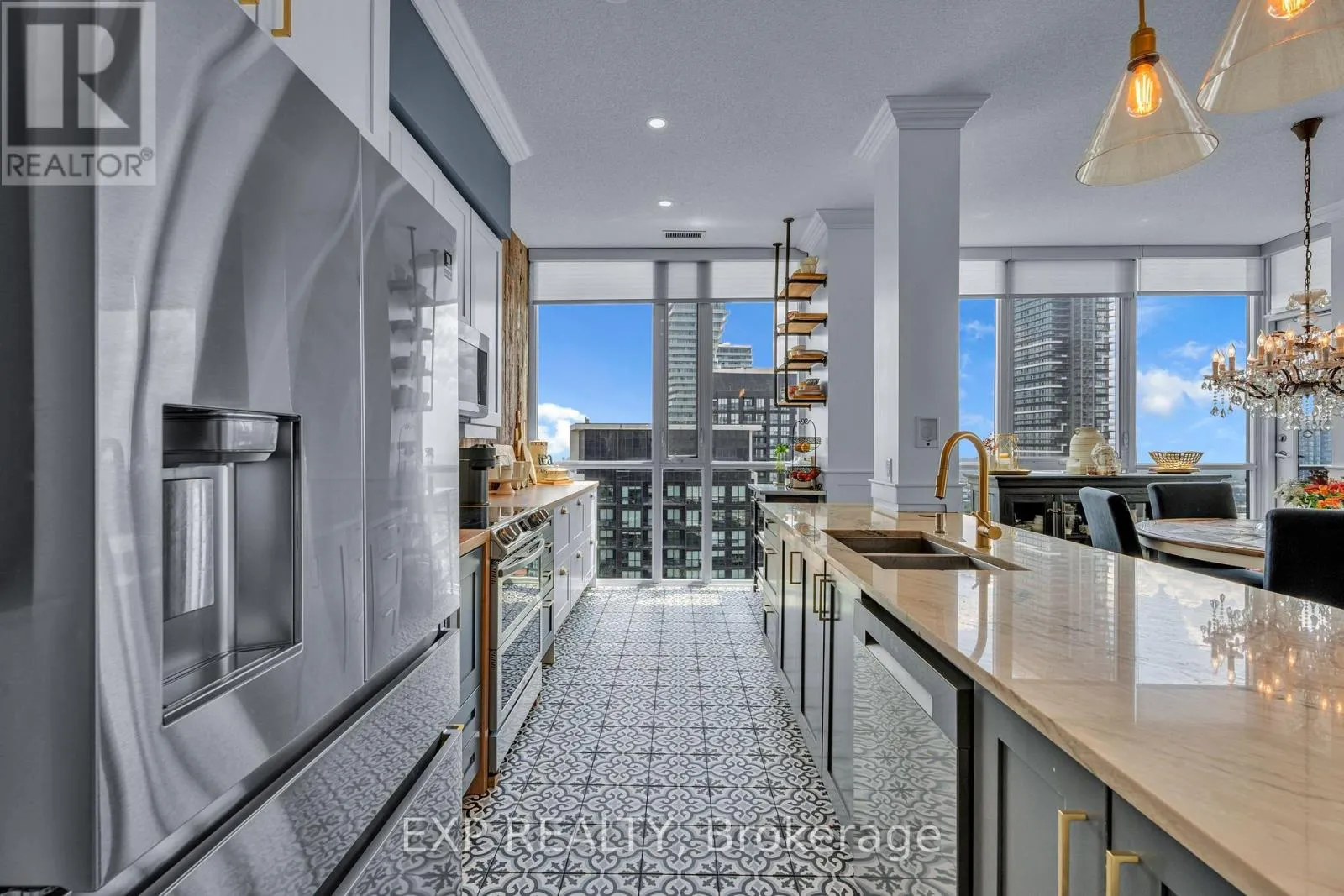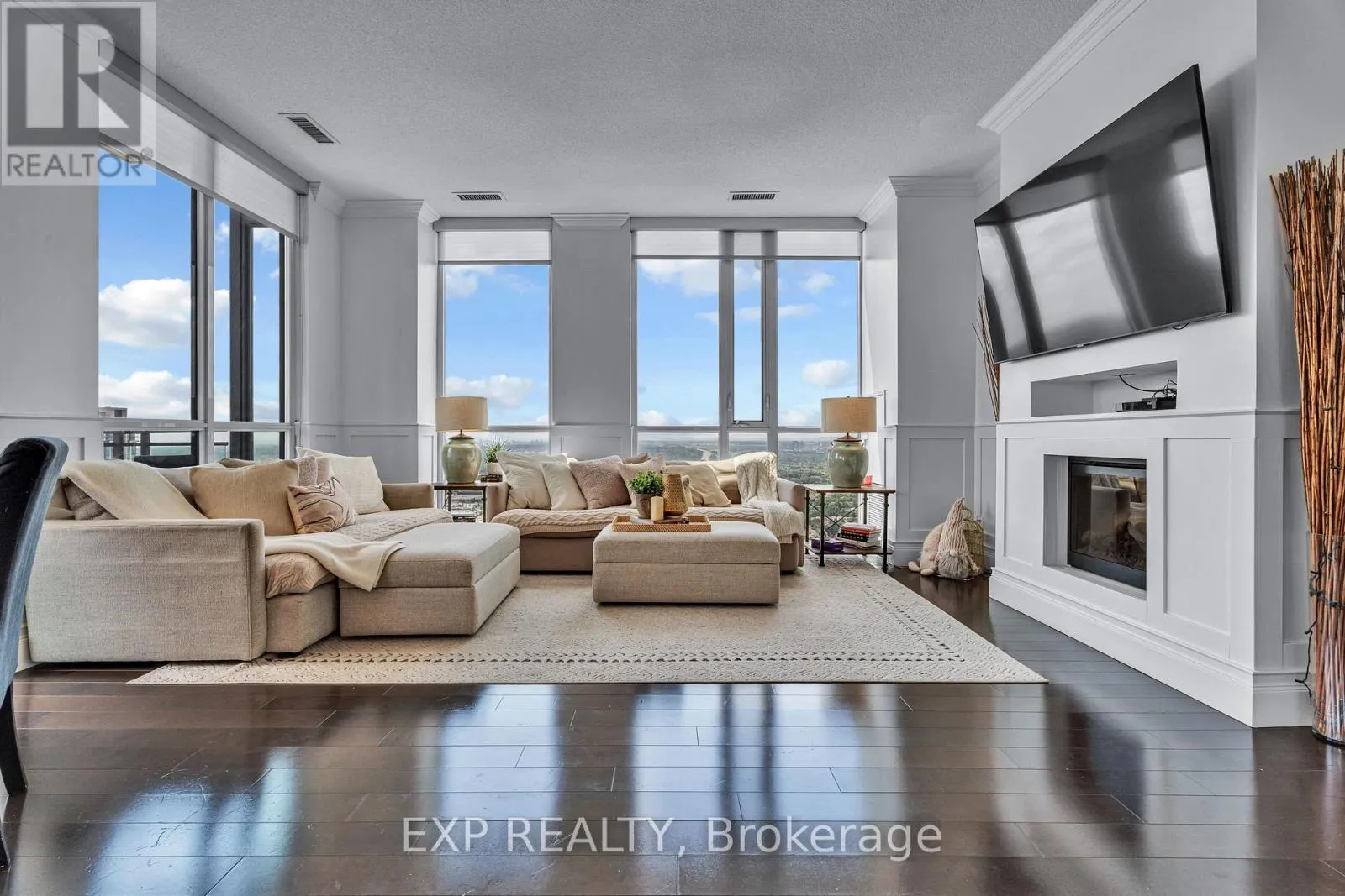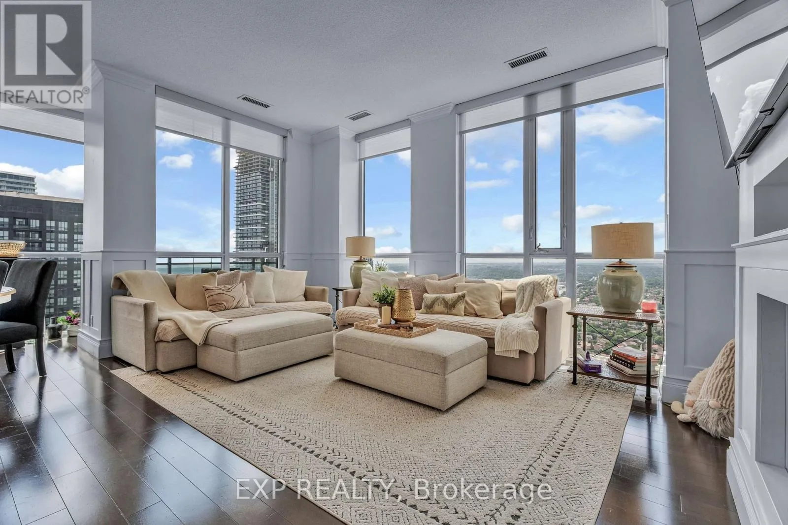 Burnhamthorpe / Confederation A Statement Penthouse in the Sky - Luxury, Space & Iconic Views at Parkside Village Introducing an extraordinary penthouse opportunity at PH02 - 4070 Confederation Parkway, perched high above Mississauga's vibrant City Centre. This grand corner residence offers a rare blend of refined renovation, expansive proportions, and breathtaking vistas, all within the prestigious Grand Residences at Parkside Village. Spanning an impressive layout, this 3-bedroom, 3-bathroom penthouse has been thoughtfully reimagined to deliver both everyday comfort and elegant entertaining. Every detail has been carefully curated, from the rich architectural millwork to the warm, contemporary finishes that create a polished yet inviting atmosphere throughout. Custom crown molding and wainscoting for added depth and sophistication, Three beautifully renovated bathrooms with spa-inspired finishes and modern fixtures, Updated kitchen featuring sleek appliances and functional design for the home chef, Freshly painted in a soft, neutral palette, Hardwood and porcelain tile flooring throughout Elevated Penthouse Living. Three oversized balconies offering sweeping, unobstructed views stretching from the Toronto skyline to Lake Ontario and across the Golden Horseshoe Sun-filled, open-concept living and dining area ideal for large gatherings and memorable entertaining. Quiet corner positioning with floor-to-ceiling windows providing exceptional natural light. Versatile layout with space perfectly suited for a home office or den Luxury Building Amenities, Residents enjoy access to one of Mississauga's most comprehensive amenity collections, including: Newly redesigned hotel-style lobby and common spaces, 24-hour concierge, security, and controlled entry, Indoor pool, sauna, multiple fitness center's, yoga studio, and media room, Games and billiards lounge, music/piano room, wine cellar, and two party rooms, Guest suites, meeting room, and outdoor BBQ terrace. (id:27476)