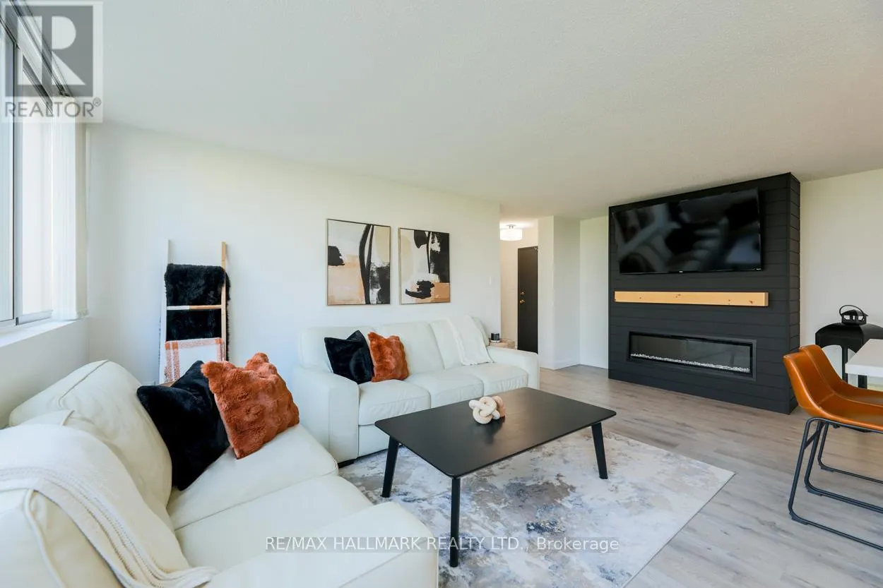 Hurontario & Burnhamthorpe Nestled in the picturesque Mississauga Valley, this stunning 2-bedroom plus den suite has undergone a complete transformation, showcasing modern design and functional elegance. Every aspect has been meticulously remodelled, boasting updated plumbing, brand-new appliances, stylish flooring, renovated bathrooms, & a fresh coat of paint throughout. This spacious unit encompasses an impressive 1250 sq ft. of open concept living space, creating a seamless flow between the combined living and dining areas. An inviting electric fireplace, perfect for cozy evenings, highlights the living room. The contemporary kitchen features ample countertop space and a convenient breakfast bar, equipped with sleek stainless steel appliances that cater to both style and practicality. Large windows flood the space with natural light, enhancing the warm and welcoming ambiance. The den offers versatility, functioning as an ideal home office or an additional guest bedroom, accommodating your lifestyle needs. Included are 2 parking spots & one locker. Residents can enjoy access to exceptional amenities, including 24-hour security for peace of mind, an indoor pool, well-appointed change rooms, a relaxing sauna, comprehensive exercise facilities, & well-maintained tennis courts. The building also features a versatile party/meeting room, a billiards lounge for social gatherings, a barbecue area for outdoor grilling, & ample visitor parking to welcome friends & family. The condo fees cover utilities, such as heat, hydro, water, common elements, building insurance, & parking, ensuring a hassle-free living experience. This prime location offers unmatched convenience, with lush parks, scenic trails, efficient transit options, and the vibrant Square One shopping center all within easy reach. This is an incredible opportunity to establish your home in one of Mississauga's most sought-after locations, blending comfort, modern amenities, & a vibrant community lifestyle. (id:27476)