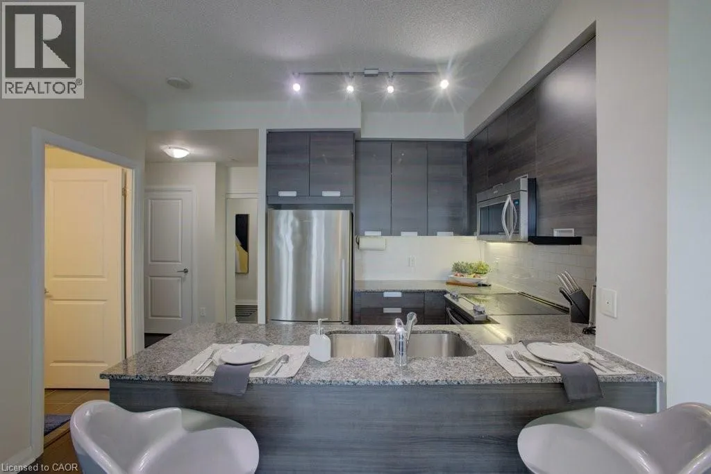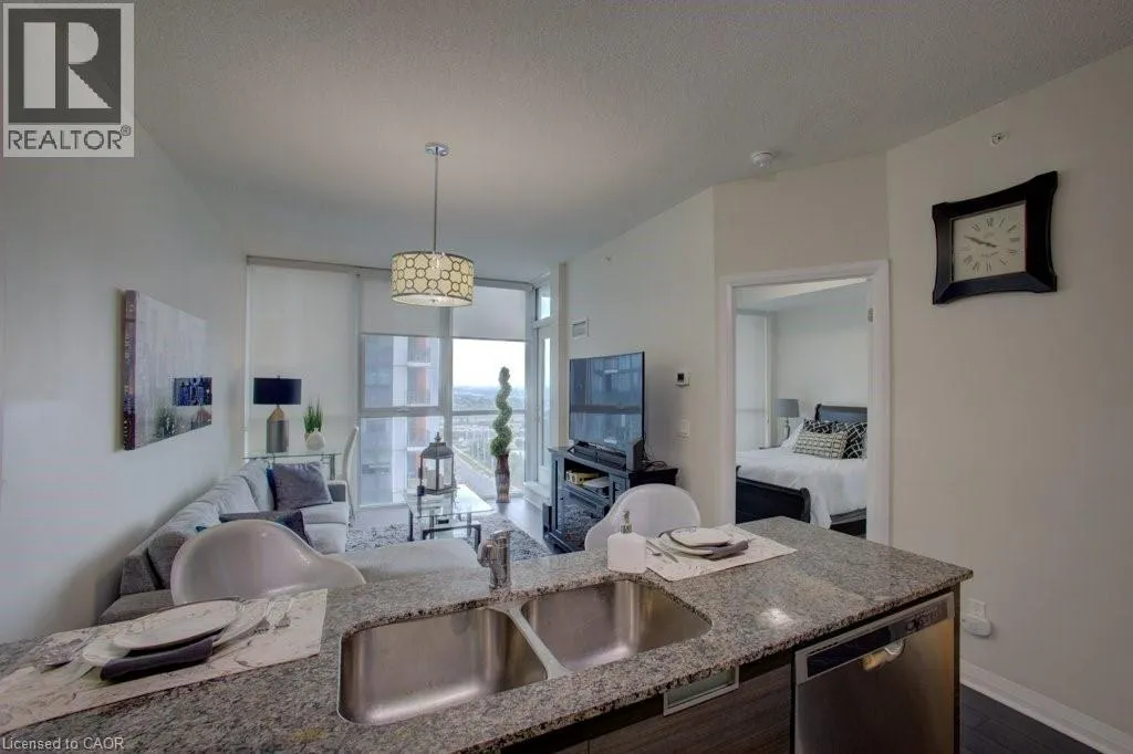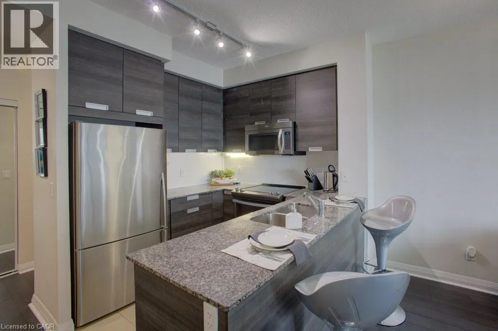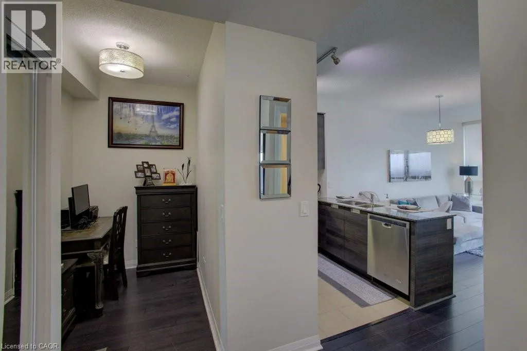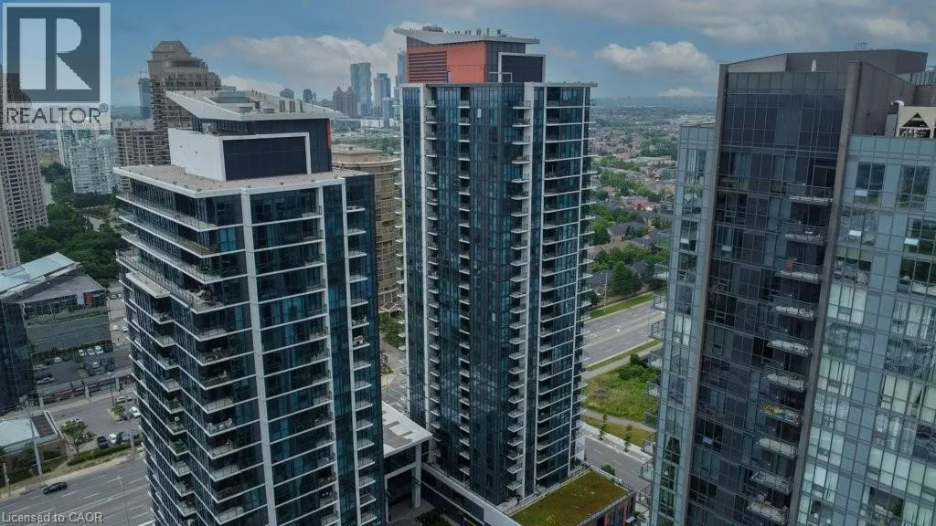 Eglinton Ave West/Hurontario Luxurious and light-filled 1+1 bedroom suite at the renowned Pinnacle Uptown, located in the heart of Mississauga. This impeccably upgraded unit features soaring 9-foot ceilings, floor-to-ceiling windows, and a thoughtfully designed layout. Enjoy stunning southeast views, including a glimpse of the CN Tower. The sleek, modern kitchen is both stylish and functional, complete with granite countertops and stainless steel appliances. The den offers a versatile space ideal for a home office. Finished in a timeless neutral palette, the open concept living areas create a warm and welcoming atmosphere. Enjoy the exceptional amenities of this luxury building, including a grand lobby, 24-hour concierge and security, indoor pool, state-of-the-art fitness centre, elegant guest suites, and visitor parking. Ideally located near Square One Shopping Centre, major highways (403/401), public transit, and the upcoming Hurontario LRT, this residence offers unmatched convenience and an elevated lifestyle at Pinnacle Uptown. (id:27476)