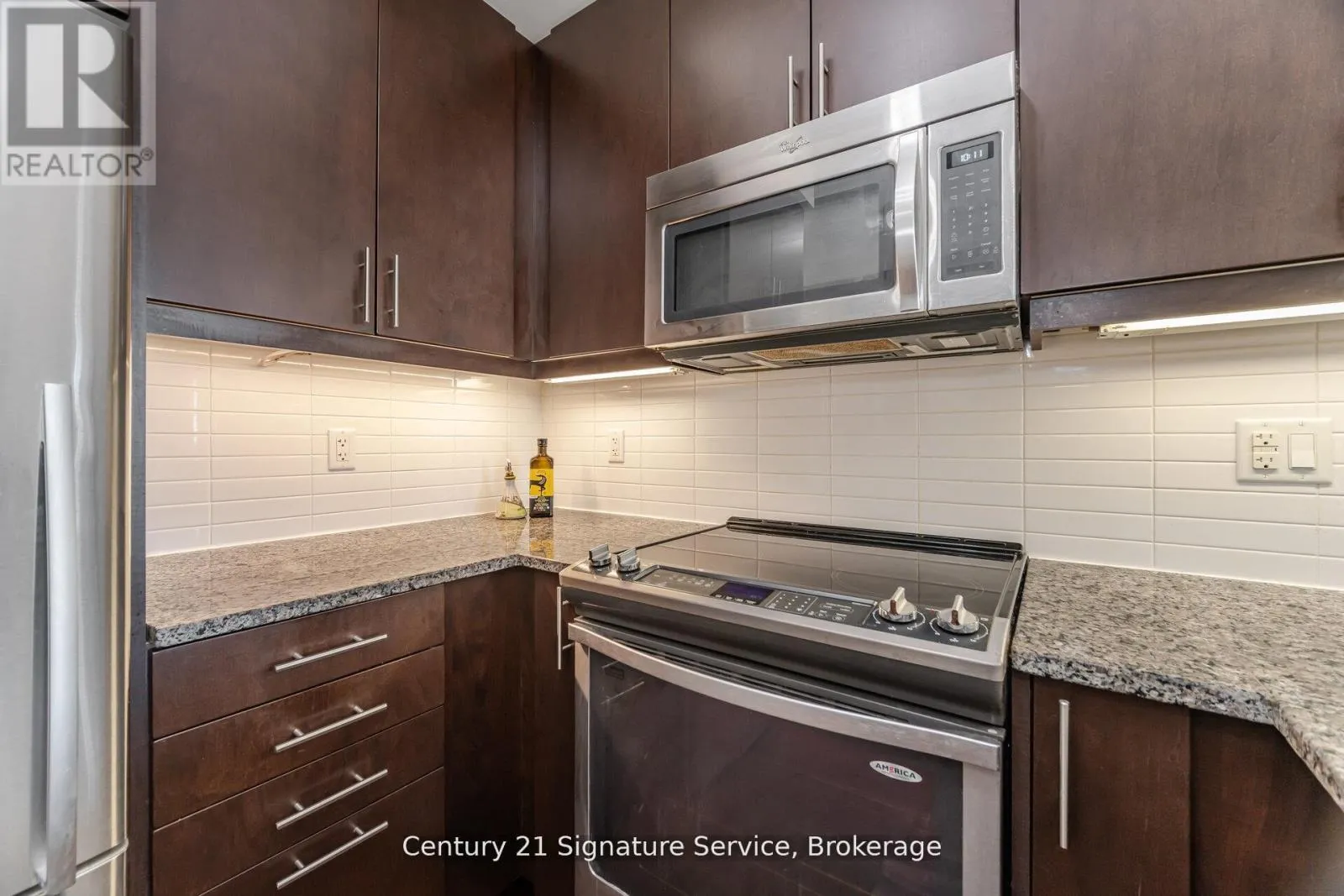 Erin Mills & South Millway Stunning 1-bedroom plus den condo is the perfect blend of style and convenience. Step into a bright, open-concept living area with a walkout to your private balcony, complete with a gas BBQ hookup for easy entertaining. The kitchen featuring a breakfast bar, granite countertops, and modern stainless-steel appliances. The separate den is a versatile space, ideal for a home office, study, or secondary bedroom. You'll also appreciate the convenience of an in-suite washer and dryer. This building is an entertainer's paradise. Enjoy the breathtaking south-facing rooftop terrace, a beautifully decorated party room and lounge with a full-size bar and elegant fireplace, a main-floor lounge with a TV, and a fully equipped exercise room. Enjoy an unbeatable location, just steps away from beautiful trails and parks. You're also close to transit, shopping, UTM Campus, and the Erindale and Clarkson GO Stations, with easy access to major highways 403, 407, and QEW. Landlord require Job letter with last 3 paystub, up-to-date credit report, references. (id:27476)
