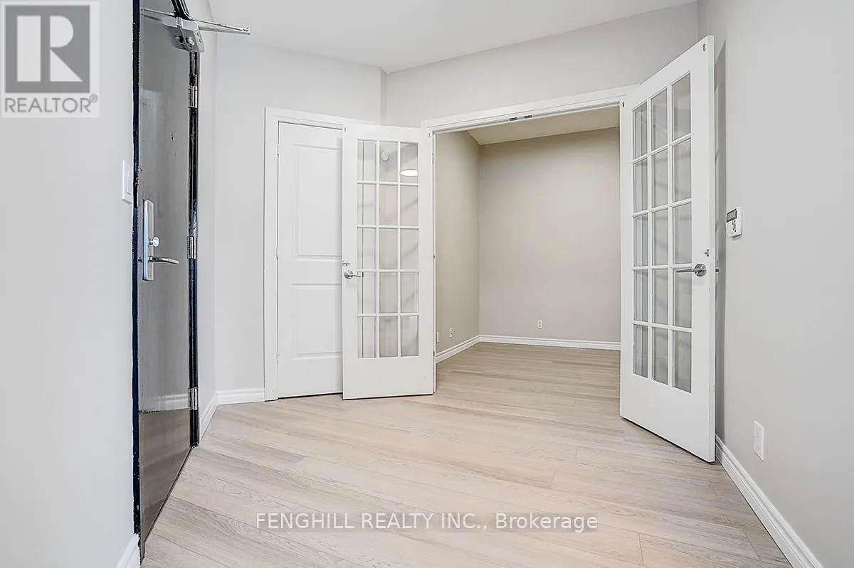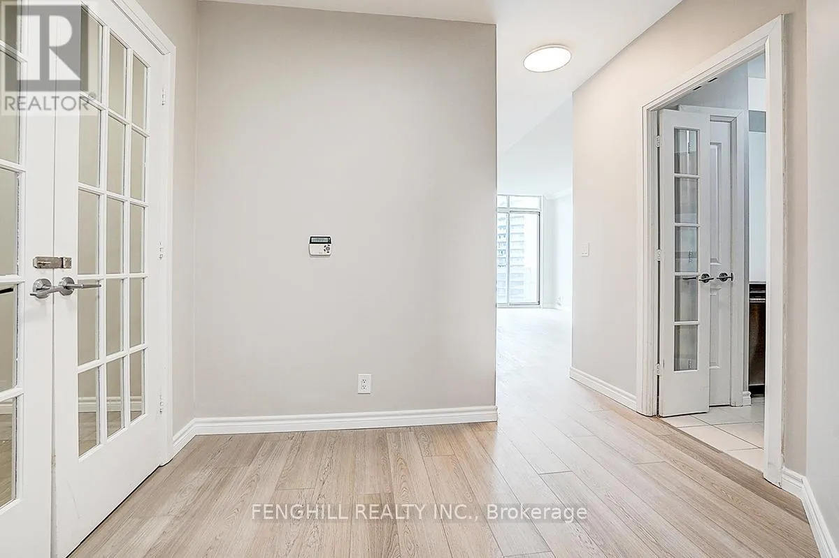 Hurontario /Burnhamthorpe Welcome to this classically elegant penthouse located in the iconic Absolute Condos. This spacious 2+1 bedroom suite features soaring 10-foot ceilings, crown mouldings, and stylish vinyl flooring throughout. The versatile den, enclosed with French doors, can easily serve as a third bedroom or a home office. The modern kitchen is equipped with granite countertops and stainless steel appliances, while the primary bedroom offers a luxurious five-piece ensuite and a walk-in closet. Both bathrooms are finished with marble floors and glass-enclosed showers for a touch of sophistication. Step out onto the expansive balcony accessible from two walkouts and enjoy breathtaking southwest views of the lake and downtown Mississauga. This unit includes one Preminum parking space, TWO lockers, and access to premium amenities such as indoor and outdoor pools, a fully equipped gym, and more. An excellent opportunity for first-time homebuyers or investors. If you're seeking generous space with a lower down payment in a luxurious yet practical layout, this is the one. A must-see! (id:27476)
