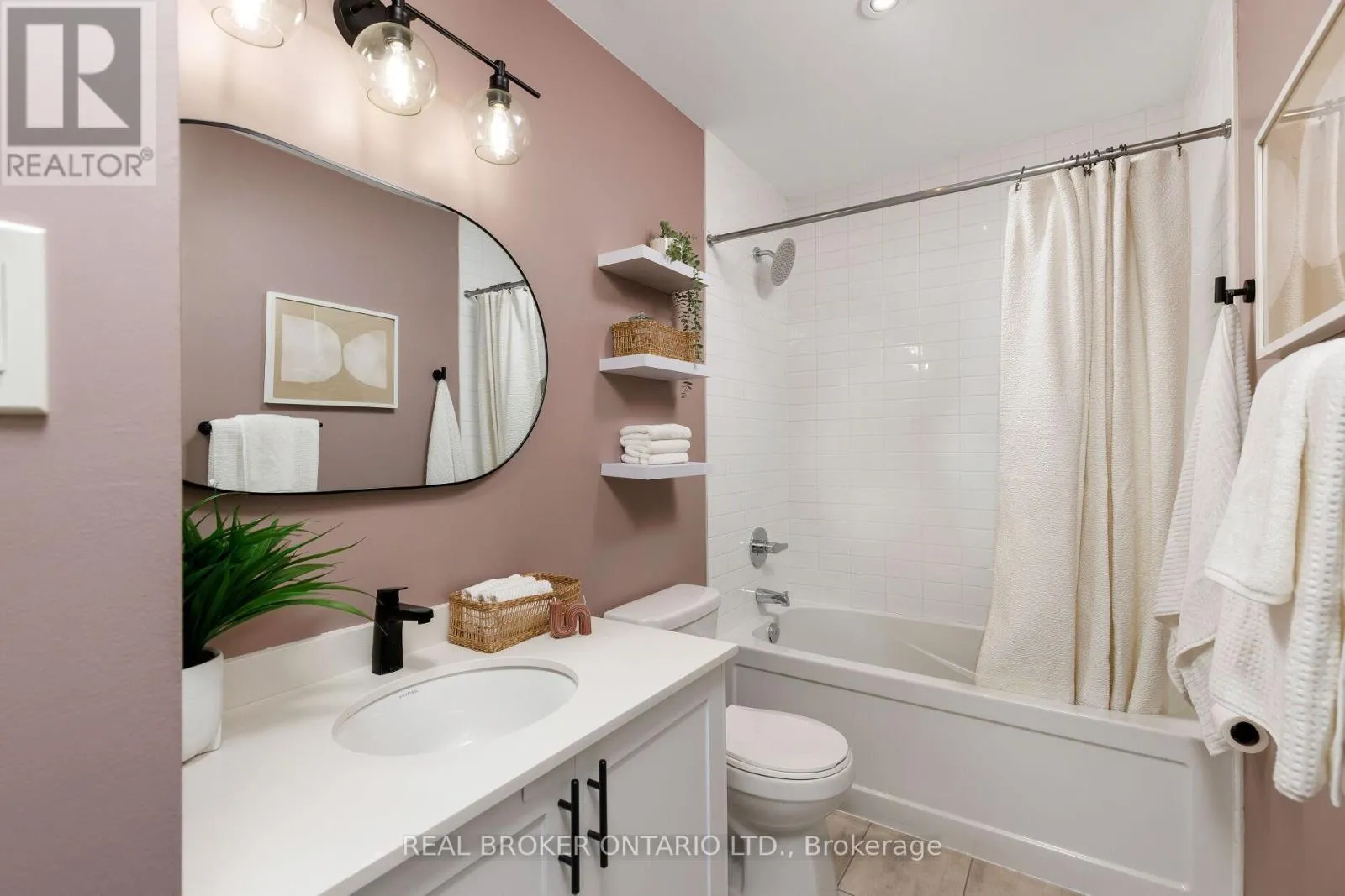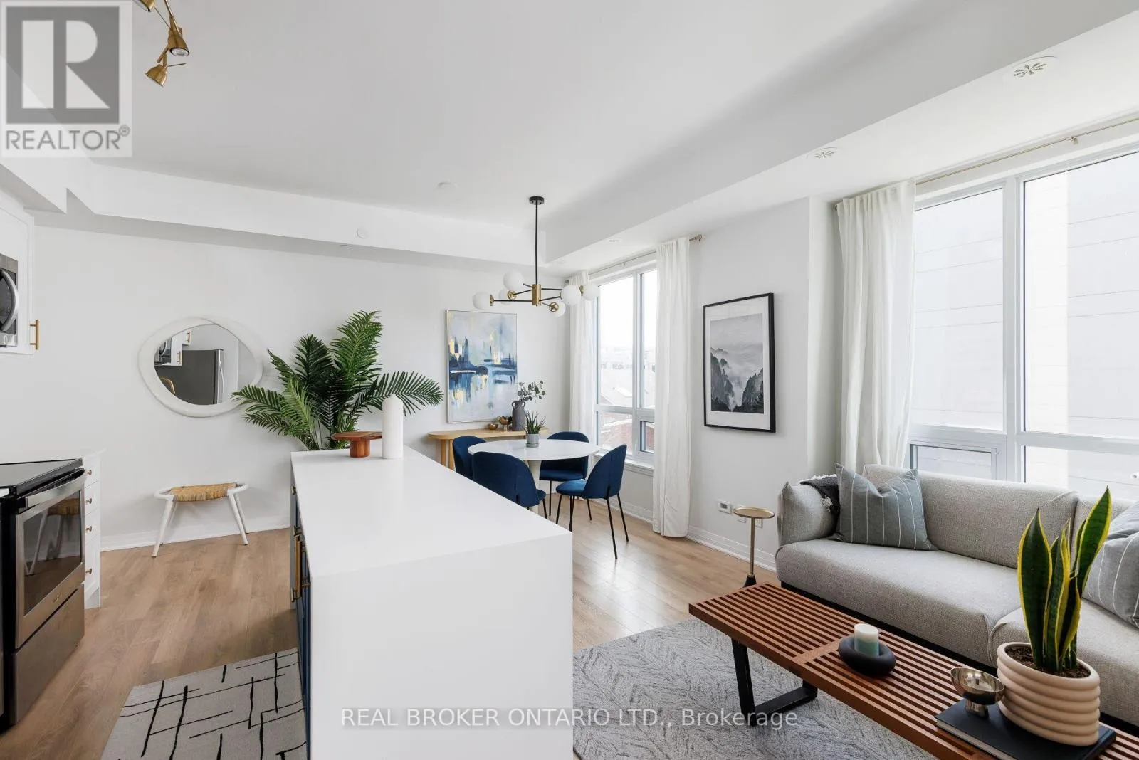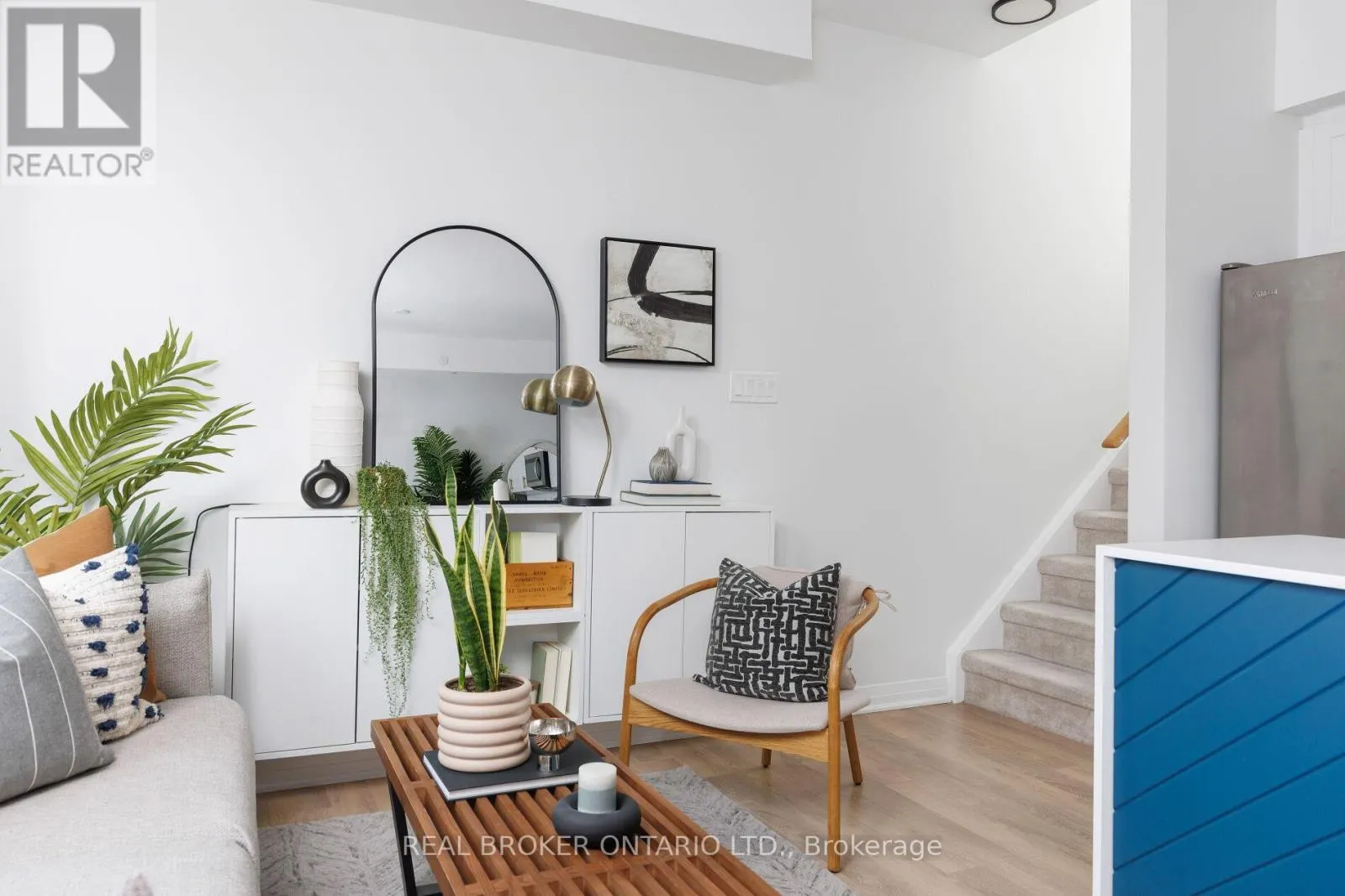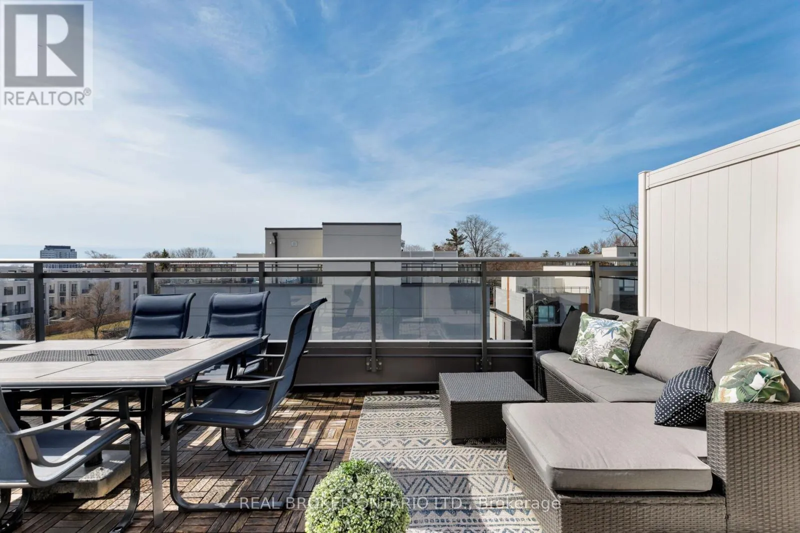 Cross Streets: Cawthra and Lake Shore. ** Directions: Off Lake Shore. Crazy About Cawthra! Step into modern living at Dellwood Park, Mineola's contemporary townhome community. This beautifully upgraded 2-bedroom, 2-bathroom corner suite offers 1,073 sq ft of stylish living with a bright southwest exposure, fresh paint, and new designer light fixtures throughout. The open-concept layout features a stunning kitchen with a quartz island, chic gold hardware and faucet, timeless subway tile backsplash, and seamless flow into the living and dining areas-perfect for relaxing or entertaining.The spacious primary bedroom includes a walk-in closet, while both bathrooms shine with upgraded lighting and mirrors. The laundry area has been thoughtfully customized with built-in organizers for added convenience. Take your lifestyle outdoors with a private 230 sq ft rooftop terrace-complete with gas BBQ hookup and plenty of space to lounge and entertain. Enjoy 9 ft smooth ceilings, luxury vinyl plank flooring, two full-size parking spots, and one storage locker.Residents have access to a private courtyard park, pets are allowed and are just steps to a major community centre, trendy restaurants, shopping, transit, highwats, and more. Stylish, functional, and move-in ready-this one checks all the boxes! (id:27476)