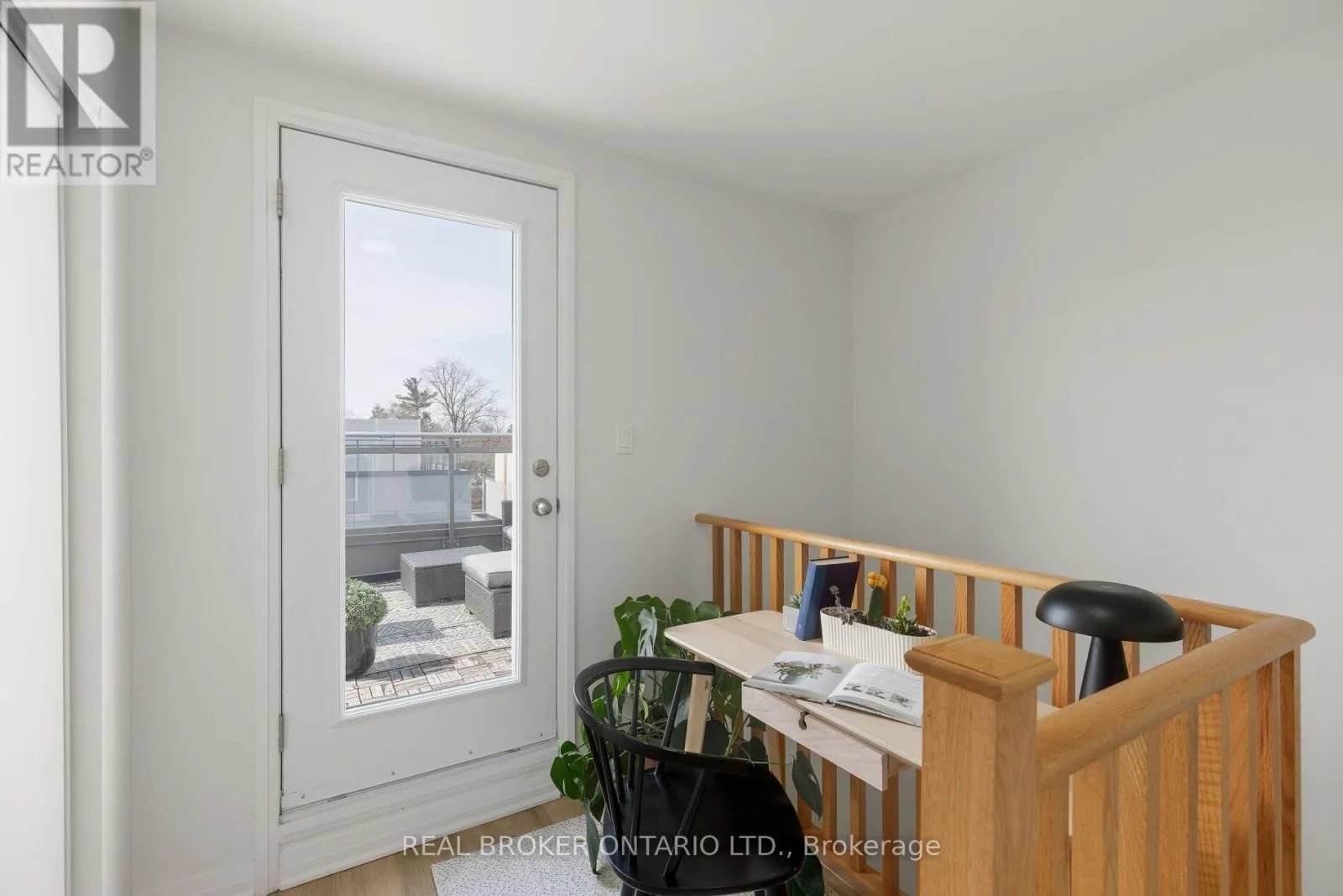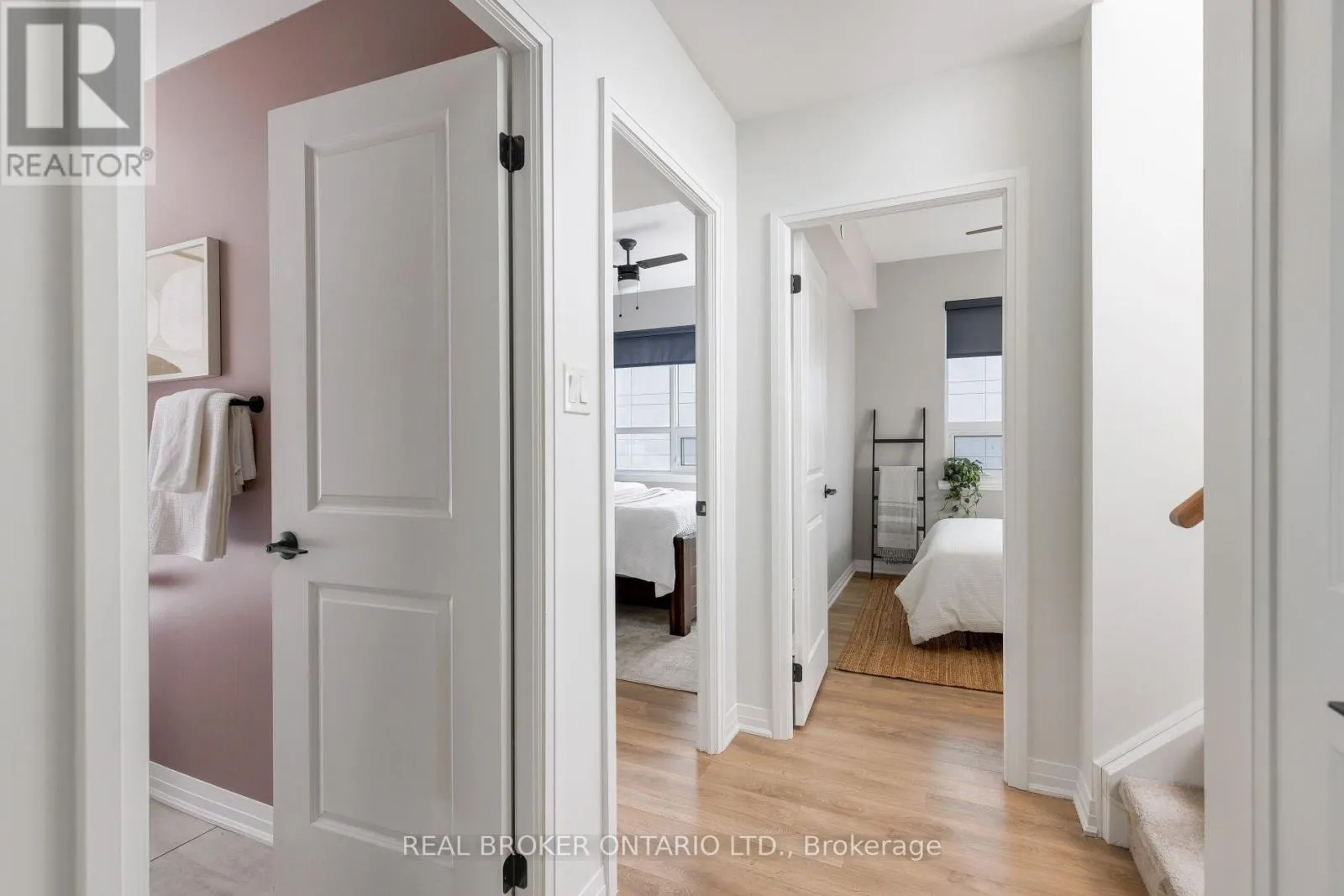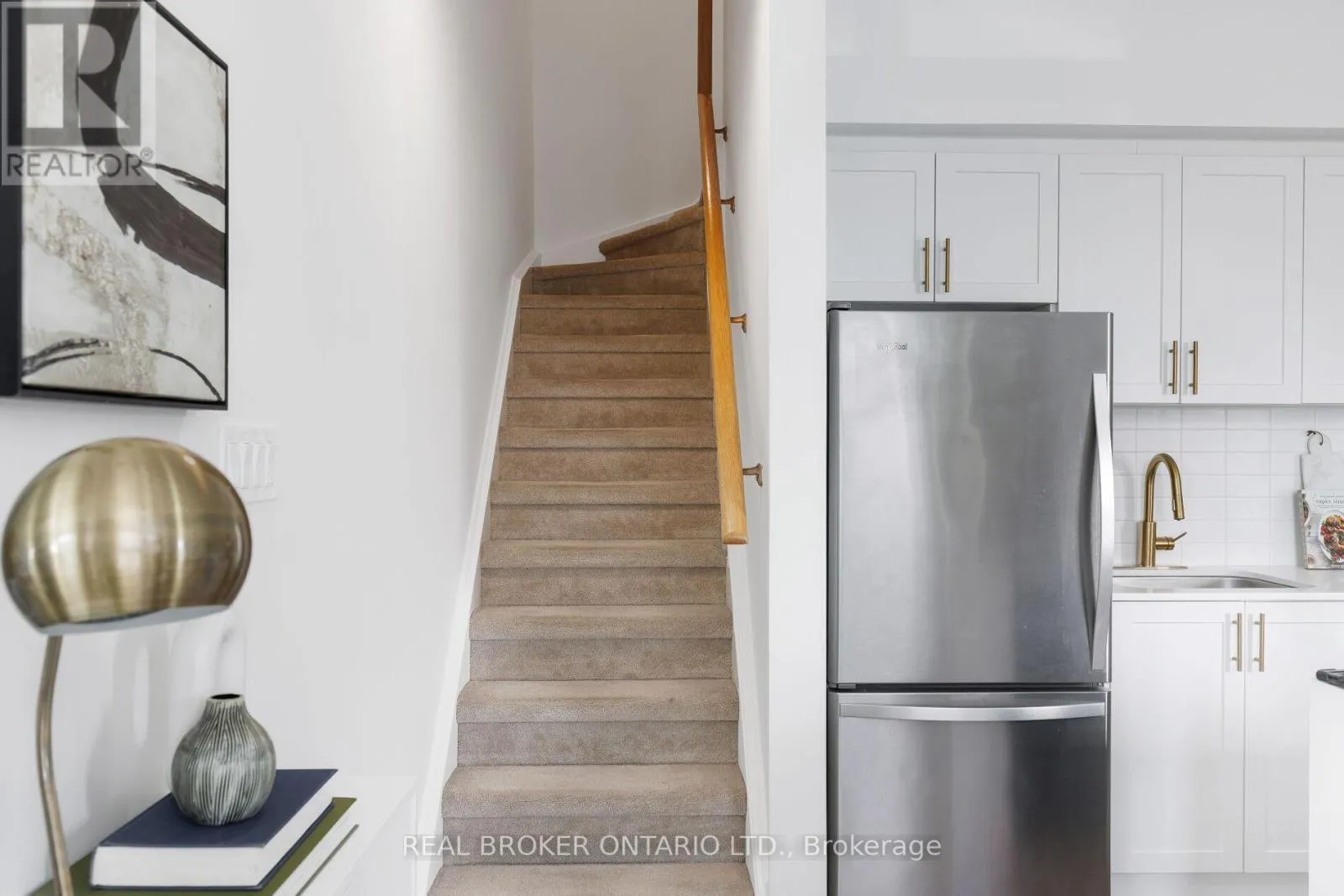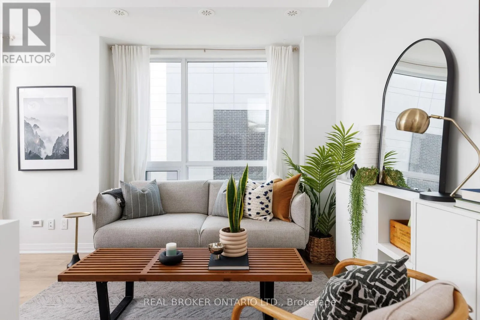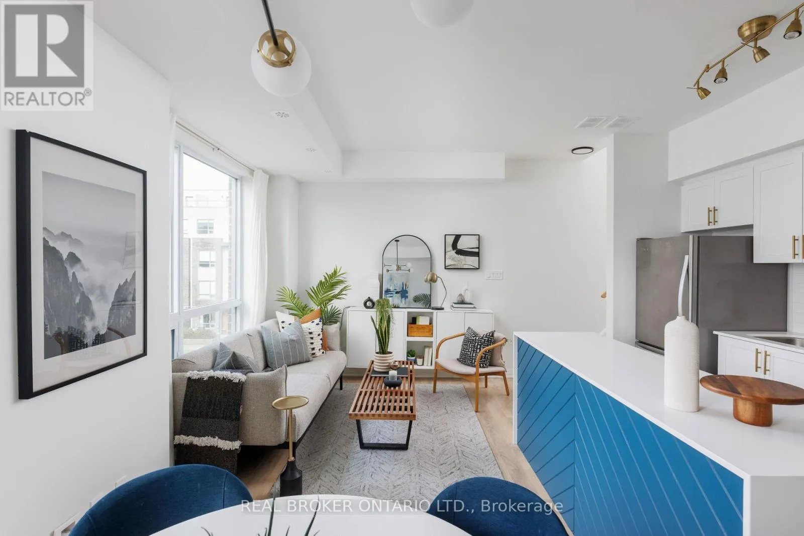 Cross Streets: Cawthra and Lake Shore. ** Directions: Off Lake Shore. Crazy About Cawthra! Step into modern living at Dellwood Park, Mineola's contemporary townhome community. This beautifully upgraded 2-bedroom, 2-bathroom corner suite offers 1,073 sq ft of stylish living with a bright southwest exposure, fresh paint, and new designer light fixtures throughout. The open-concept layout features a stunning kitchen with a quartz island, chic gold hardware and faucet, timeless subway tile backsplash, and seamless flow into the living and dining areas-perfect for relaxing or entertaining.The spacious primary bedroom includes a walk-in closet, while both bathrooms shine with upgraded lighting and mirrors. The laundry area has been thoughtfully customized with built-in organizers for added convenience. Take your lifestyle outdoors with a private 230 sq ft rooftop terrace-complete with gas BBQ hookup and plenty of space to lounge and entertain. Enjoy 9 ft smooth ceilings, luxury vinyl plank flooring, two full-size parking spots, and one storage locker.Residents have access to a private courtyard park, pets are allowed and are just steps to a major community centre, trendy restaurants, shopping, transit, highwats, and more. Stylish, functional, and move-in ready-this one checks all the boxes! (id:27476)
