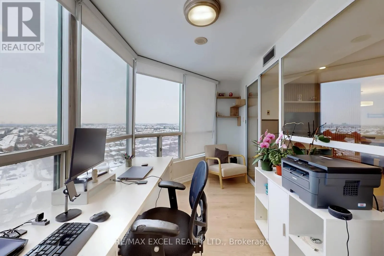 Cross Streets: Hurontario/Kingsbridge. ** Directions: Hurontario south of Eglinton ave. West. Spacious bright 2 + 1, W/ unobstructed views of the city. Oversized bedroom Plus, Sun drenched, tastefully renovated. Both Bedrooms have ensuite washrooms and large closets. Open layout living and dining room facing south west. Comes with 3 underground parking spaces and 1 locker. Close to Square one Shopping Center, 403 Hwy, Sheridan College & more! A luxury life-style in the heart of Mississauga. (id:27476)
