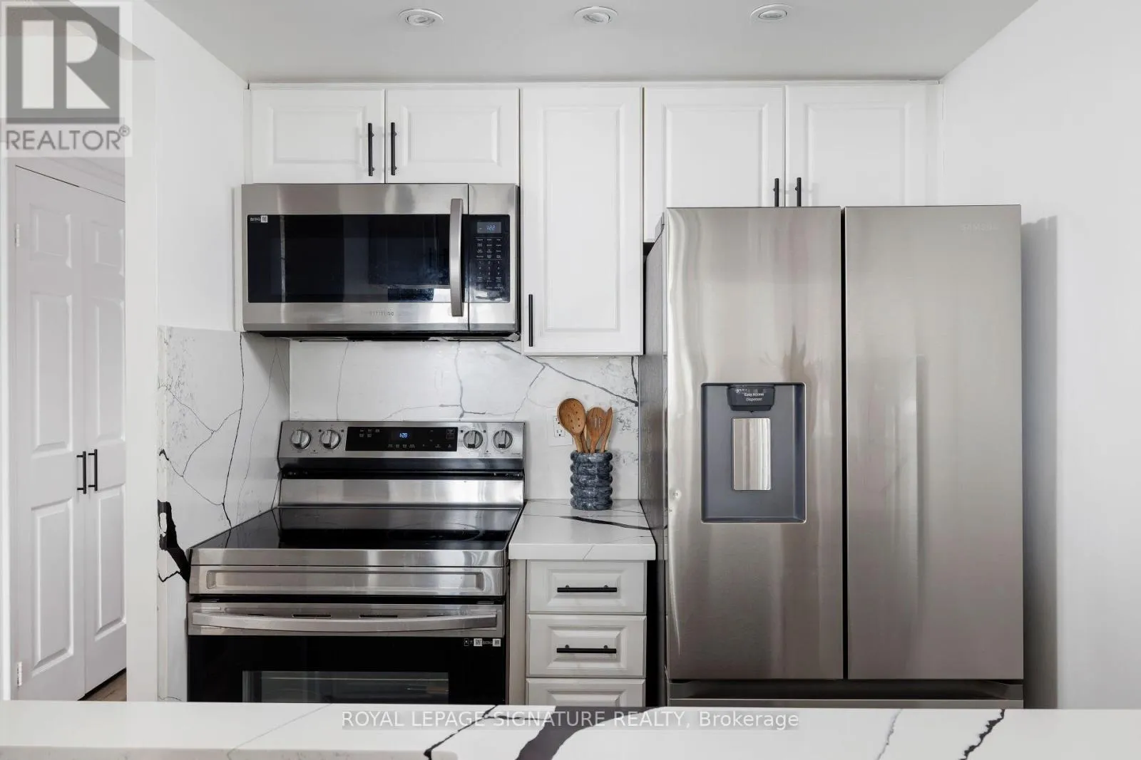 Dundas St W & Mavis Rd Why rent when you can own your own slice of the pie?! And not just any pie...a newly renovated condo that has all the amenities - A/C, heat, hydro, water, Rogers wifi and cable TV - paid for with your condo fees! The kitchen has all New modern granite counter with eat in counter and all stainless steel appliances. New Pot lights have been installed as well as a brand new washroom with modern black hardware. Walk-thru closet to bathroom has built in closet organizers. You have an amazing unobstructed West view that you never have to worry about being blocked by another condo, as you are surrounded by residential neighbourhoods. The Kingsmere-on-the-Park Condos harken back to a time when condos were thoughtfully built - with private grounds just for the residents. Plenty of amenities included as well including guest suites, indoor pool, sauna, EASY visitor parking and more! Prime location close to beautiful trails, parks, Huron Park Rec Centre, UofT Mississauga,Trillium Hospital, QEW, Square One and More. Short drive to Toronto Pearson International Airport makes it an ideal location for commuters. (id:27476)