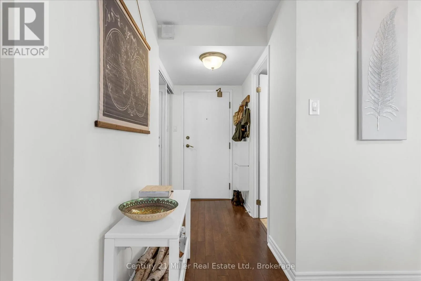Cross Streets: Erin Mills Pkwy/Battleford. ** Directions: North on Erin Mills Pkwy, west on Battleford Rd, North on Montevideo Rd. This bright, spacious 1-bedroom + Den condo offers larger than average square footage for this price point, delivering a layout that feels genuinely usable and comfortable compared to many newer builds. The unit has been thoughtfully laid out and exceptionally well cared for, and it shows. Large windows flood the space with natural light and frame a great city view. The kitchen features new appliances including a fridge and stove replaced in 2025, a new rangehood, and a built-in dishwasher new in 2025. The washing machine and dryer are approximately 6 years old. Updates throughout the unit pair nicely with a strong design sensibility, creating a home that feels polished and inviting without trying too hard. A rare bonus, this unit includes two side by side parking spaces in the garage and bbqs are allowed on the terrace. The well maintained building backs directly onto Lake Aquitaine Park, offering walking trails and expansive green space right outside your door. Residents enjoy access to a gym and clean, well cared for common areas, with building windows scheduled for an upcoming update. There are no special assessments and the reserve fund is strong. Condo fees are truly all inclusive, covering all utilities, internet, and cable. Located in a quiet, established neighbourhood, the building is within walking distance to Meadowvale Community Centre and library, with grocery stores, restaurants, and shopping nearby. Quick access to Highway 401 keeps commuting simple while still enjoying a peaceful setting. This is a rare opportunity to secure a spacious, well maintained condo with outstanding value with tasteful decor and a location that balances calm living with everyday convenience. (id:27476)