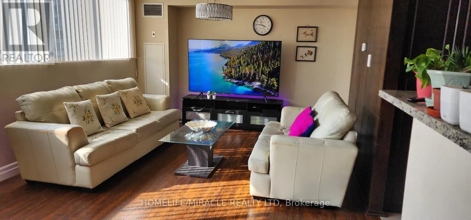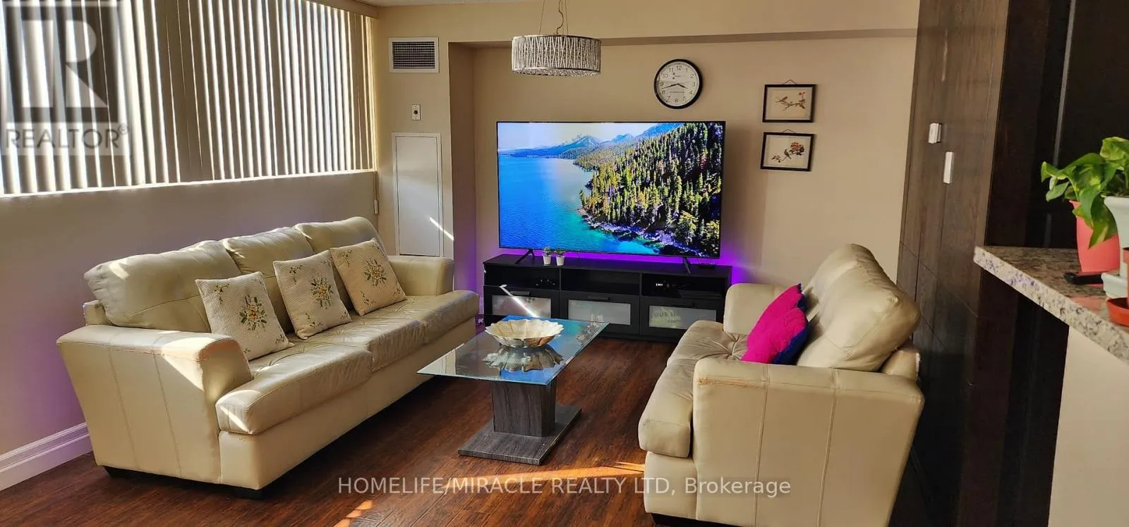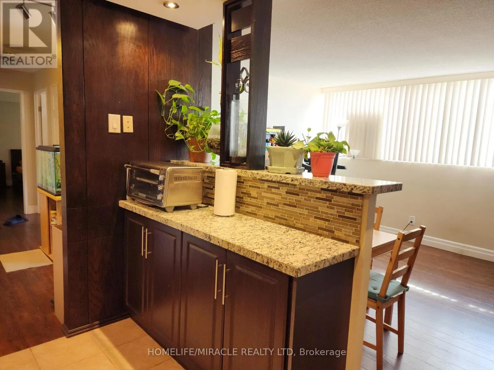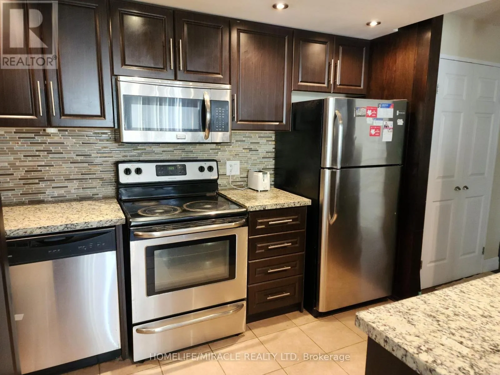 Hurontario/ Burnhamthorpe Come home to this tastefully renovated and spacious 2 bedroom plus den suite in the heart of Mississauga. The functional den can easily be converted into a third bedroom, making it ideal for families, professionals, or those working from home. The modern kitchen features granite countertops, pot lights, and stainless-steel appliances, while the updated bathroom offers a sleek walk-in shower. Enjoy a generously sized primary bedroom complete with a walk-in closet.Residents benefit from all utilities included and a full suite of premium amenities: 24-hour concierge, fully equipped gym, tennis court, indoor swimming pool, games room, BBQ area, guest suites, and visitor parking.Conveniently located just minutes from Square One Shopping Centre, schools, parks, public transit, and easy access to major highways. A fantastic opportunity to lease a move-in-ready home in a vibrant, well-connected community. (id:27476)