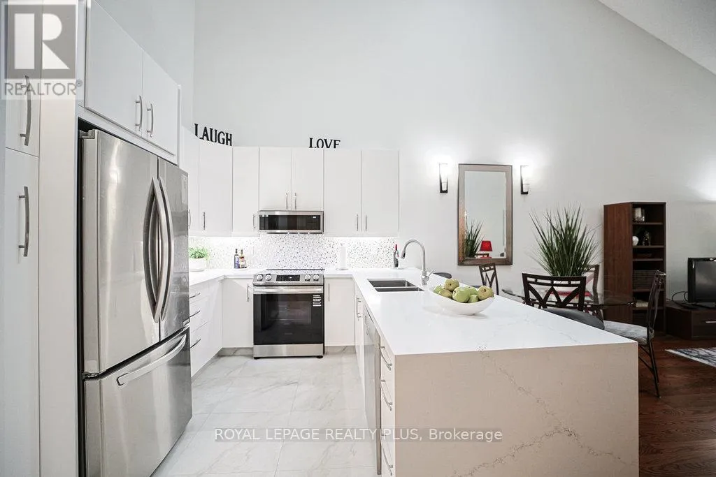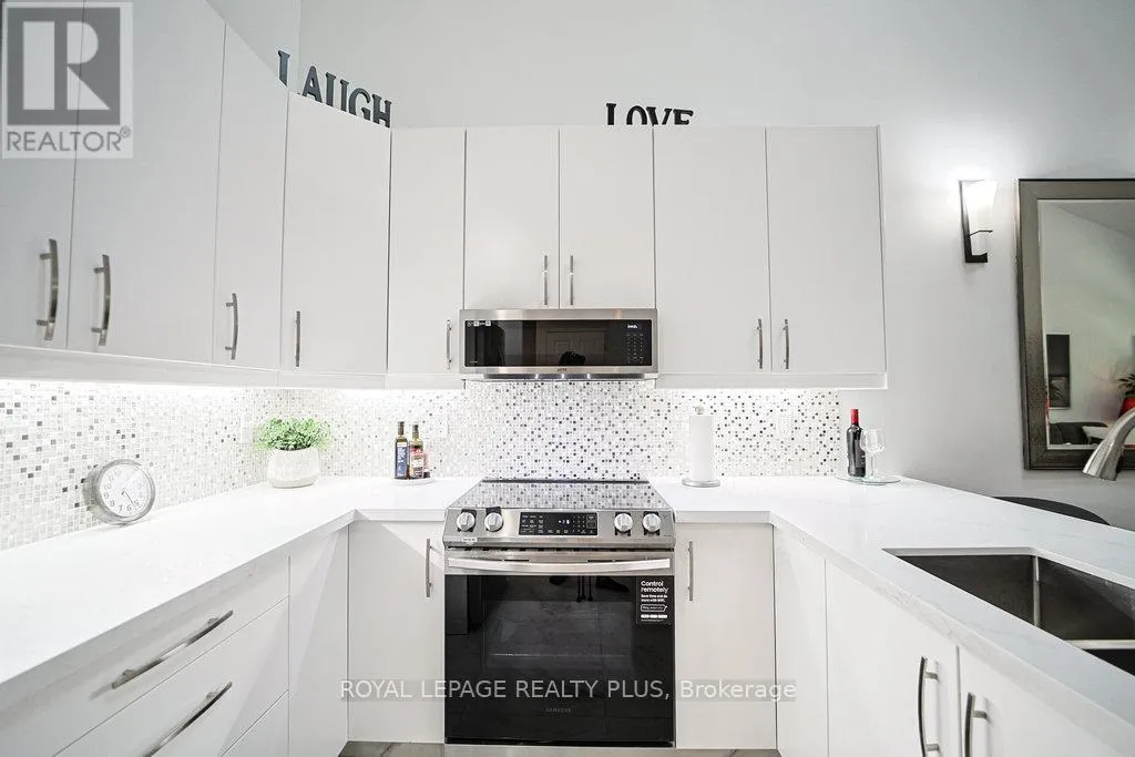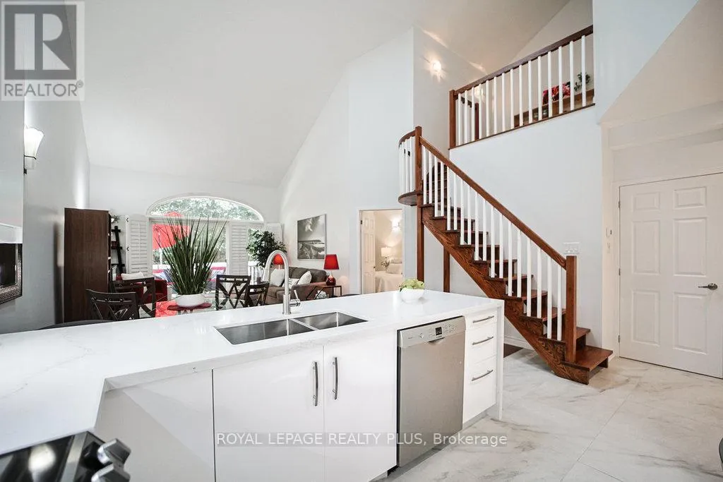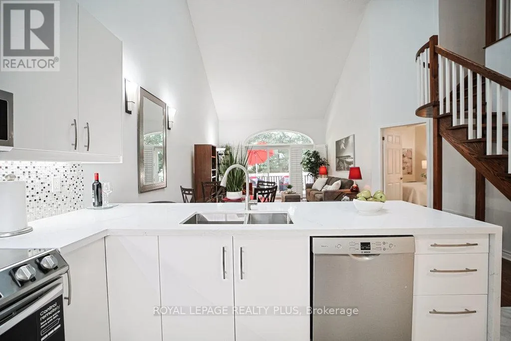 Cross Streets: Lakeshore & Clarkson Rd. ** Directions: South on Silverbirch, Right on Cristina. MAIN FLOOR PRIMARY BEDROOM & ENSUITE - Renovated, Executive Townhome, rarely available Bungaloft with Main Floor Primary Bedroom & Ensuite. Nestled on a cull de sac in the private enclave of Turtle Creek, backing onto ravine. Just steps to Lake Ontario, nature trails & Jack Darling Park. This home backs onto mature combination of coniferous and evergreen trees, making for a most private & serene retreat. Inside the open concept layout features an impressive great room with soaring 23 foot vaulted ceilings, rich hardwood floors & a walk-out to a spacious deck overlooking the yard & mature trees. A beautiful renovated Kitchen boasts Carrara style quartz countertops with waterfall feature on the peninsula. Generous counter provides space for a breakfast bar or an awesome area for entertaining. Soft Close cabinets provide a choice of Pantry with slide out drawers, Pot Drawers, Tray Cupboards-Lazy Susan's, Room for everything! The PRIMARY BEDROOM, ON THE GROUND LEVEL, overlooks the natural greenery from the picture window, complete with renovated washroom with oversized shower, and sooo much closet space with built in cabinetry. The spacious 2nd bedroom also on the main floor, and with a vaulted ceiling, overlooks the garden & enjoys an oversize closet. The Loft boasts a relaxing sitting area overlooking the great room & includes a 3rd bedroom, complete with full washroom and walk-in closet. The lower level has a finished family room area with above grade window & corner fireplace. There is also a large unfinished area awaiting your imagination. There are LAUNDRY facilities on both MAIN FLOOR & lower level. New windows throughout, New patio door-everything is ready Just move in. Conveniently located in the vibrant community of Clarkson and Port Credit. Enjoy the festivals, many restaurants & shopping. Easy access to Public Transit & Go train. The perfect combination of nature and urban living. (id:27476)