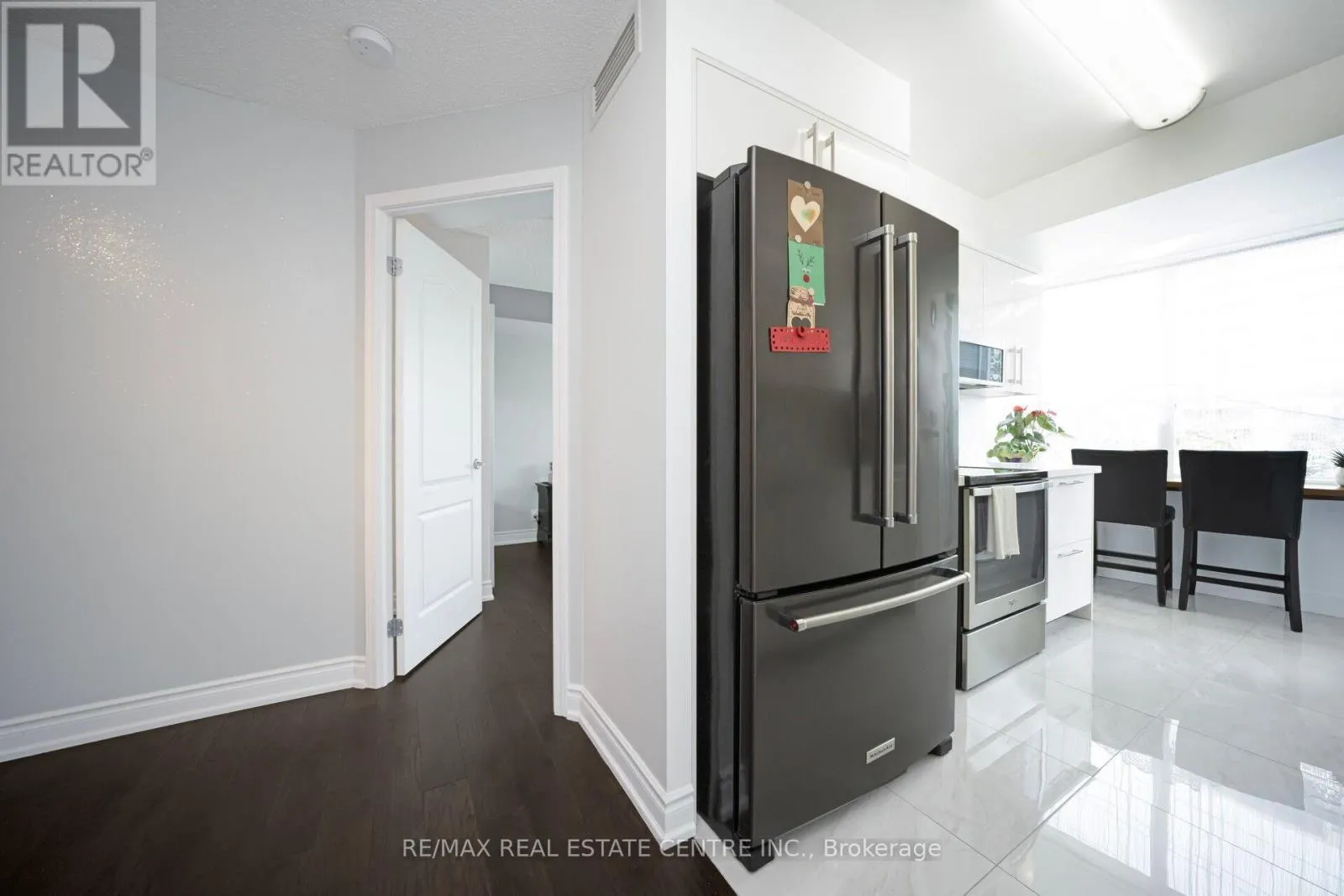 Hurontario St/Burnhamthorpe Rd This Stunning, Fully Renovated 2-bedroom, 2-bathroom 885 Sqft Corner Unit With ***2 Parkings*** Is Located In The Heart Of Mississauga's Highly Sought-after City Centre, Just Steps From Square One, The Future LRT, Go Station, And Major Highways Including The 403 And QEW. Offering A Spacious And Well-designed Two Bedroom Layout, This Bright And Airy Condo Features 9-foot Ceilings, Hardwood Flooring Throughout, And Floor-to-ceiling Windows That Flood The Space With Natural Light. The Open-concept Living And Dining Area Flows Seamlessly Into A Custom Kitchen With Extended Cabinetry, Premium Finishes, And A Cozy Breakfast Area. Both Bedrooms Include Custom-built Cabinets, With The Primary Bedroom Offering A Private Ensuite Bath And The Second Bedroom Conveniently Located Next To The Second Full Bathroom. Freshly Painted And Move-in Ready, This Unit Also Includes Ensuite Laundry, A Large Balcony With Panoramic Views. Additional Features Include Two Rare Side-by-side Parking Spaces And A Locker. Residents Enjoy Access To A Wide Range Of Luxury Amenities Including A Yoga Studio, Gym, Indoor Swimming Pool, Jacuzzi, Sauna, Billiards And Table Tennis Rooms, A Party/dining Room, And 24-hour Security. Nestled In A Family-friendly Neighborhood With Schools And Daycare Within Walking Distance, This Spotless And Beautifully Maintained Condo In A Well-managed Daniels Building Is Ideal For First-time Buyers, Downsizers, Or Investors. A True Gem In One Of Mississauga's Most Convenient And Vibrant Communities. Don't Miss Out! (id:27476)