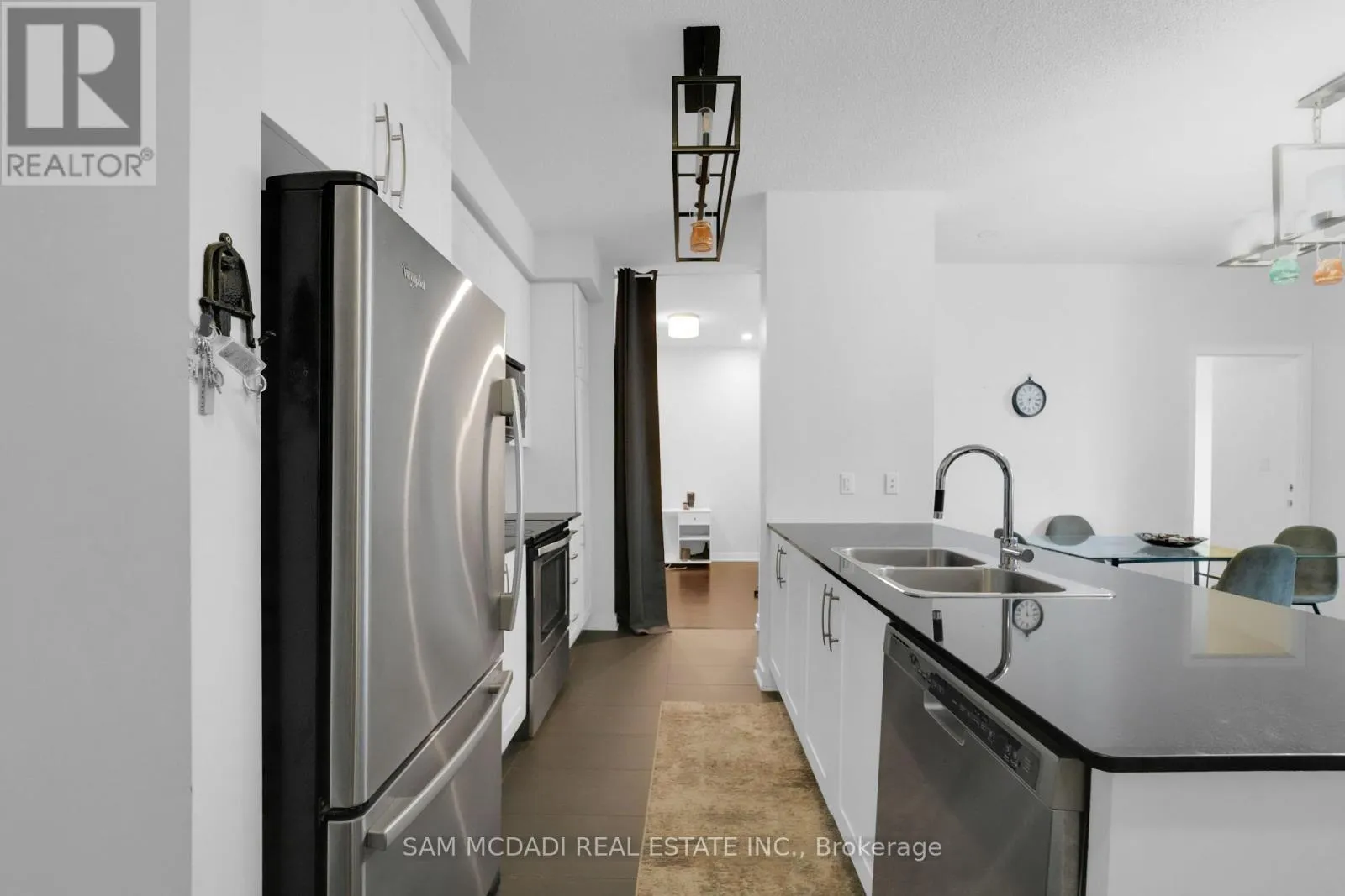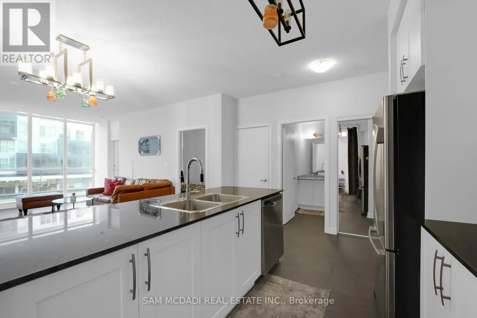 Confederation Parkway & Burnhamthorpe Rd West Welcome home to elevated urban living in the heart of Mississauga's City Centre. This beautifully upgraded 2+1 bedroom, 2-bath 1045sqf condo at Parkside Village features soaring 10-ft ceilings, hardwood flooring, and sleek stainless steel appliances. The oversized den offers exceptional versatility and can easily be used as a third bedroom, home office, or guest space. Thoughtful upgrades include modern pot lighting in the living, dining, and den areas, updated light fixtures, and fresh paint in key living spaces, creating a bright and contemporary atmosphere.Residents enjoy an impressive lineup of amenities including a fully equipped fitness centre, indoor pool, sauna, party and media rooms, business centre, guest suites, visitor parking, and 24-hour concierge service. Perfectly positioned steps from Square One, Celebration Square, transit, the Hazel McCallion Library, Sheridan College, and minutes to Hwy 403, this home delivers unmatched convenience and lifestyle.An exceptional opportunity to own a stylish, move-in-ready residence in one of Mississauga's most sought-after communities - don't miss it. (id:27476)