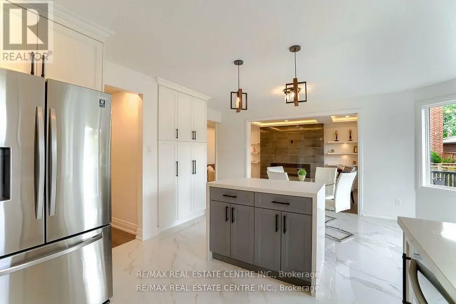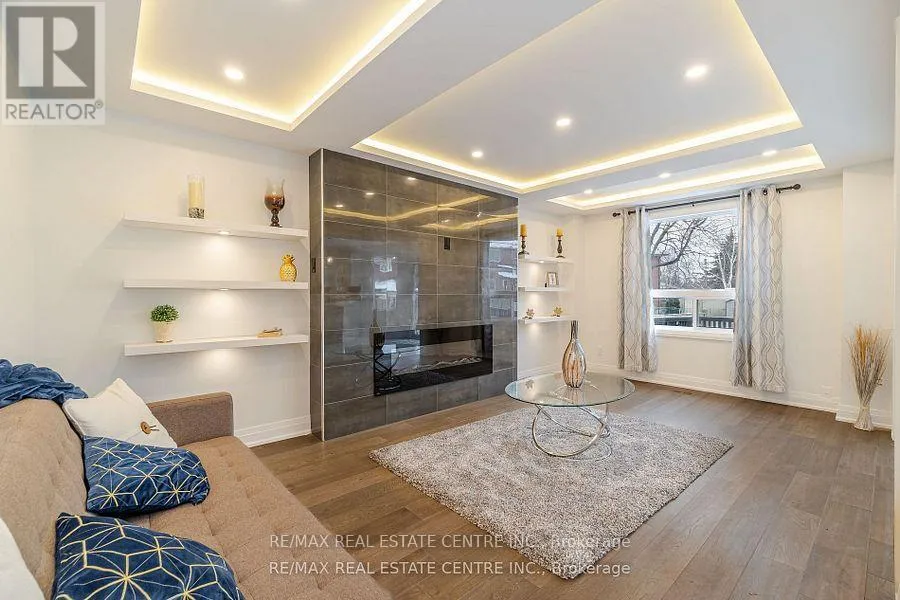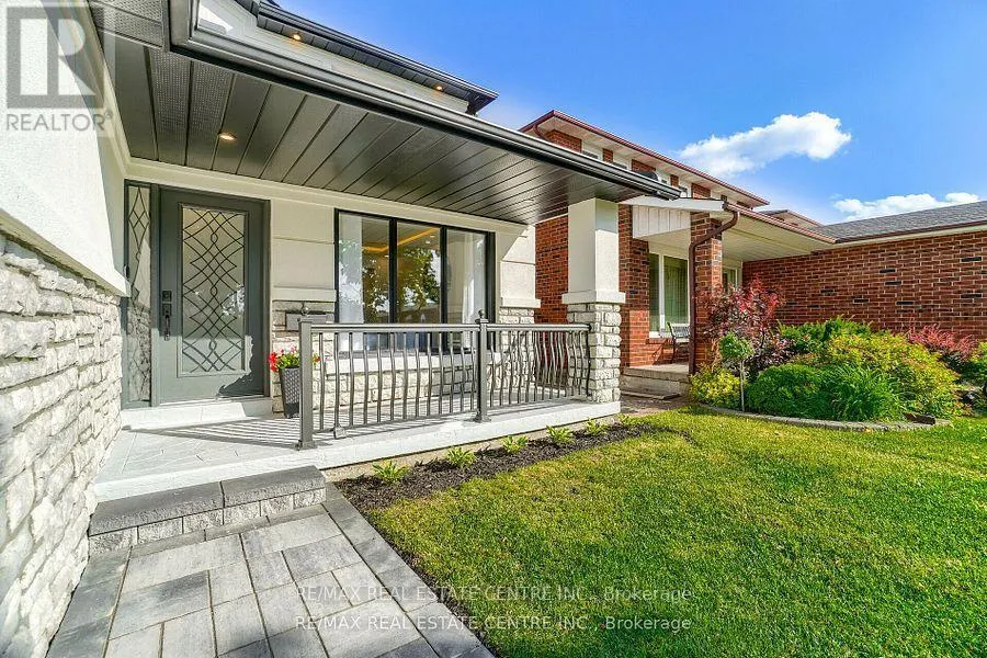 Cawthra/Rathburn Stunning Fully Renovated Executive Home in Prestigious Rathwood. This elegant residence showcases a striking stucco & stone exterior and impeccable modern finishes throughout. Featuring formal living and dining rooms with illuminated ceilings, a rare main-floor office with 3-pc ensuite and separate entrance, and a grand family room with a sleek contemporary fireplace.Enjoy hardwood floors throughout, new bathrooms, custom oak stairs with iron spindles, and stylish modern lighting. The custom gourmet kitchen offers a centre island, pantry, breakfast area, premium finishes, and new stainless steel appliances. Upstairs boasts four spacious bedrooms including a luxurious primary retreat with walk-in closet and ensuite. The finished basement includes an open-concept rec room, wet bar, fifth bedroom, and cold cellar.Additional highlights include direct garage access, new interlocking, double-car garage, and a landscaped, fully fenced backyard with refinished deck and pool-size yard. Ideally located near highway 401&403, transit, parks, shopping, Schools, Restaurants, and Etobicoke GO Station. Move in and enjoy exceptional luxury and convenience. (id:27476)