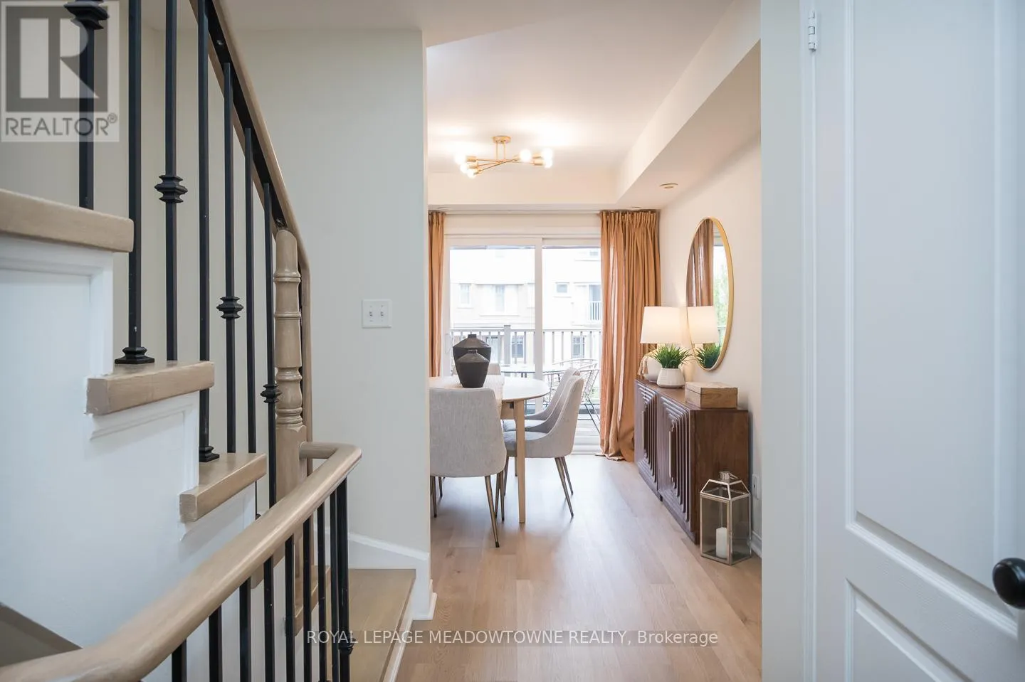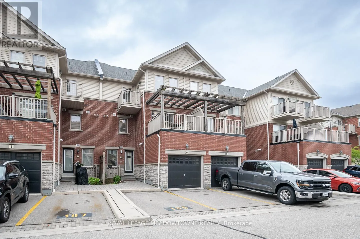 Tenth Line W - Thomas St. Welcome to this beautifully updated 3-bedroom plus den townhome located in the highly desirable Churchill Meadows neighbourhood with 2 parking spots. The open-concept living and dining areas feature upgraded flooring, upgraded lighting, a neutral colour palette, and seamless access to a Juliette balcony and a large terrace perfect for entertaining. The modern kitchen boasts quartz countertops, a breakfast bar, and sleek stainless-steel appliances. Upstairs, you'll find generously sized bedrooms, full main bath and a primary retreat with two walk-in closets and a luxurious 4-piece ensuite. Additional highlights include high smooth ceilings, pot lights throughout, interior garage access, and parking for two. Ideally situated within walking distance to parks, top-rated schools, shops, and just minutes from major highways, this home offers both convenience and sophistication. (id:27476)