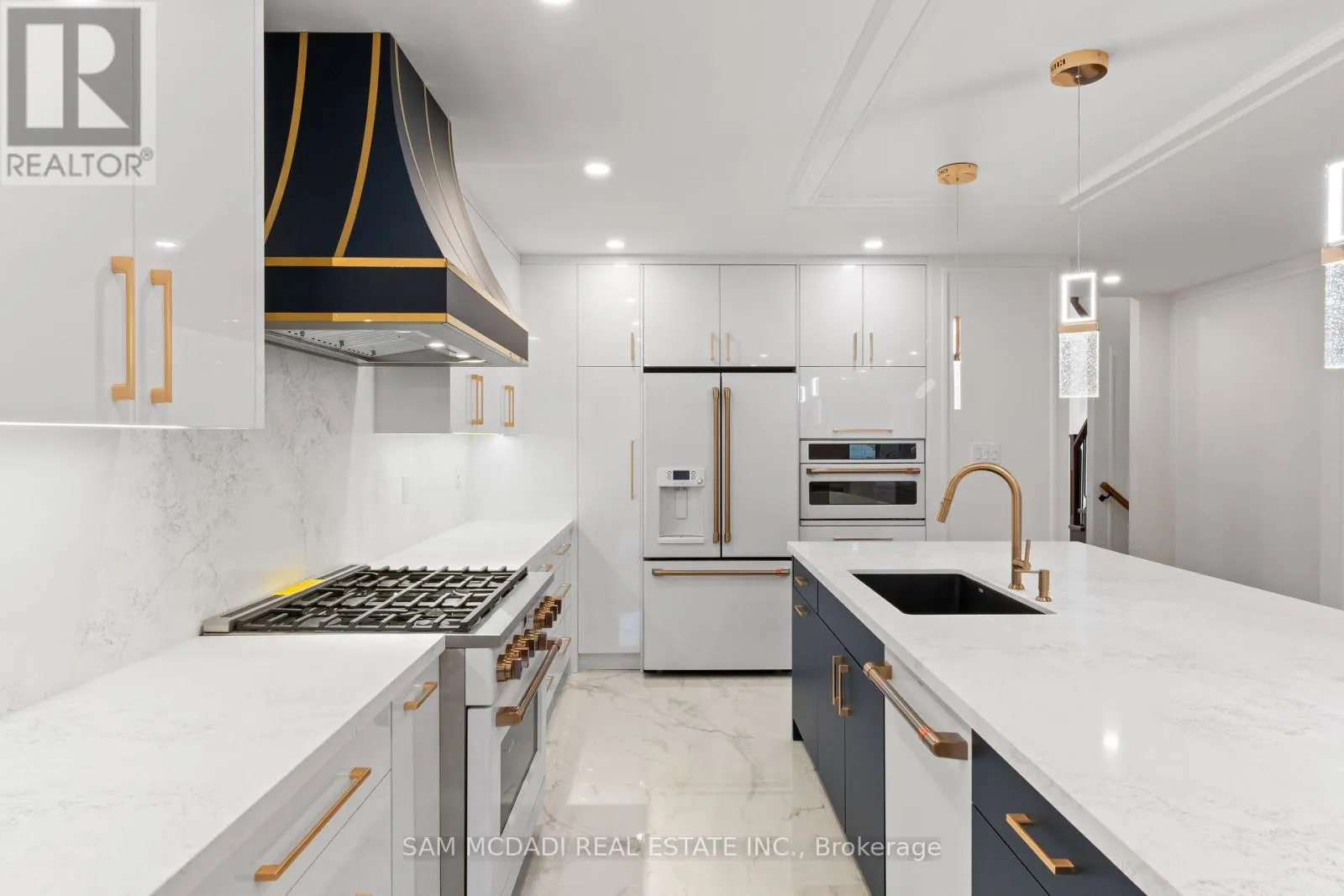 Cross Streets: Ninth Line & Erin Centre Blvd. ** Directions: From Eglinton Ave W turn right onto Churchill Meadows Blvd, turn left onto Littlebend Dr, the destination will be on the left. Step inside 5180 Littlebend Dr, a thoughtfully upgraded 4+1 bedroom, 5 bathroom home in sought after Churchill Meadows, offering approximately $450K in premium enhancements. The impressive foyer welcomes you with high ceilings & sleek tile flooring, seamlessly flowing into a bright open concept main floor adorned with pot lights & chevron hardwood flooring throughout for a classic Parisian touch. The kitchen is a true showpiece, featuring panel-ready top of the line appliances, quartz countertops & backsplash, crown moulding, a large centre island with ample storage, & gold accents throughout, all set on luxurious tile flooring. Overlooking the kitchen are the dining & living areas, highlighted by refined wainscoting & a cozy fireplace that sets the tone for a warm, inviting setting. A walkout from the main living space leads to the backyard deck, perfect for seamless indoor / outdoor living. A main floor laundry room & 2pc powder room complete this level. Ascend the curved staircase to the second level, where the primary suite awaits, complete with a custom walk-in closet & a spa inspired 5pc ensuite featuring a soaker tub, walk-in shower, his & hers sinks, & elegant finishes throughout. Three additional well sized bedrooms complete this level, each with generous closet space, two sharing a semi-ensuite, along with a stylish 3pc main bathroom. The finished lower level adds exceptional versatility, featuring a fifth bedroom, a full kitchen with stainless steel appliances, quartz countertops, & ample cabinetry, as well as a spacious recreation area, ideal for an in-law suite or added entertainment space. Step outside to a spacious, fully fenced backyard, offering plenty of room for kids, pets, & outdoor gatherings. Centrally located near restaurants, schools, parks, golf & country clubs, and more, this elegant residence is ready to welcome you home! (id:27476)