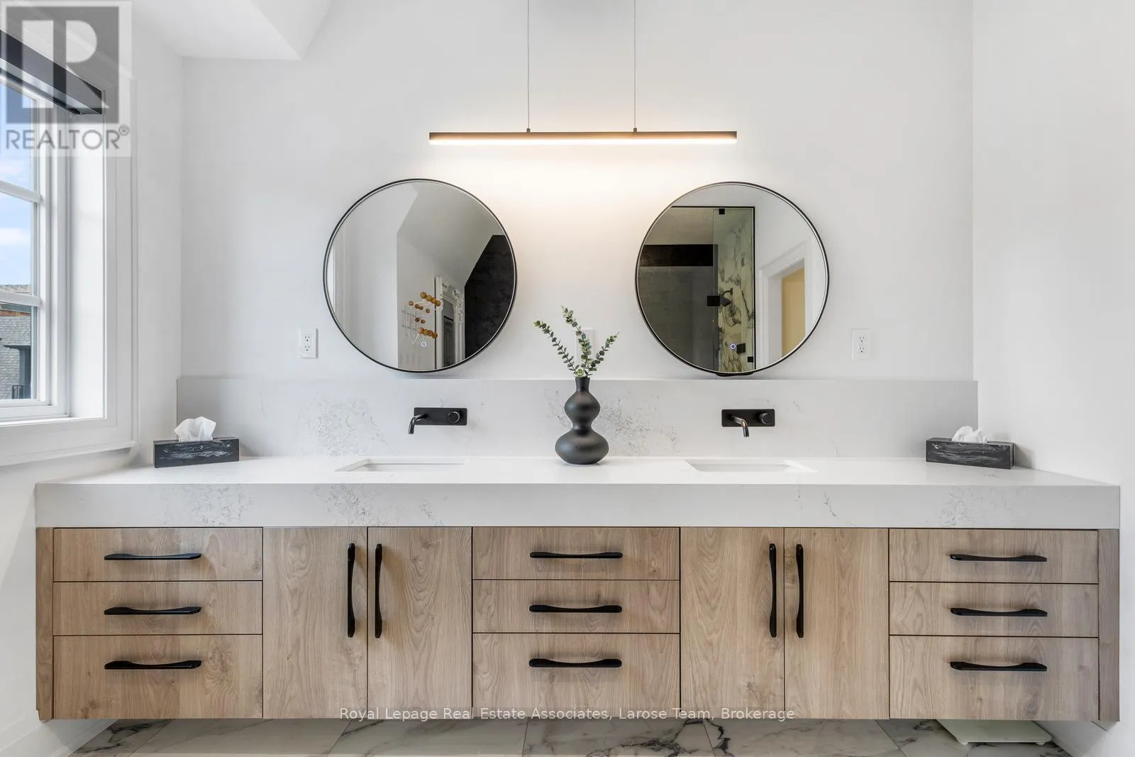 Thomas/Queen Say hello to next-level Streetsville living-designer finishes, quiet setting, and steps to everything you love. Steps from coffee, restaurants, shops, and just a 2-minute walk to the GO Station (only 37 minutes to Toronto!) this private, designer-finished townhome is ready for you to move in and live your best life. Nearly 2,000 sq ft of living space with $250K+ in high-end upgrades means every corner has been thoughtfully curated-because why settle for builder-grade when you can have stylish, functional, and totally move-in ready? This 3-bedroom, 3-bath home hits the sweet spot between convenience, comfort, and designer flair. The main floor is open, bright, and made for both chilling and entertaining. Cook, snack, or sip your morning coffee at a large, sleek kitchen island with premium appliances and custom details. Step out onto the balcony when you need some fresh air, or cozy up by the modern fireplace surrounded by clean, custom cabinetry-function and style all in one space. Upstairs, find bedrooms that feel spacious without wasting a square foot, laundry where it actually makes sense, and a huge primary suite with an ensuite bath that's basically your own spa! Heated floors, a walk-in shower, a double vanity, and a walk-in closet that actually fits all your stuff-finally. The details keep going: wide-plank hardwood, motorized blinds, abundant natural light, private 2-car garage, and the kind of designer touches that make a house feel like a home. Outside? Streetsville is calling. Grab your favourites- Saucy for dinner, Qamari Yemeni Coffee Co. for a pick-me-up-and enjoy one of Mississauga's most walkable, connected neighborhoods. Stylish, smart, and ready for your life-this is townhouse living done right. *Open House: Sunday February 1st 2-4PM* (id:27476)