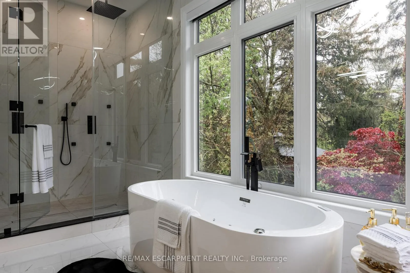 Mississauga Rd & Stonehouse Cres. This exquisite custom-built estate in Mississauga's Sheridan neighbourhood offers over 8,000 sq. ft. of refined living space, combining elegance, comfort, and modern convenience. With 6+1 bedrooms and 7 bathrooms, this home is designed for upscale family living and grand entertaining. A dramatic foyer with 22-foot ceilings sets a striking first impression. The great room also features soaring ceilings and expansive windows that flood the space with natural light. The chef-inspired kitchen is equipped with high-end appliances, quartz countertops, a marble backsplash, and a stunning waterfall island opening to a breakfast area with walkout access to the landscaped backyard. Outdoor features include a saltwater in-ground pool, a hot tub, a natural stone patio, and built-in Napoleon BBQs perfect for summer entertaining. The primary suite is a luxurious retreat with a gas fireplace, a balcony overlooking the backyard, and a spa-like six-piece ensuite. The finished lower level offers a home gym, a sauna, a wet bar, and a theatre with seating for ten. Additional highlights include a three-car garage, smart thermostat, integrated elevator, and professionally maintained landscaping. Ideally located near top schools, parks, and major highways, this Luxury Certified home is a rare offering in Sheridan. (id:27476)