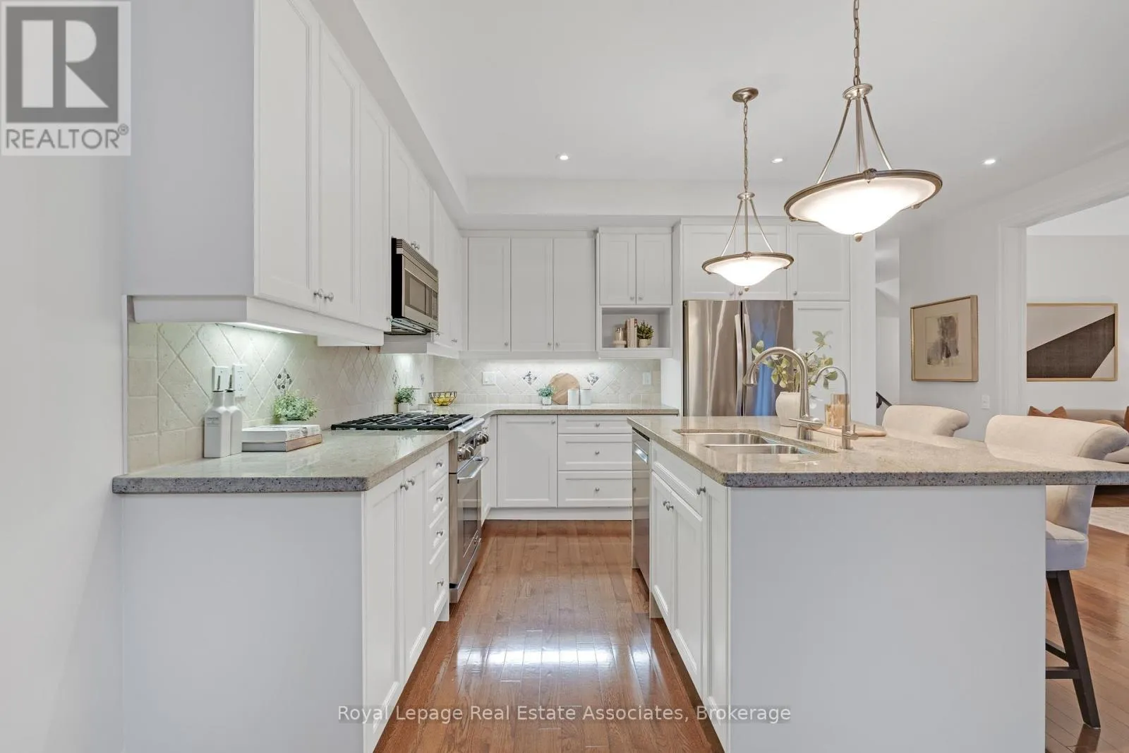 Cross Streets: Dundas/Mississauga/Collegeway. ** Directions: West on The Collegeway off Mississauga Road to Broad Hollow Gate. Nestled in the heart of the Sawmill Valley and surrounded by woodlands, this beautifully appointed 2+1 bedroom, 3+1 bathroom townhouse offers impressive space and light, with over 2,300 sq. ft. above grade with a fully finished basement. The main and upper levels feature hardwood flooring and 9-foot ceilings, while soaring two-storey windows in the living area flood the home with natural light, creating an inviting setting for everyday living and entertaining. The main floor includes a versatile bonus area, ideal as a den, TV room, or formal dining space, adding flexibility to the layout.The kitchen is designed for both function and connection, featuring high end stainless steel appliances, including a gas stove, ample counter space, and an island perfect for casual dining or gathering while meals come together. Upstairs, both bedrooms enjoy their own private ensuite bathrooms, offering comfort and privacy. The finished basement extends the living space with a recreation room, additional bedroom or home office, and a 3-piece bathroom. Located within an exclusive executive complex of just 20 units, close to trails, parks, and everyday amenities, this home delivers the perfect balance of space, privacy, and low-maintenance living in one of Sawmill Valley's most desirable communities. Easy access to major highways. (id:27476)