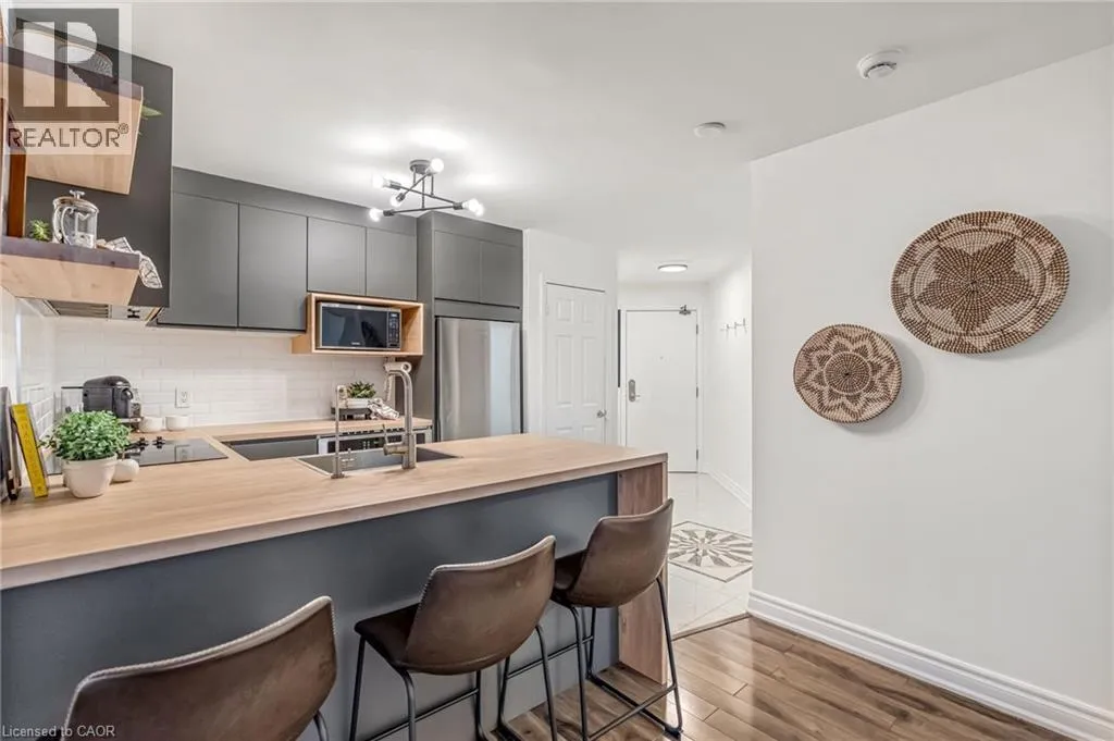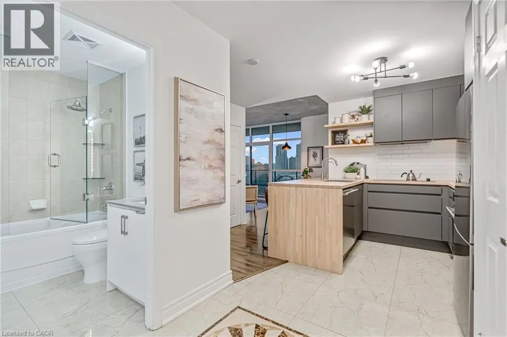 Eglington Ave To Forum Dr Beautifully updated 2-bedroom, 2-bathroom condo in the sought after Tuscany gate community, offering approx. 943 sq ft of bright, well-designed living space. This southwest-facing unit features a premium floorpan with 9-ft ceilingsâhigher than standard in the buildingâand unobstructed lake and skyline views, enjoyed from the open balcony. Renovated in 2022, the kitchen and living area showcase wood countertops, stainless steel appliances, a custom rustic-modern ceiling feature, fresh paint throughout, and blackout blinds. Enjoy the convenience of ensuite laundry complete with a new washer and dryer (2022). The unit also includes two owned underground parking spaces and an owned locker. Maintenance fees cover heat, water, central air, parking, building insurance, and common elements, all within a well-managed building close to transit, shopping, dining, and major highways. The building also offers various amenities such as an outdoor pool, gym, and a billiards room! (id:27476)