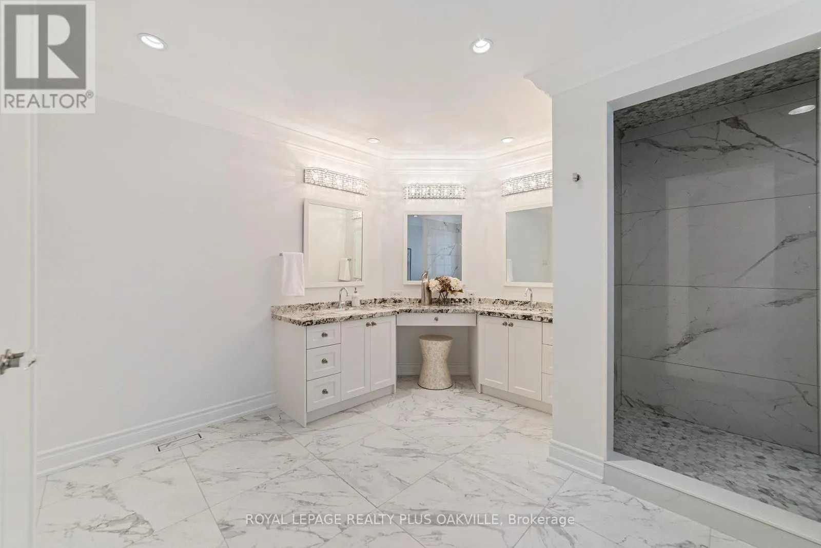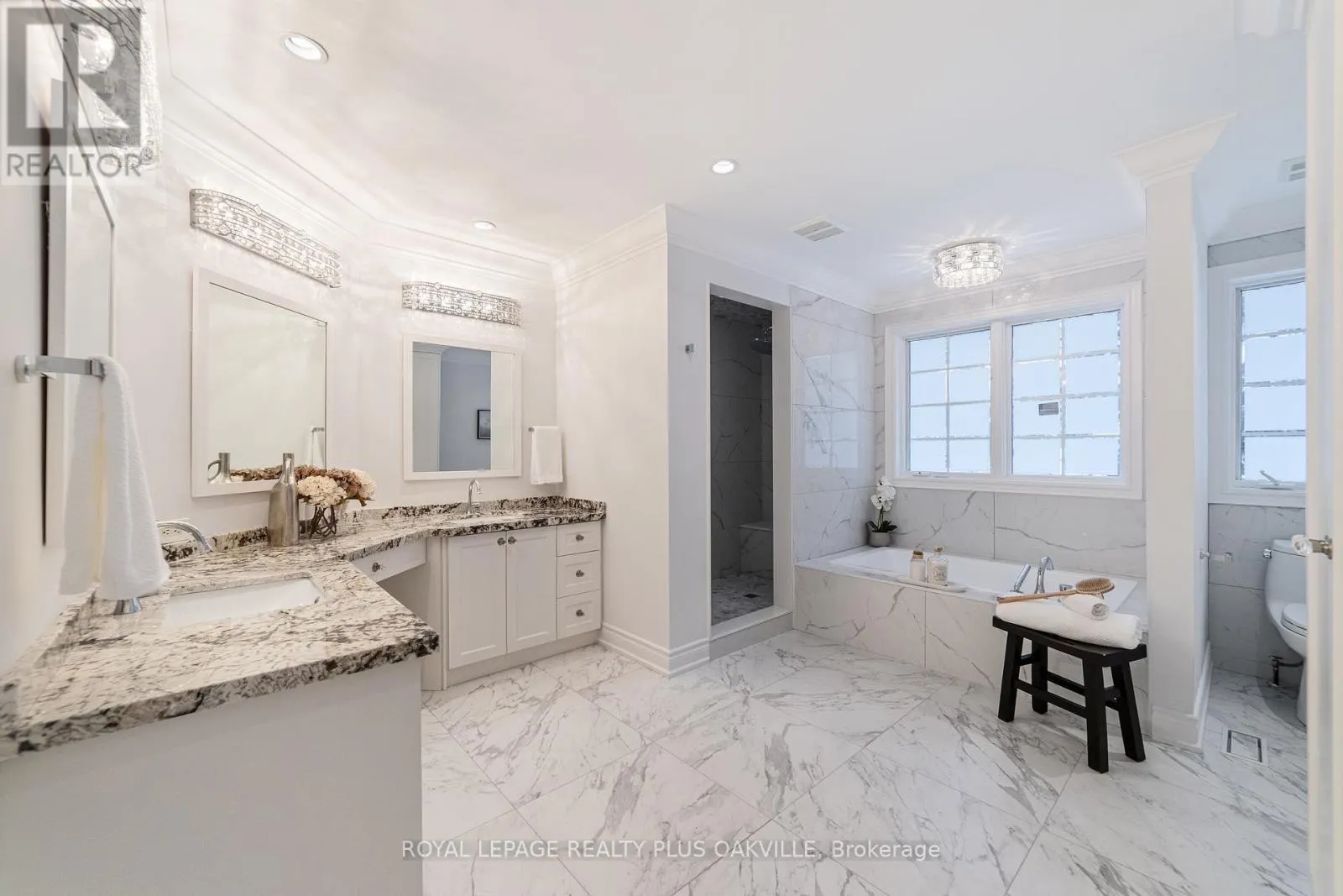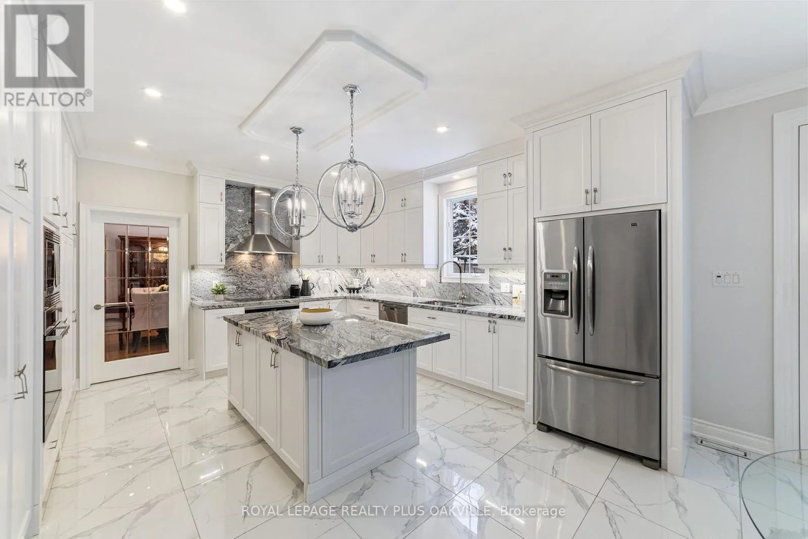 Cross Streets: Lorne Park Rd & Glen Rd. ** Directions: Lorne Park Rd to Glen Rd. Rarely offered original owner home on a picturesque, tree-lined, family-friendly street in the heart of prestigious Lorne Park. Set well back from the road and surrounded by mature trees and lush gardens, this custom residence offers an estate-like setting on an exceptionally private, pool-sized lot exceeding 18,000 sq ft. The timeless stone, stucco and brick exterior in warm earth tones is enhanced by extensive hardscaping, including a wide driveway, walkways, porch and patio areas. An oversized garage provides parking for two vehicles plus storage, while the expansive driveway accommodates over eight cars. Offering approximately 4,000 sq ft of thoughtfully designed living space, this executive home features a grand double-door entry to a spacious foyer and an impressive layout ideal for family living and entertaining. The main level includes a private den with custom built-ins, a formal living room with gas fireplace, and an oversized dining room with direct access to the renovated kitchen. Completed in 2020, the kitchen showcases a large centre island, Miele convection oven and cooktop, built-in microwave, ample storage, and a walkout to the backyard. The two-storey family room features custom built-ins and a gas fireplace. Hardwood floors grace the principal rooms, open staircase and upper level. A functional mudroom with built-in cabinetry, sink, extra freezer and garage access adds convenience. Upstairs, the expansive primary suite spans the rear of the home and includes a walk-in dressing room and renovated five-piece ensuite with double vanity, soaker tub and separate shower. Two additional bedrooms share a renovated Jack and Jill bathroom, while a fourth bedroom with walk-in closet enjoys its own renovated three-piece bath. The private backyard retreat features a pond, tiered gardens, multiple seating areas, and two exterior gas lines for barbecues. Ideally located close to the lake, Waterfront Trail, parks, top schools, shopping and easy highway access. (id:27476)