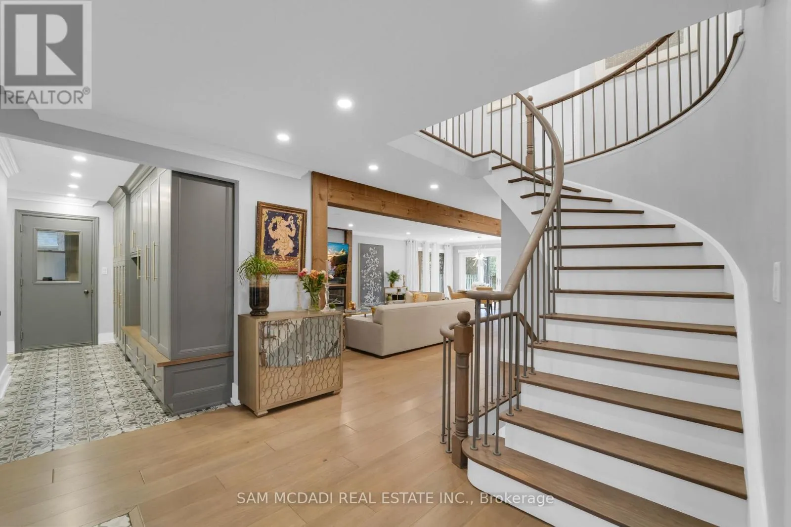 Cross Streets: Mississauga Rd & Indian Rd. ** Directions: If heading southbound on Mississauga Rd, turn right onto Indian Rd. If heading northbound on Mississauga Rd, turn left onto Indian Rd. The home will be on your right side. Welcome to 807 Indian Road, a beautifully appointed residence in the heart of prestigious Lorne Park. Set on an impressive 64 x 244 ft lot, this elegant home offers exceptional privacy, outstanding curb appeal, and a tranquil setting on one of South Mississauga's most desirable streets. A hydraulic iron gate, professionally landscaped grounds, and an extended stone interlock driveway create a striking first impression, with parking for up to 8 vehicles plus a double garage featuring built-in storage and EV charging. Offering over 4600 SF of total living space, this 4+1 bedroom, 4.5 bathroom home was thoughtfully renovated in 2021 to blend modern luxury with timeless comfort. The main level is bright and inviting, featuring oversized windows, light oak wide-plank engineered hardwood flooring, pot lights, and custom built-in storage throughout. The gourmet kitchen is complete with quartz countertops and backsplash, premium Thermador stainless steel appliances, and ample storage. The family room is warm and inviting with custom wood paneling, built-in shelving, and a Napoleon electric fireplace. A graceful round hardwood staircase leads to the upper level, where the spacious primary retreat offers a walk-in closet and spa-inspired ensuite with double vanity and glass-enclosed rainfall shower. A junior suite includes a brand-new 3-piece ensuite with rainfall shower and brass fixtures, alongside two additional bedrooms and a 4-piece bath. The finished lower level features an additional bedroom and bathroom, wet bar, sauna, home theatre setup, rec room with fireplace, and a laundry room with built-in cabinetry. Outdoors, the exceptionally deep backyard is a private oasis complete with full outdoor kitchen, interlocked patio, mature trees, and lush gardens. Perfectly situated near top-rated schools including Mentor College, Lake Ontario, Port Credit, golf clubs, and the QEW, this exceptional home offers refined living in one of Mississauga's most sought-after communities. (id:27476)