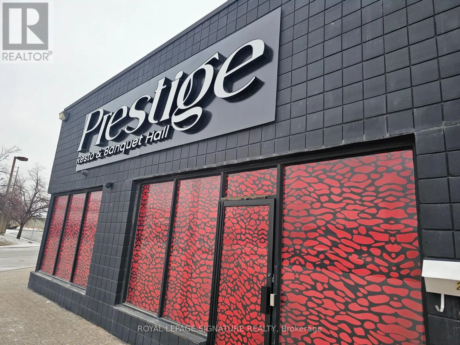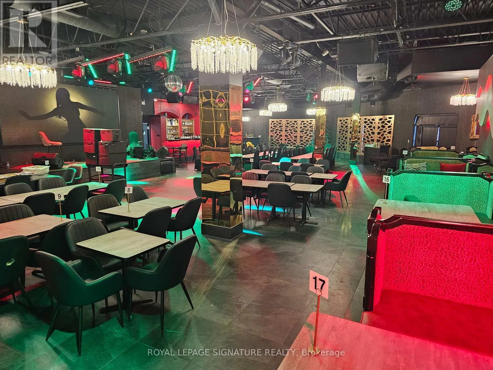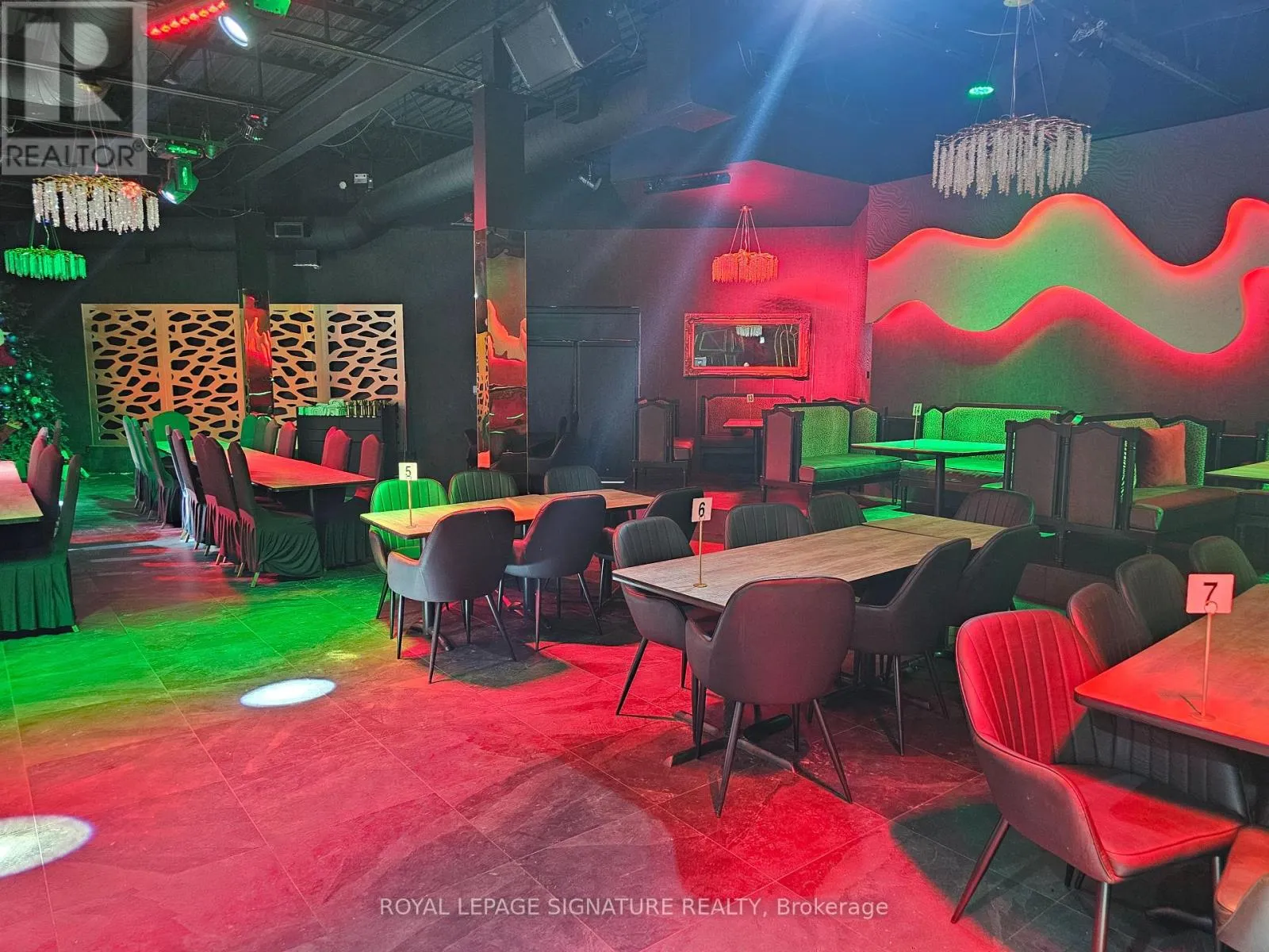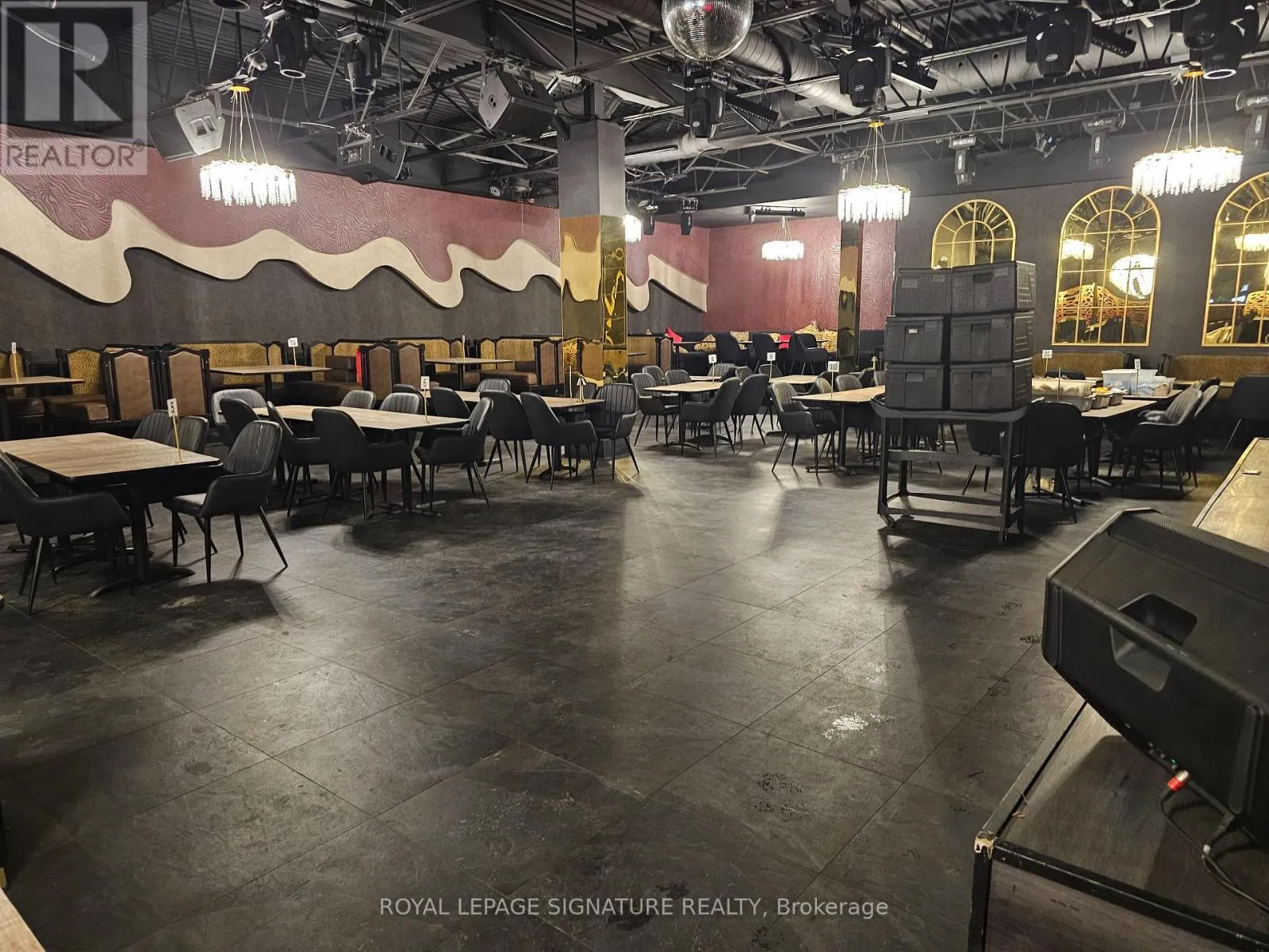 Dixie and 401 Prestige Restaurant & Banquet Hall is a spacious 6,118 Sq Ft venue located in Mississauga near the Brampton border and close to the airport. This fully licensed establishment accommodates up to 262 guests, making it ideal for parties, events, and catering. The layout is well designed to maximize guest comfort and operational efficiency. The restaurant features a large commercial kitchen equipped with multiple hood systems totaling 31 ft, including a 7-ft charcoal range, and two walk-ins (1 + 1). Fantastic lease rate of $12,389 Gross per month including TMI and 2 + 5 + 5 years remaining, the property offers excellent value. Parking is available for over 100 vehicles, supporting high-capacity events. Currently operating as a popular restaurant concept with strong sales, this venue is also available for rebranding into a new concept if desired. The space is enhanced with a top-of-the-line sound system, professional lighting, and other premium features. Potential for Vendor Take Back (VTB) financing pending approval and conditions. Please do not go direct or speak to staff or ownership. (id:27476)