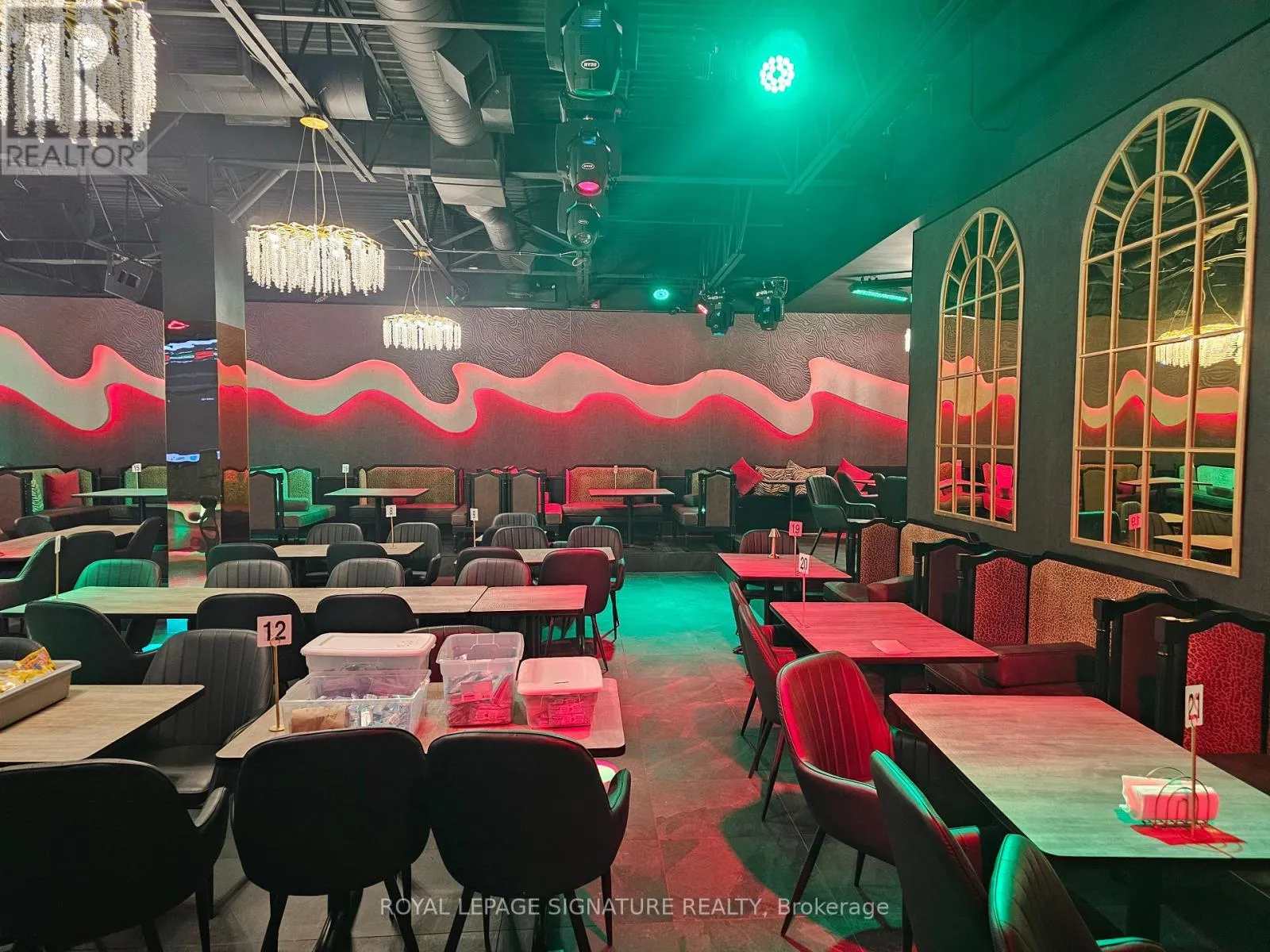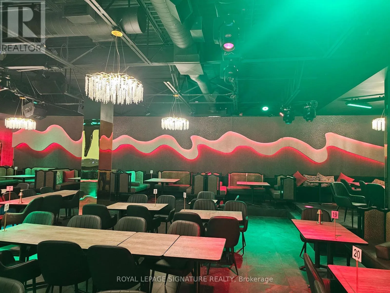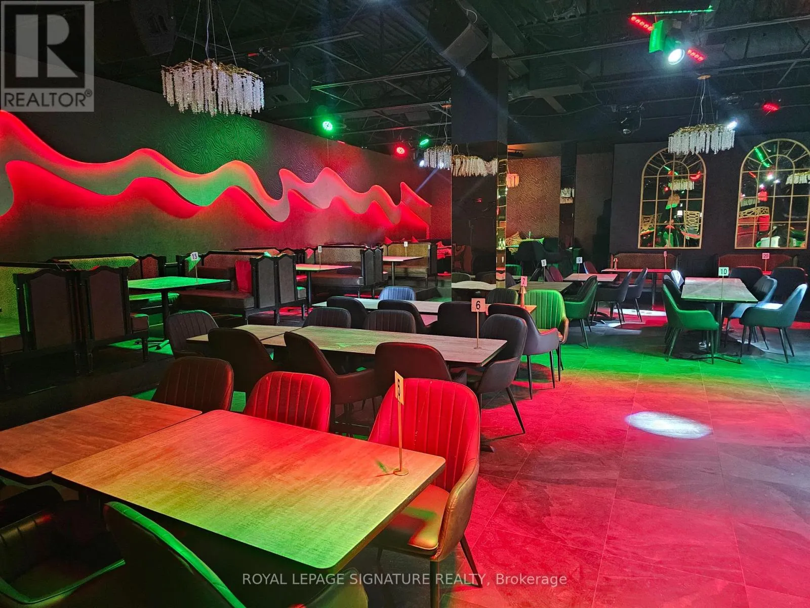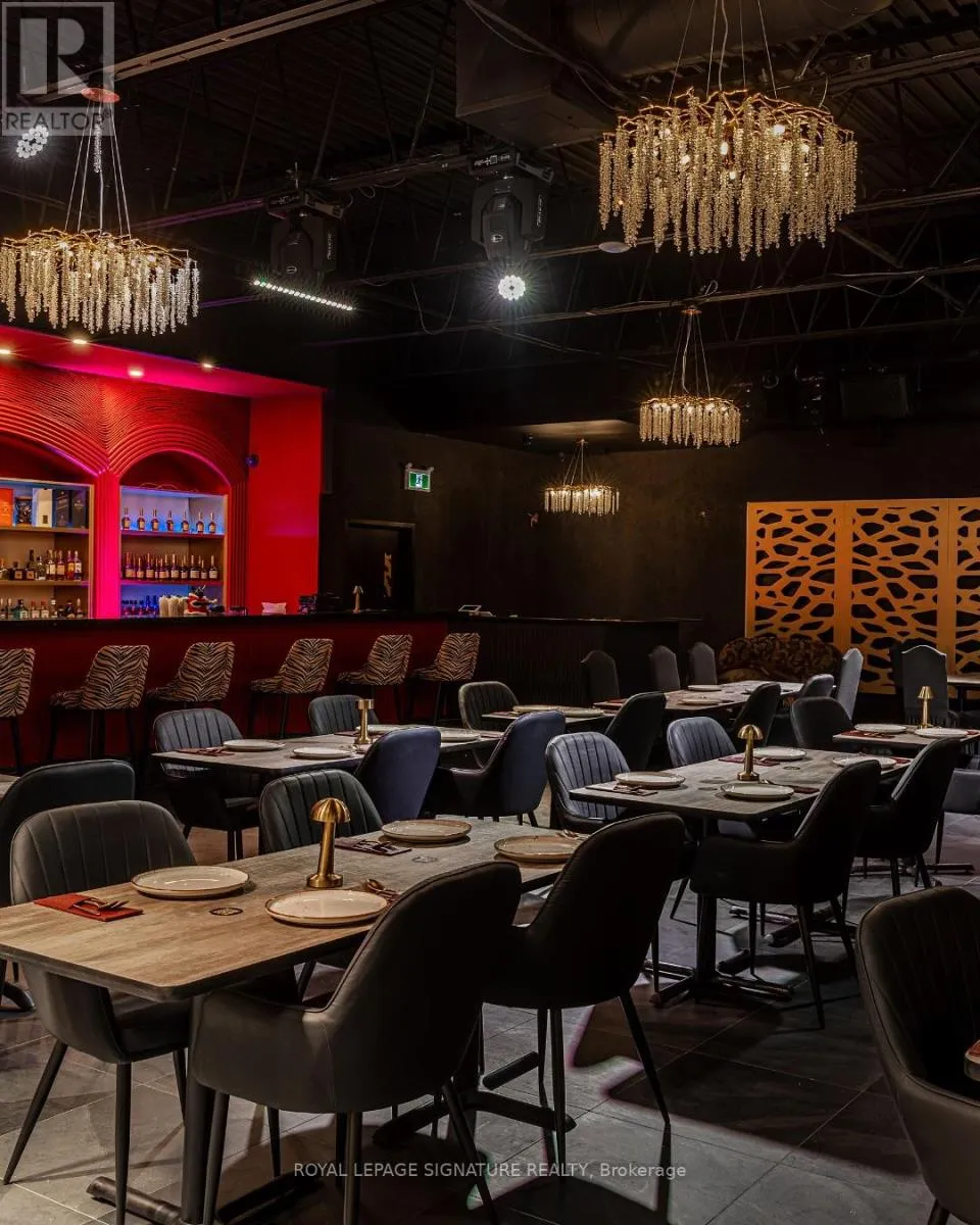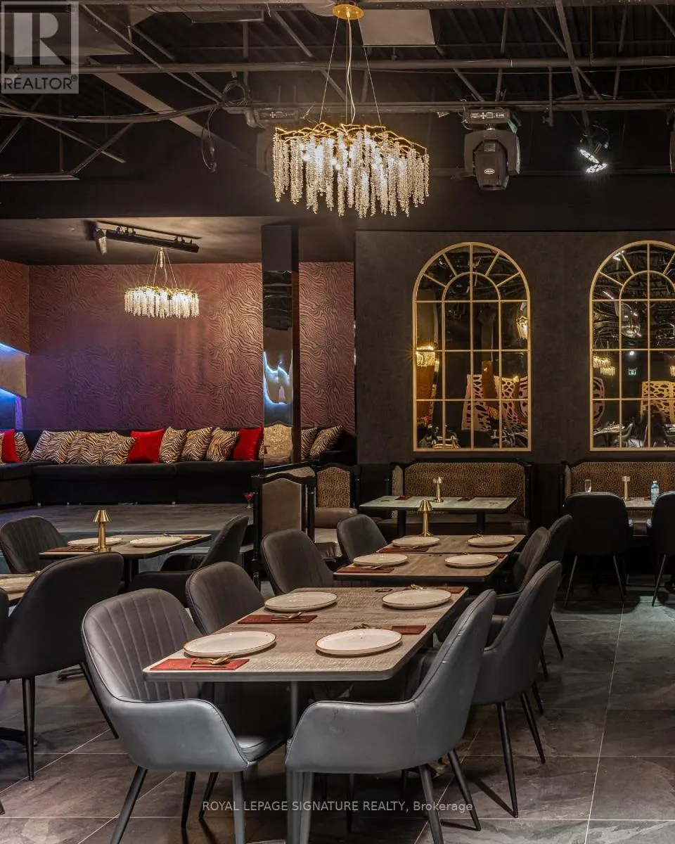 Dixie and 401 Prestige Restaurant & Banquet Hall is a spacious 6,118 Sq Ft venue located in Mississauga near the Brampton border and close to the airport. This fully licensed establishment accommodates up to 262 guests, making it ideal for parties, events, and catering. The layout is well designed to maximize guest comfort and operational efficiency. The restaurant features a large commercial kitchen equipped with multiple hood systems totaling 31 ft, including a 7-ft charcoal range, and two walk-ins (1 + 1). Fantastic lease rate of $12,389 Gross per month including TMI and 2 + 5 + 5 years remaining, the property offers excellent value. Parking is available for over 100 vehicles, supporting high-capacity events. Currently operating as a popular restaurant concept with strong sales, this venue is also available for rebranding into a new concept if desired. The space is enhanced with a top-of-the-line sound system, professional lighting, and other premium features. Potential for Vendor Take Back (VTB) financing pending approval and conditions. Please do not go direct or speak to staff or ownership. (id:27476)