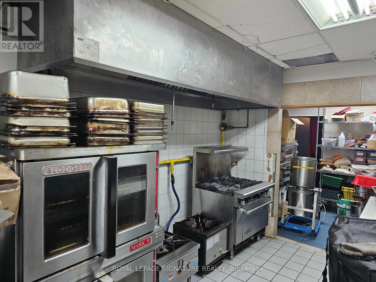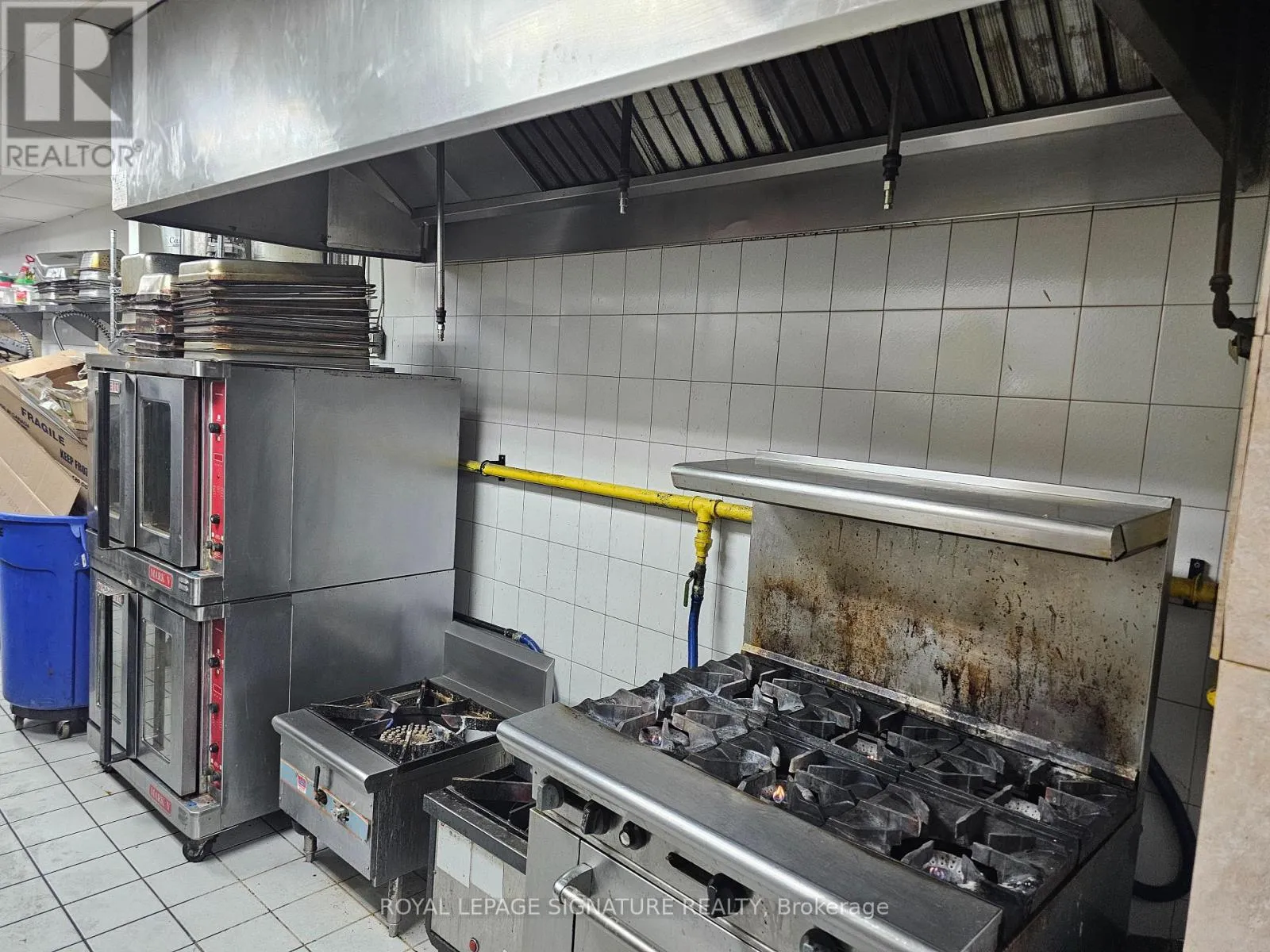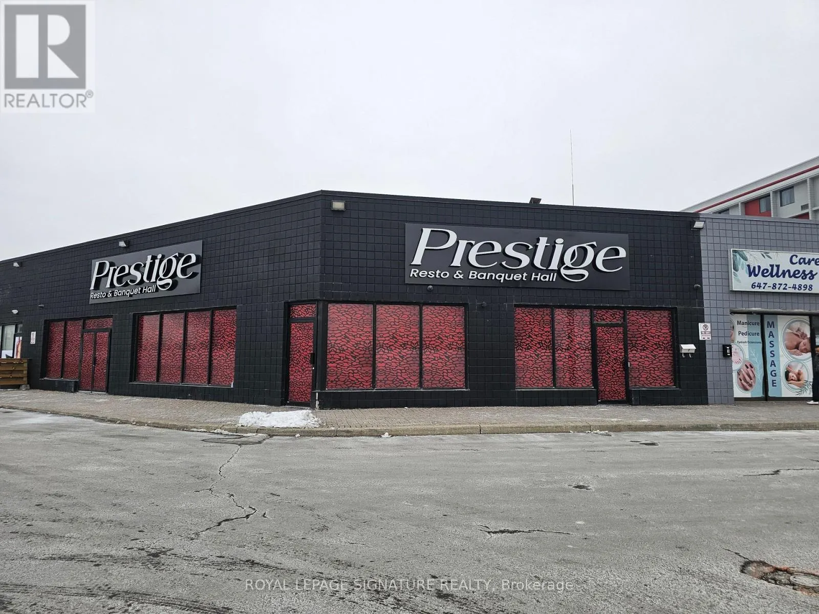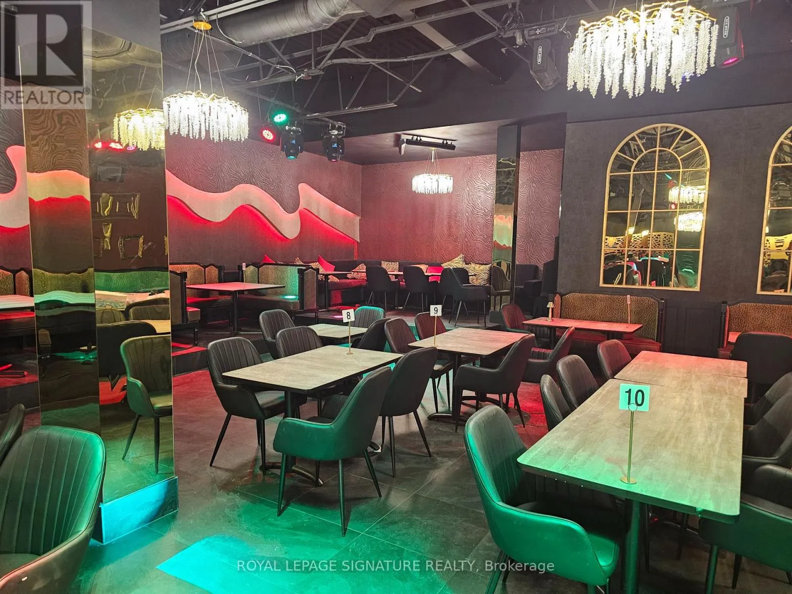 Dixie and 401 Prestige Restaurant & Banquet Hall is a spacious 6,118 Sq Ft venue located in Mississauga near the Brampton border and close to the airport. This fully licensed establishment accommodates up to 262 guests, making it ideal for parties, events, and catering. The layout is well designed to maximize guest comfort and operational efficiency. The restaurant features a large commercial kitchen equipped with multiple hood systems totaling 31 ft, including a 7-ft charcoal range, and two walk-ins (1 + 1). Fantastic lease rate of $12,389 Gross per month including TMI and 2 + 5 + 5 years remaining, the property offers excellent value. Parking is available for over 100 vehicles, supporting high-capacity events. Currently operating as a popular restaurant concept with strong sales, this venue is also available for rebranding into a new concept if desired. The space is enhanced with a top-of-the-line sound system, professional lighting, and other premium features. Potential for Vendor Take Back (VTB) financing pending approval and conditions. Please do not go direct or speak to staff or ownership. (id:27476)