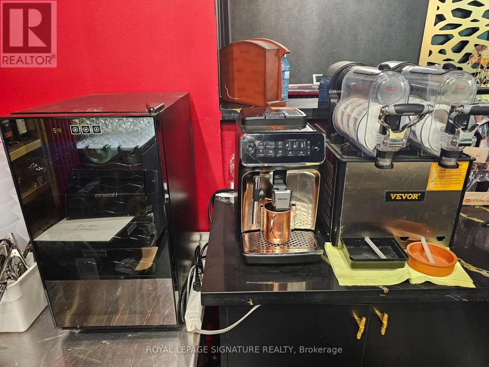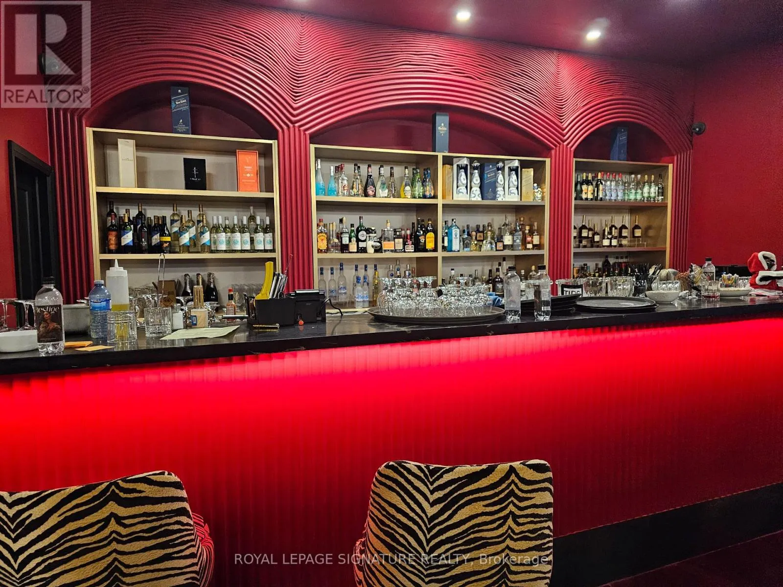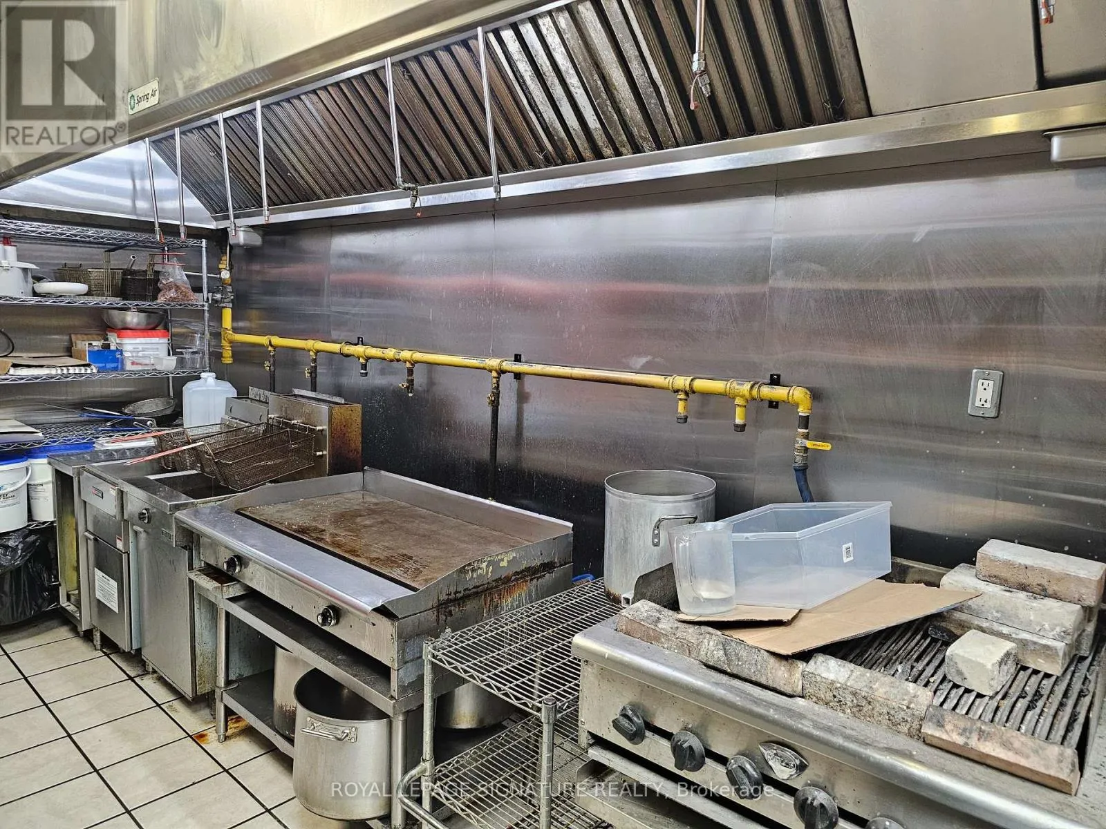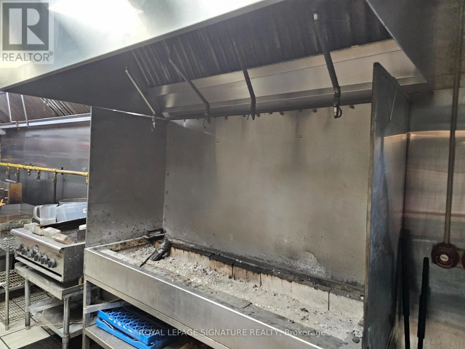 Dixie and 401 Prestige Restaurant & Banquet Hall is a spacious 6,118 Sq Ft venue located in Mississauga near the Brampton border and close to the airport. This fully licensed establishment accommodates up to 262 guests, making it ideal for parties, events, and catering. The layout is well designed to maximize guest comfort and operational efficiency. The restaurant features a large commercial kitchen equipped with multiple hood systems totaling 31 ft, including a 7-ft charcoal range, and two walk-ins (1 + 1). Fantastic lease rate of $12,389 Gross per month including TMI and 2 + 5 + 5 years remaining, the property offers excellent value. Parking is available for over 100 vehicles, supporting high-capacity events. Currently operating as a popular restaurant concept with strong sales, this venue is also available for rebranding into a new concept if desired. The space is enhanced with a top-of-the-line sound system, professional lighting, and other premium features. Potential for Vendor Take Back (VTB) financing pending approval and conditions. Please do not go direct or speak to staff or ownership. (id:27476)