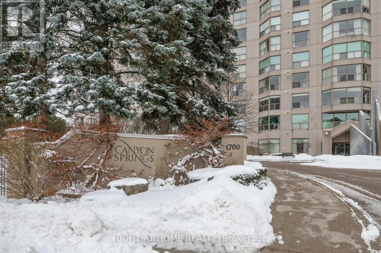 The Collegeway & Mississauga Road Welcome to the prestigious Canyon Springs, 1700 The Collegeway, a fully upgraded 2 bedroom 2 bath residence thoughtfully designed with a focus on comfort and functionality. Floor-to-ceiling windows fill the home with tons of natural light and treed ravine views. The interior features high-quality finishes, including sleek modern cabinetry, quartz backsplash & countertops, designer lighting, complemented by a modern kitchen with brand new appliances and fully renovated washrooms with walk-in showers. Residents enjoy exceptional building amenities, including 24-hour concierge, indoor pool, hot tub and sauna, fitness centre, party and games rooms, billiards and library spaces, car wash, putting green, gazebo with BBQ area, and beautifully landscaped grounds. The unit includes underground parking, one oversized locker while maintenance fees cover heat, hydro, water, central air conditioning, cable TV providing worry-free living. Perfectly located near walking trails, transit, golf clubs, shopping and major highways, this residence offers a serene and well-rounded lifestyle! (id:27476)