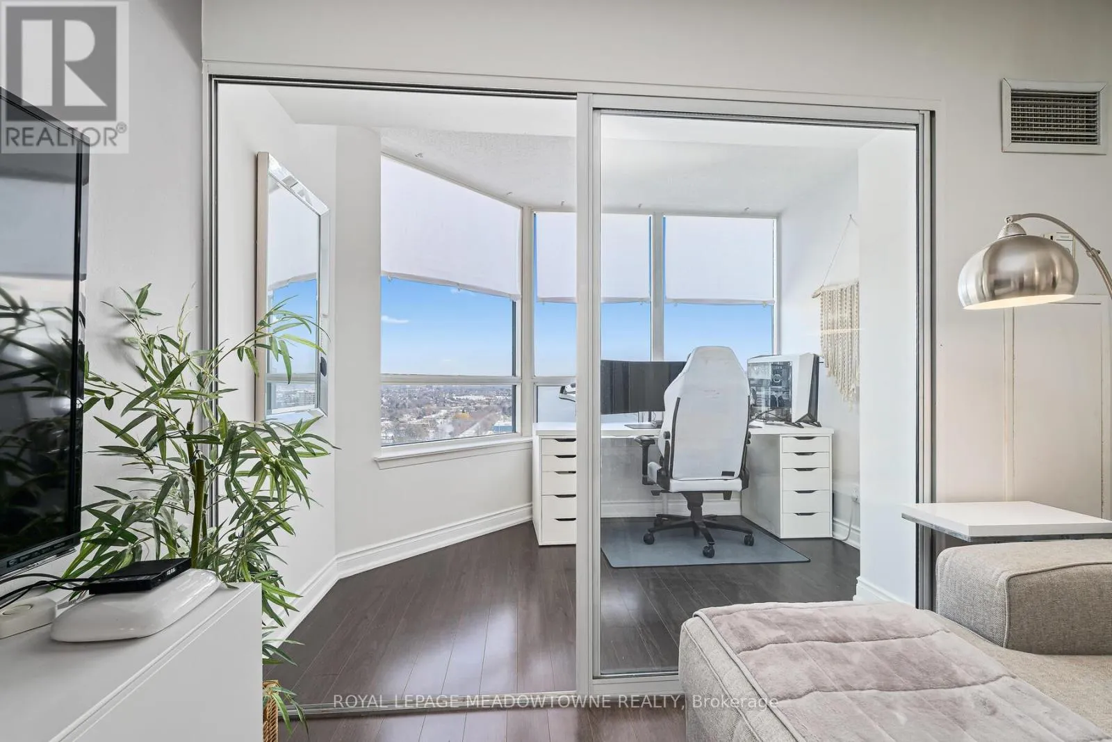 Confederation Pkwy and Hillcrest Ave Welcome to 135 Hillcrest Ave, Unit 2015. This spacious 2 bedroom plus den condo offers approximately 934 square feet of well planned living space in the heart of Cooksville. Situated on the 20th floor with a bright south east exposure, the unit enjoys excellent natural light and open city views. The functional layout features a large combined living and dining area, a separate den ideal for a home office or guest space, and two generously sized bedrooms. The primary bedroom includes an electric fireplace feature, adding warmth and character to the space. In suite laundry provides everyday convenience as well as room for extra storage. Maintenance fees are nearly all inclusive and cover heat, central air conditioning, water, building insurance, and parking, making ownership predictable and cost efficient, you are only responsible for electricity and internet. One owned underground parking space is included. Ideally located just minutes from Square One Shopping Centre, Cooksville GO Station, parks, restaurants, and everyday amenities. Cooksville GO is a stop on the Milton line, offering direct access to Union Station and making this an excellent option for commuters. Future connectivity is further enhanced by the upcoming Hurontario LRT, providing convenient north south transit through Mississauga and into Brampton. A great opportunity for first time buyers, downsizers, or investors seeking space, value, and long term appeal in a central Mississauga location. (id:27476)