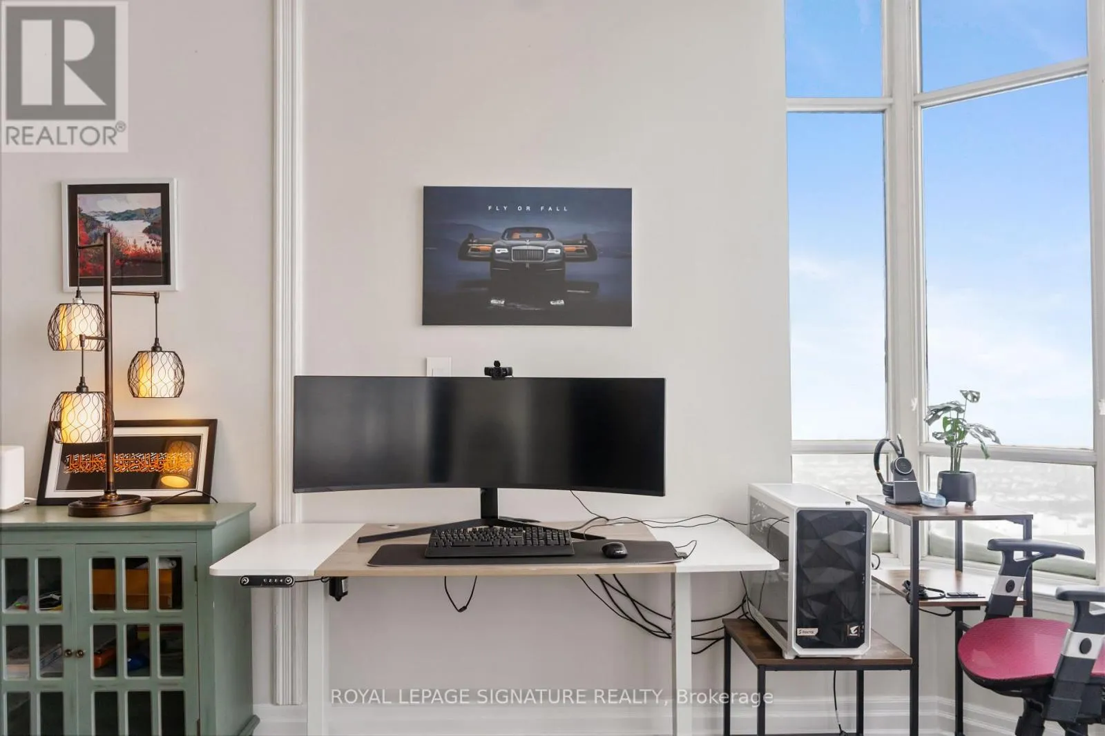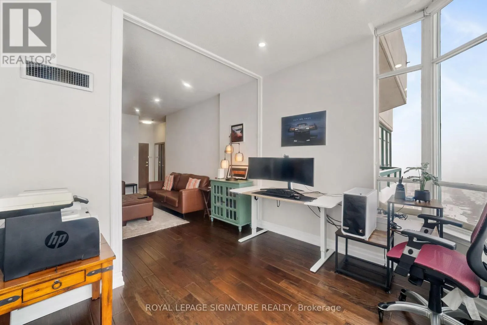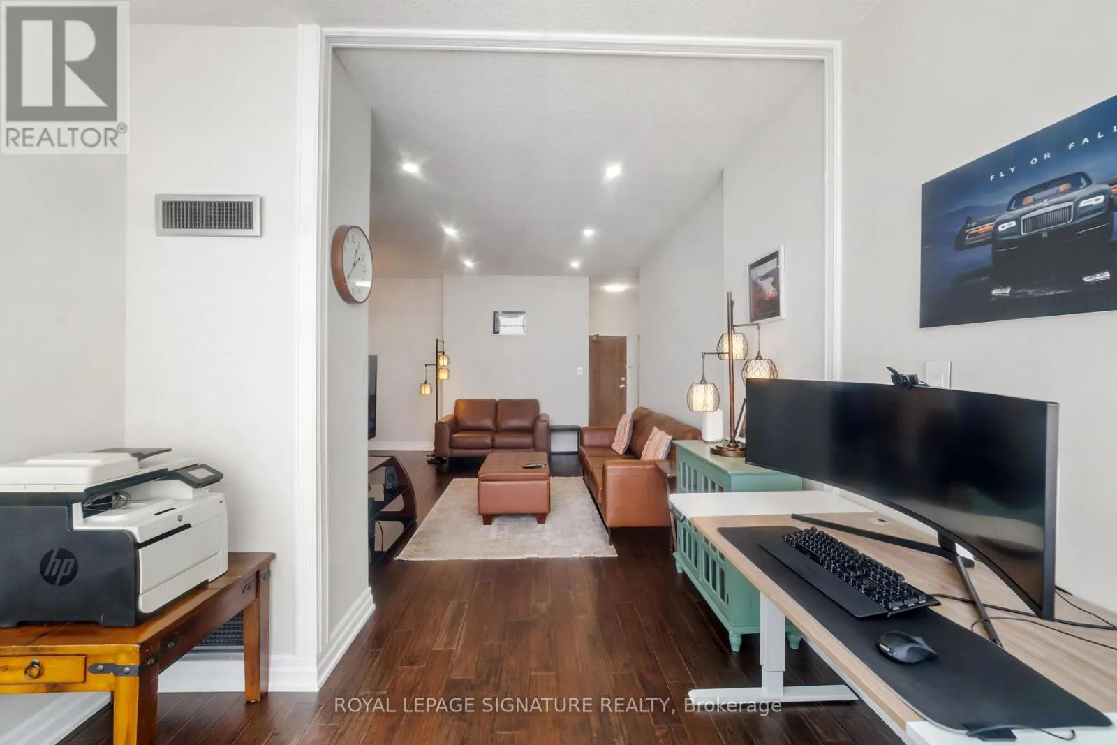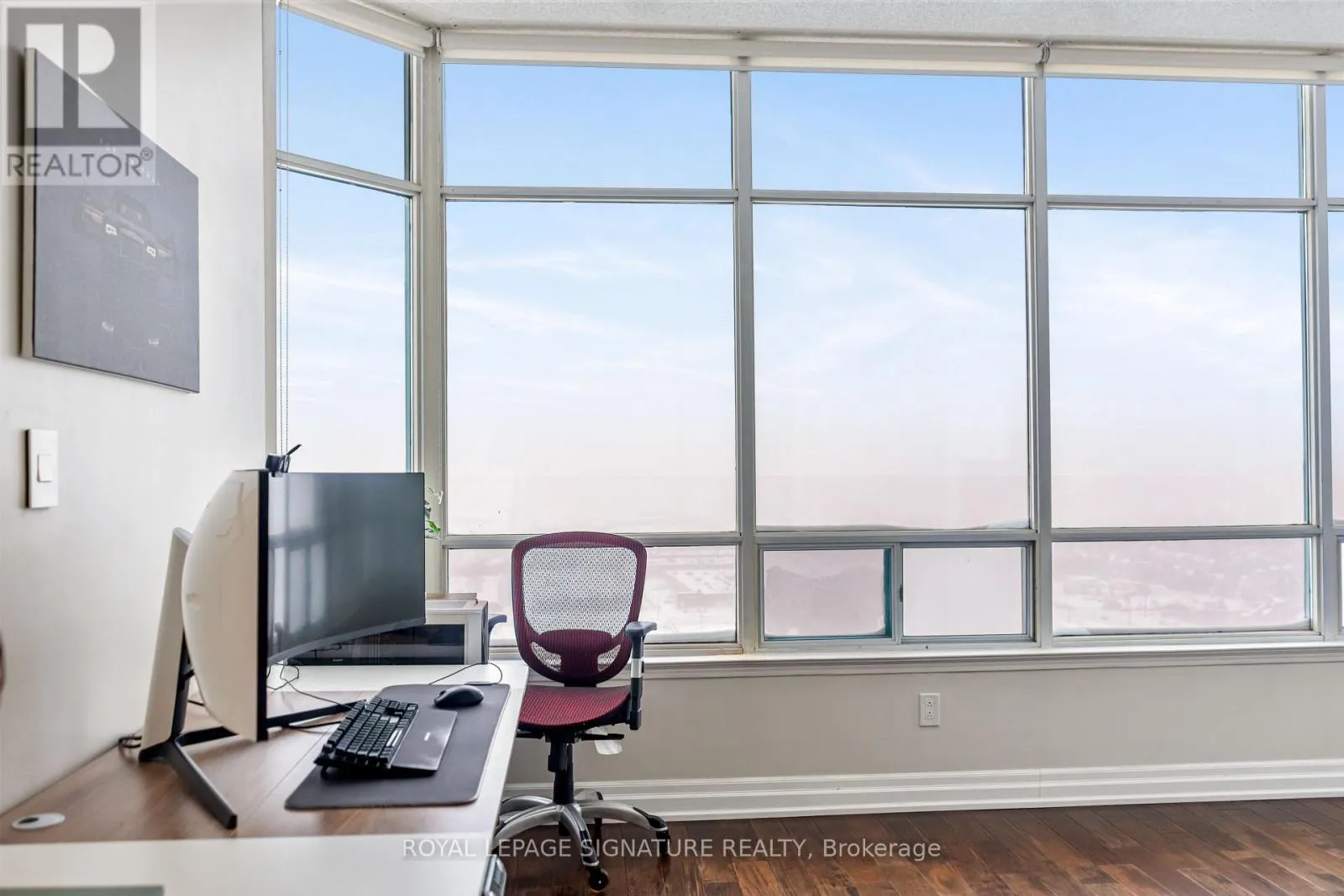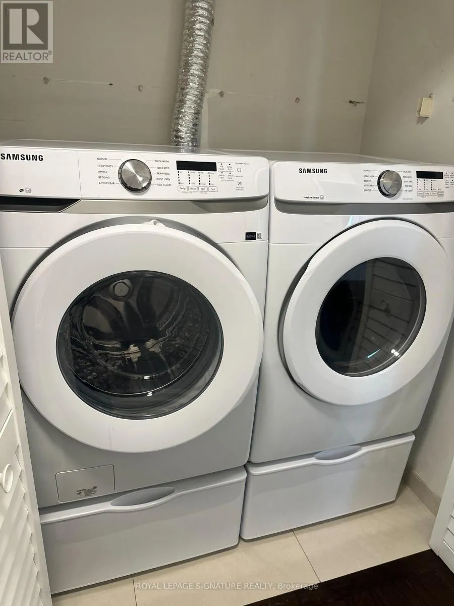 Webb Dr & Grand Park Drive Absolutely spacious and bright Upper Penthouse PH1-9 featuring 10-foot ceilings and breathtaking north-east city views. This sun-filled, Fully furnished residence offers exceptional space, privacy, and sweeping panoramic vistas in one of Mississauga's most connected communities. All utilities are included (hydro, water, and heat), providing outstanding value and convenience.This expansive 2-bedroom, 2-bathroom suite offers approximately 1,100 sq. ft. of move-in-ready living space. The thoughtfully updated layout showcases a bright open-concept living and dining area, enhanced by the integration of the former den-ideal for both everyday living and entertaining. Hardwood flooring runs throughout, while the modern eat-in kitchen is equipped with stainless steel appliances and complemented by large windows that flood the home with natural light.Step out onto the private balcony to enjoy panoramic skyline views-perfect for morning coffee or relaxing evening sunsets. The generous primary bedroom features two large closets and a private ensuite. Additional highlights include ensuite laundry, two entry closets, one locker, and two parking spaces & extra Storage Space. (id:27476)
