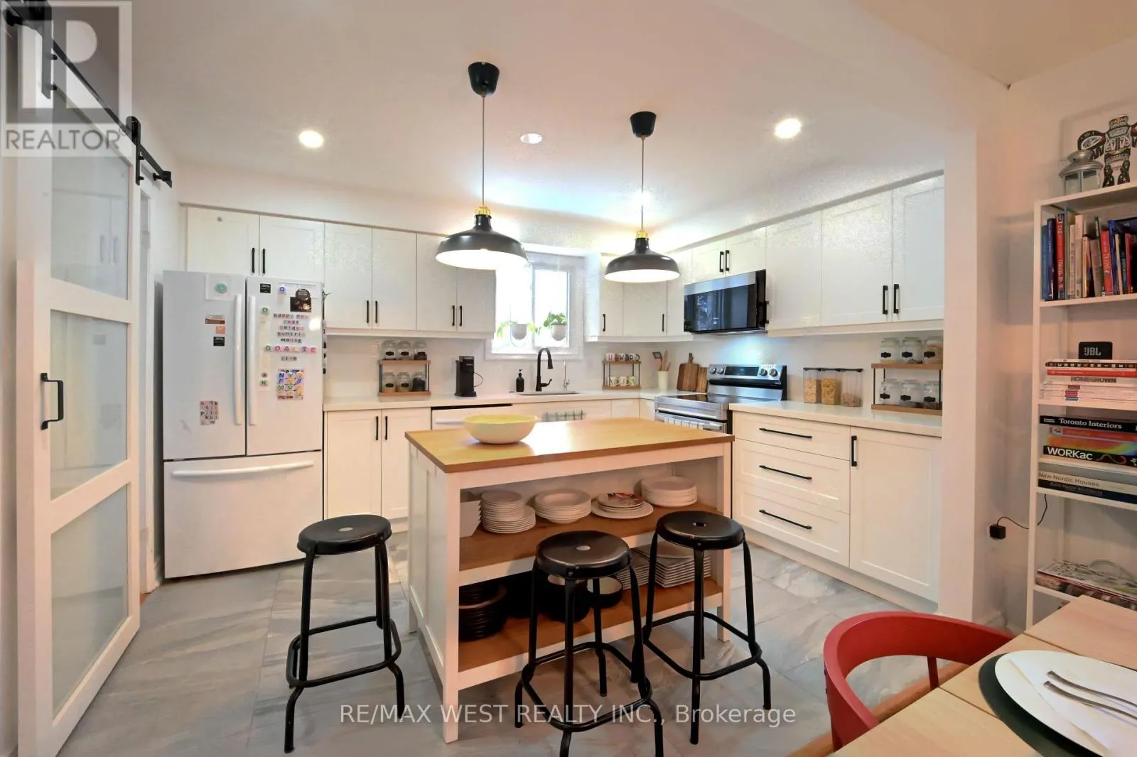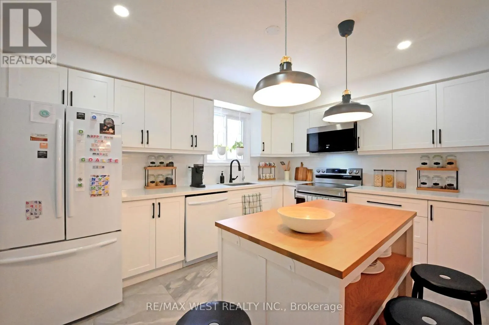 Dundas St East and Kirwin Ave Introducing this beautiful well maintained townhome in Mississauga's prime location. Featuring 4+1 bedrooms and 2 full bathrooms, with approximately 1,300 square feet of living space, this home is conveniently located within walking distance of the Cooksville Go Station, a few bus stops to Square One mall, and direct access to the upcoming Hurontario Light Rail Transit (LRT). As Largest unit in the complex, this corner unit 2-storey townhome offers the space and privacy of a detached house. Built entirely above grade to eliminate any risk of flooding. This residence has been updated with a new roof shingles ( 2025), a freshly asphalt-paved (2025) Two- car driveway and garage, and all-new windows (2022) - including an expansive living room picture window that floods the home with light. The second level features an open-concept living and dining area anchored by a fully renovated kitchen ( 2022) featuring generous pantry storage and a private laundry room discreetly tucked behind a sleek modern barn door. On the third level, you'll find four well-sized bedrooms and a 3-piece bathroom (2022). The Ground floor includes an additional bedroom with access to a full bathroom (2022), making it ideal for a home office, guest suite, or in-law accommodation. Outdoors, the home stands out with the largest yard in the complex a fully fenced retreat perfect for summer BBQ and spacious patio entertaining. This move-in Ready, high capacity home presents a rare opportunity in a highly sought after location. (id:27476)