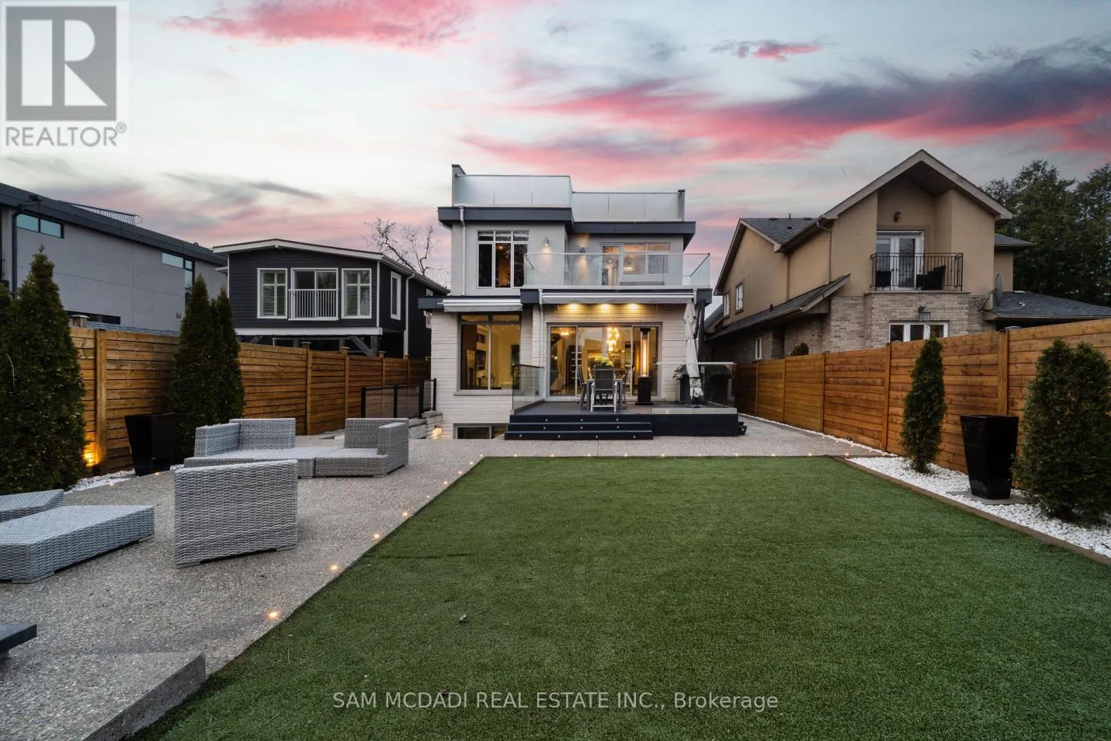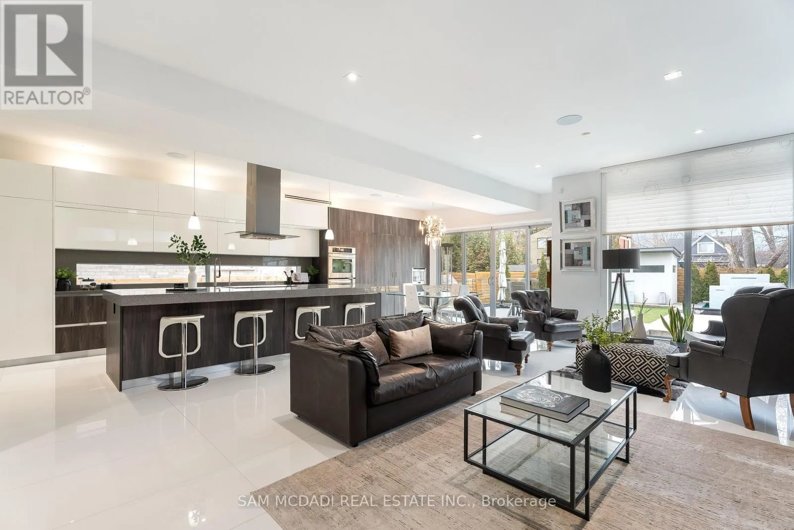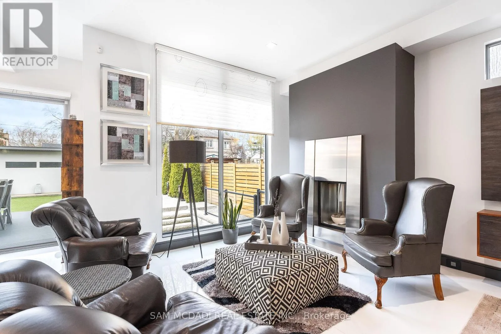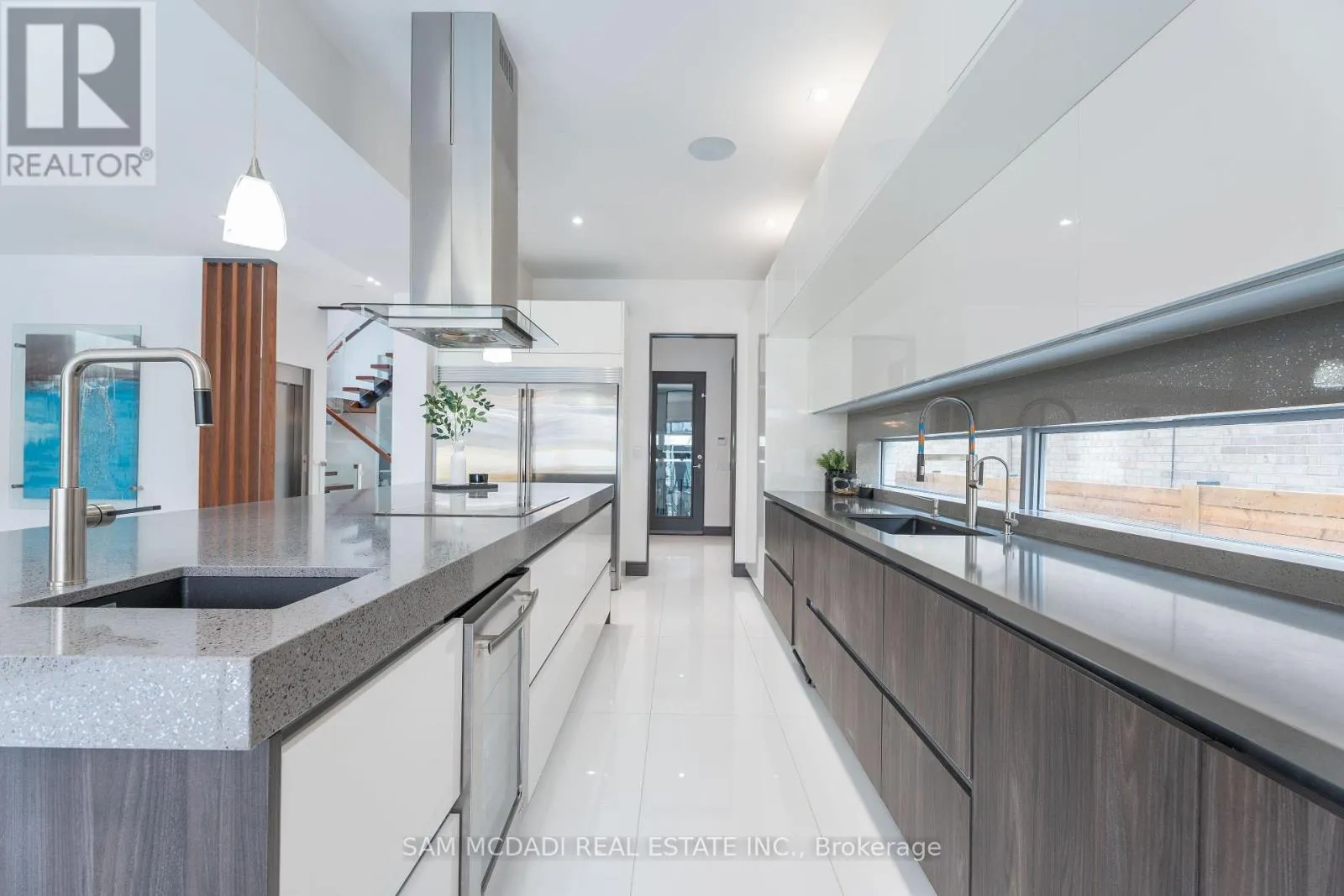 Cross Streets: Lakeshore Rd E & Montbeck Cres. ** Directions: Via Lakeshore Rd At Montbeck Cres- Head toward Lakeshore Rd E, then continue onto Montbeck Crescent. Turn right onto Byngmount Ave, then left onto Goodwin Rd. This spectacular, state-of-the-art contemporary designer home is located in the prestigious Lakeview community. The residence features 5-bedrooms and 6-bathrooms, offering over 5,000 SF of luxury living, finished to the highest standards. The main floor showcases white porcelain flooring and 10-foot ceilings throughout, complemented by a mahogany elevator with stainless steel doors and a striking mahogany floating staircase. The sun-drenched living room features a Napoleon Tureen fireplace and overlooks the expansive backyard. The immaculate kitchen is equipped with high-end appliances, full-length custom Italian cabinetry, quartz countertops, and a dramatic 14-foot centre island. Additional features include a built-in KitchenAid garburator, a built-in bar with automatic lighting, and a Thermador coffee station. The second floor offers 4 generously sized bedrooms and 3 beautifully appointed bathrooms. The third floor is dedicated to the primary retreat, featuring a walk-in closet with custom built-in shelving and a five-piece ensuite with a freestanding tub, heated flooring, and heated towel racks. This level also provides walkout access to an approximately 600-square-foot deck wired for a hot tub, with hot and cold water rough-ins for a bar and speaker rough-ins. Designer décor is showcased throughout the home. Additional highlights include a car lift in the garage and a private, award-winning backyard featuring a 13' x 14' three-tier designer fountain. Aluminum decking has been installed on all four balconies with underlay cushioning. The home is further enhanced by newly replaced heating and cooling systems, including a Lennox 135,000 BTU furnace and a 60,000 BTU, five-ton air conditioning system with a 4 zone management motherboard. (id:27476)
