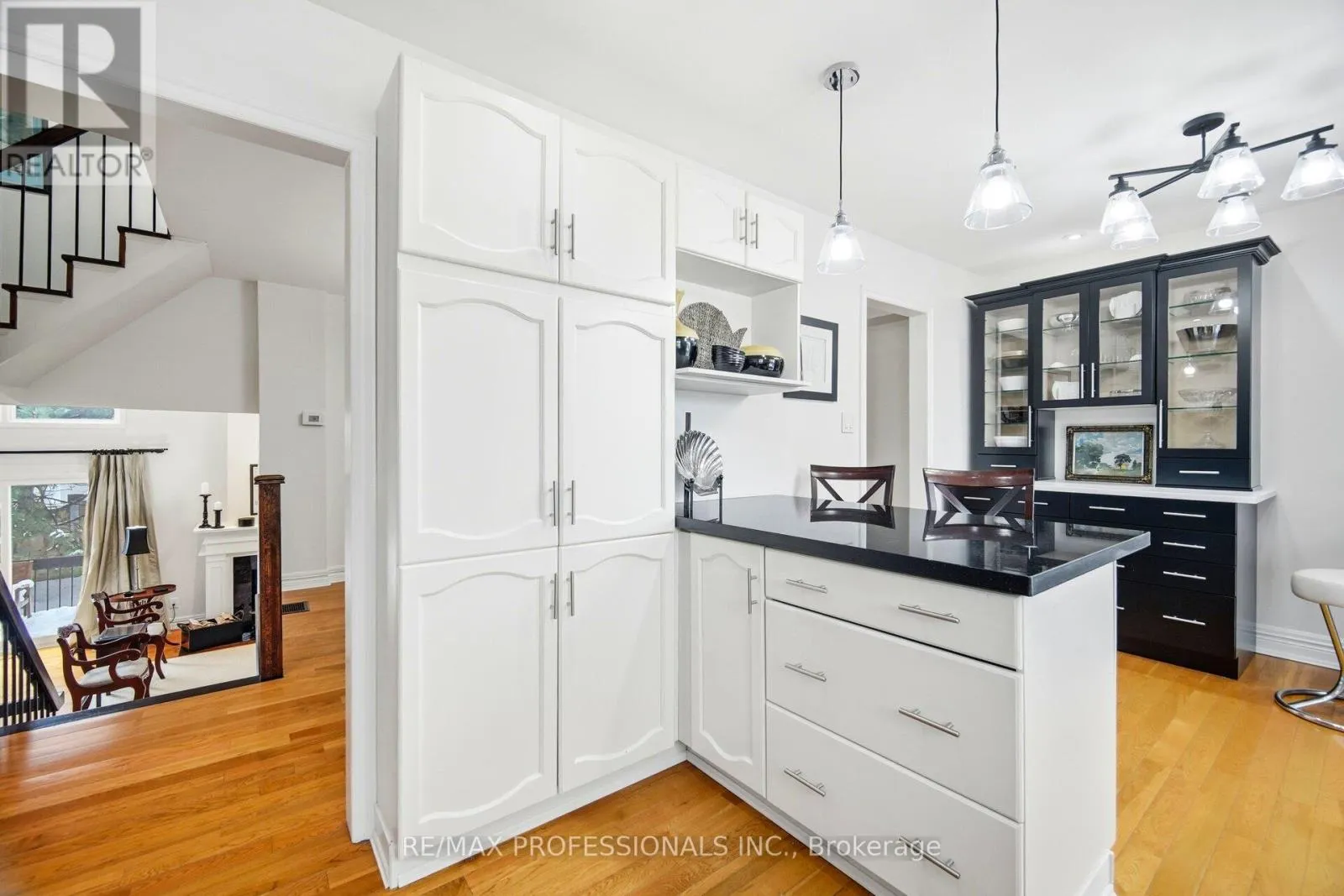Rathburn Rd E and Fieldgate Dr Welcome to Your Dream Townhome in Rockwood Village! Discover this renovated gem offering over 1,865 sq ft of modern living, situated in a well-managed complex on the Toronto-Mississauga border. Every inch of this home shines with hardwood flooring, soaring vaulted ceilings, and an open-concept living area designed to impress. Cozy up by the wood-burning fireplace, or soak in the abundant natural light streaming through large windows. Step outside to your private deck & patio, perfect for morning coffee or evening relaxation. Entertain effortlessly in the spacious family-sized dining area, overlooking the living space and adjacent to a gourmet kitchen complete with new quartz countertops, tiled backsplash, refreshed cabinetry, and stainless steel appliances. Upstairs, retreat to the expansive primary suite featuring a large closet and private 3 pc ensuite, while two additional generous bedrooms offer comfort for family, guests, or home office use. The versatile lower level includes a bright family/recreation room with an above-grade window - the perfect spot for a media room, home gym, or guest suite. Enjoy the unbeatable location - walking distance to shopping, transit, parks, trails, and top-rated schools. Move in and start living your best life in one of the most sought-after communities in Rockwood Village ! (id:27476)