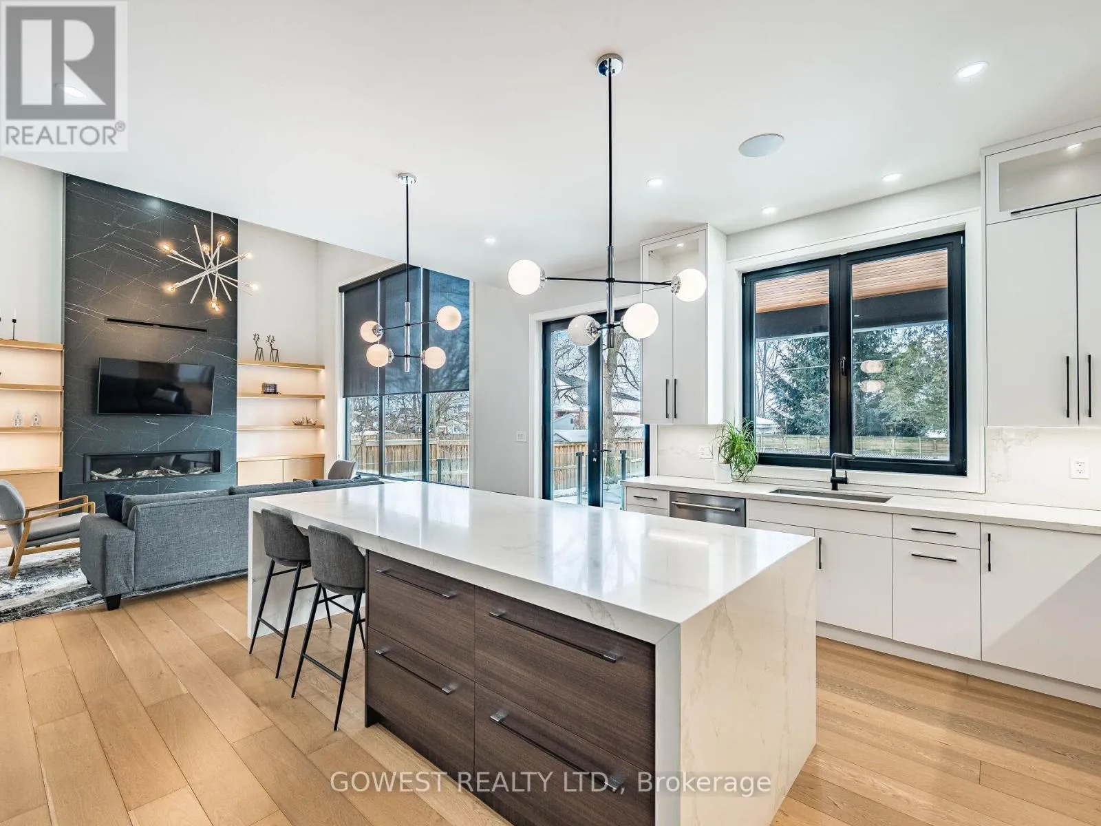 Cross Streets: Mineola Gdns and Atwater Ave. ** Directions: From Mineola Gardens turn East into Niar Ave. Welcome to a custom luxury residence, located in the highly desirable Mineola neighborhood. This property is a masterpiece of architectural innovation & modern luxury. 19 Ft Ceiling Foyer with striking white oak staircase w/glass railings, sets the tone for the refined sophistication that flows throughout the home. High performance tripple-pane tilt & turn aluminum European windows flood the interior with natural light, accentuating the open-concept layout that is both functional & visually stunning. The spacious living & dining areas are designed for entertaining & features a sleek gas fireplace, 10 Ft Ceilings & designer lighting that adds warmth and ambiance. At the heart of the home is a dream kitchen custom designed with style and functionality. It is outfitted w/premium quartz countertops & quartz backsplash with an impressive waterfall island & high-end appliances. A butlers pantry offers additional prep space and custom-built storage. The extended cabinetry adds a refined touch, w/integrated under cabinets lighting.The kitchen overlooks a modern Family room with a 16 Ft ceiling and elegant gas fireplace with floor to ceiling Italian tiles. Premium quality engineered hardwood flooring on main and second floor. The primary suite is a private retreat, boasting a large balcony, a spa-inspired ensuite complete with a freestanding soaking tub, oversized rainfall shower, and dual vanity. A boutique-style walk-in closet with LED-lit custom cabinetry provides ample storage. The additional bedrooms are equally well-appointed, each featuring large windows, custom closets, and access to designer bathrooms w/heated floors & premium fixtures. Finished basement with premium vinyl heated floors and pot lights offers a large recreation room, gym, office/bedroom, bathroom cold cellar/wine room. Walk-Out from the basement takes you to a beautifly landscaped, fenced backyard with large stone patio. Great location, close to Lake Ontario, parks, and Port Credit Village. (id:27476)
