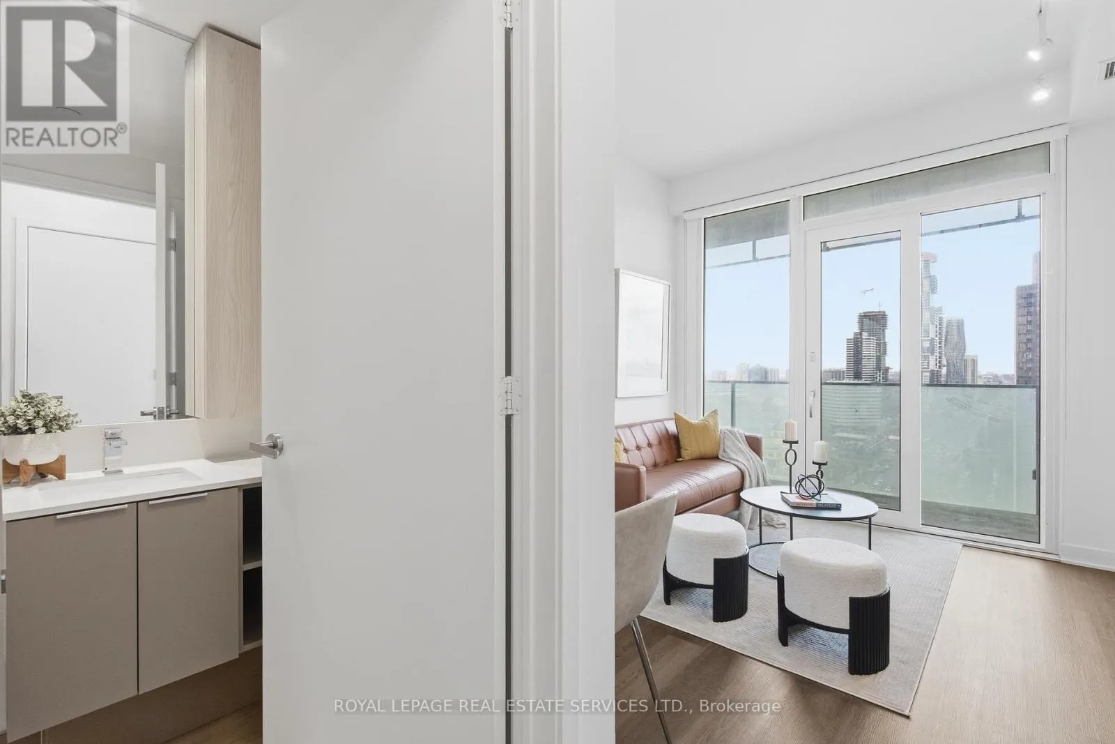Confederation & Burnhamthorpe Modern living in the heart of Mississauga at M City! This stunning 1 bedroom + den corner unit offers 784 sq ft of total space (571 sq ft interior + 213 sq ft balcony). Enjoy a rare wraparound balcony with access from all rooms, perfect for seamless indoor-outdoor living. Floor-to-ceiling windows throughout flood the unit with natural light. The versatile den features a door and floor-to-ceiling windows, making it ideal as a home office or additional sleeping area. The oversized L-shaped balcony provides spectacular, unobstructed city views. M City offers exceptional amenities including 24-hour concierge, swimming pool, fitness centre, BBQ areas, kids' play zone, seasonal skating rink, party room, games room, and more. Located just steps to Square One Shopping Centre, Sheridan College, public transit, and every convenience imaginable. Includes 1 parking spot. A must-see! (id:27476)