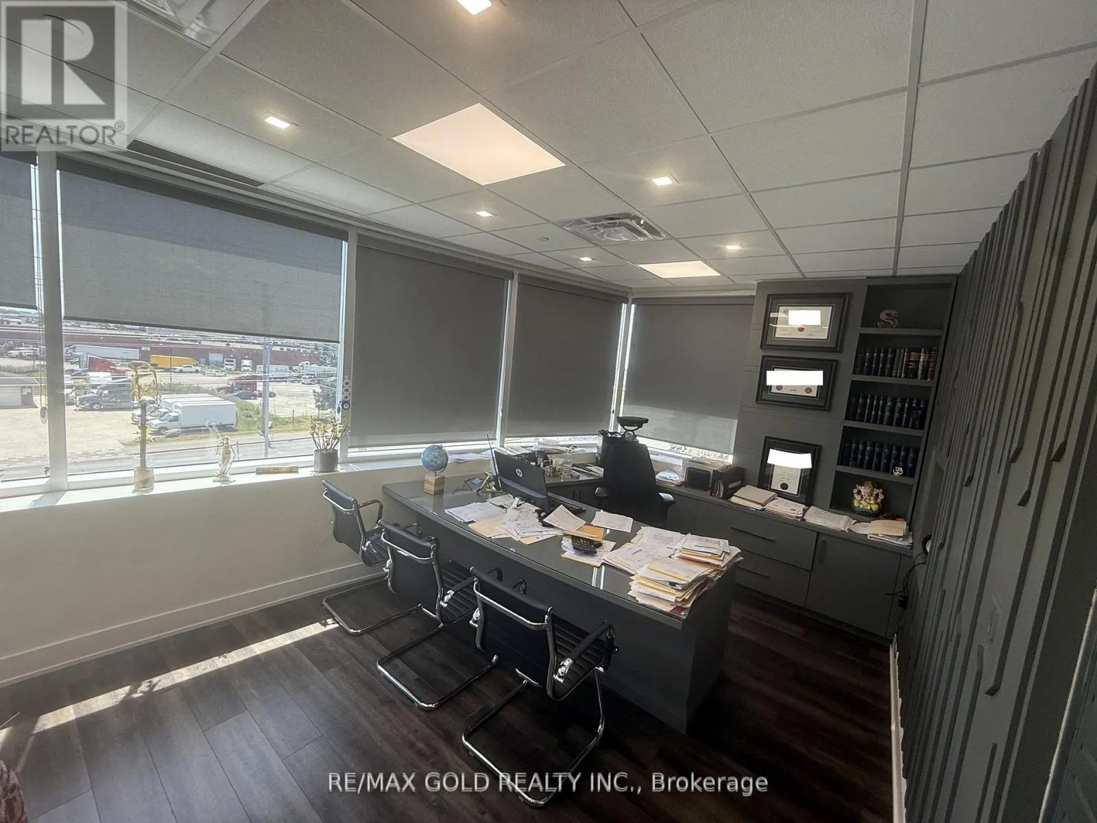 Hurontario/ Derry Luxurious third-floor office suite in the prestigious Red Diamond Corporate Centre! Featuring 3 private offices, spacious glass-enclosed boardrooms ,and reception area, and a modern kitchenette . Prime location on the Mississauga/Brampton border, offering exceptional access to Highways 401, 407, 410, and Pearson International Airport. Ideal for professional businesses seeking a high-end corporate environment in a highly connected area. (id:27476)
