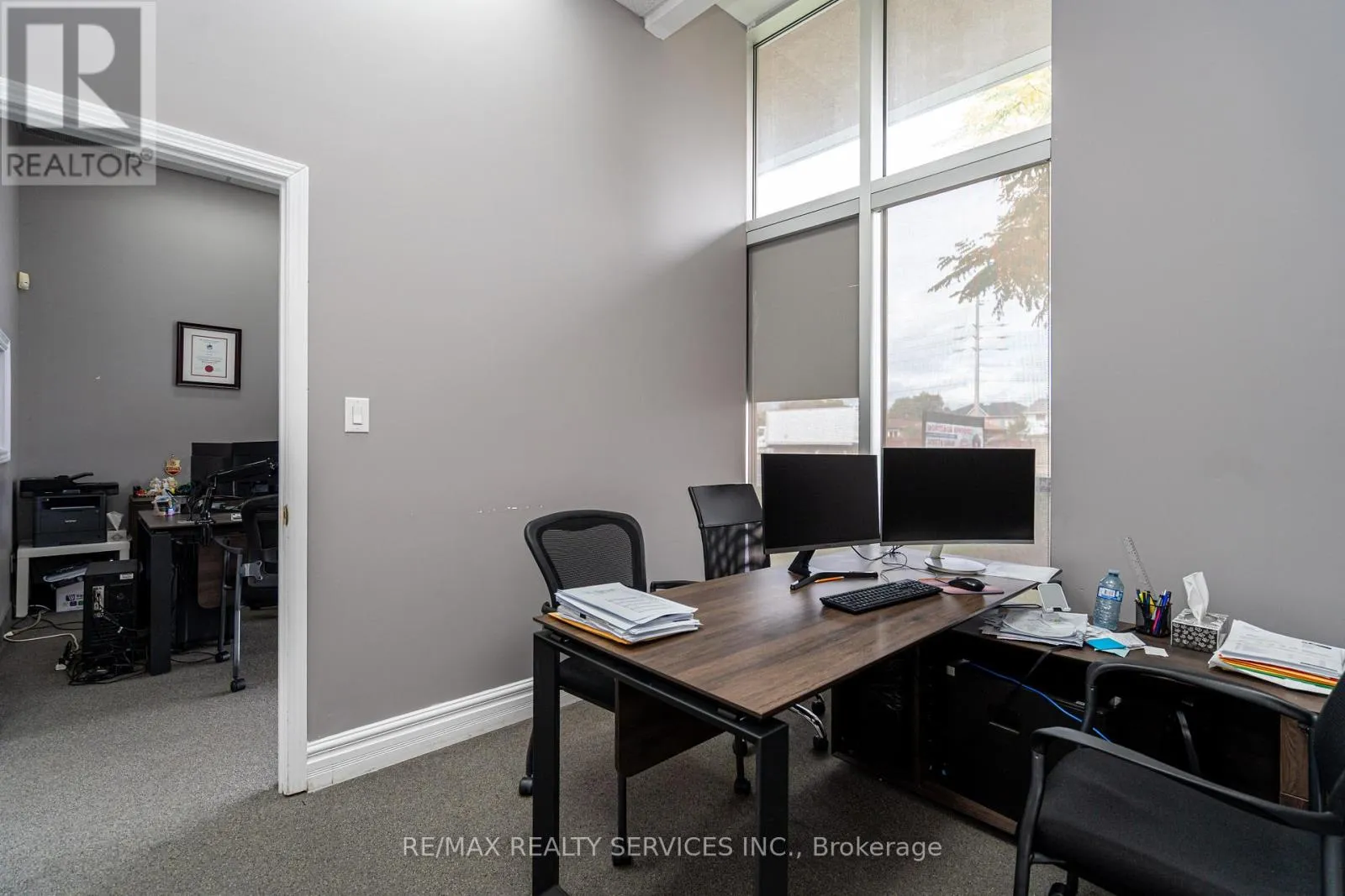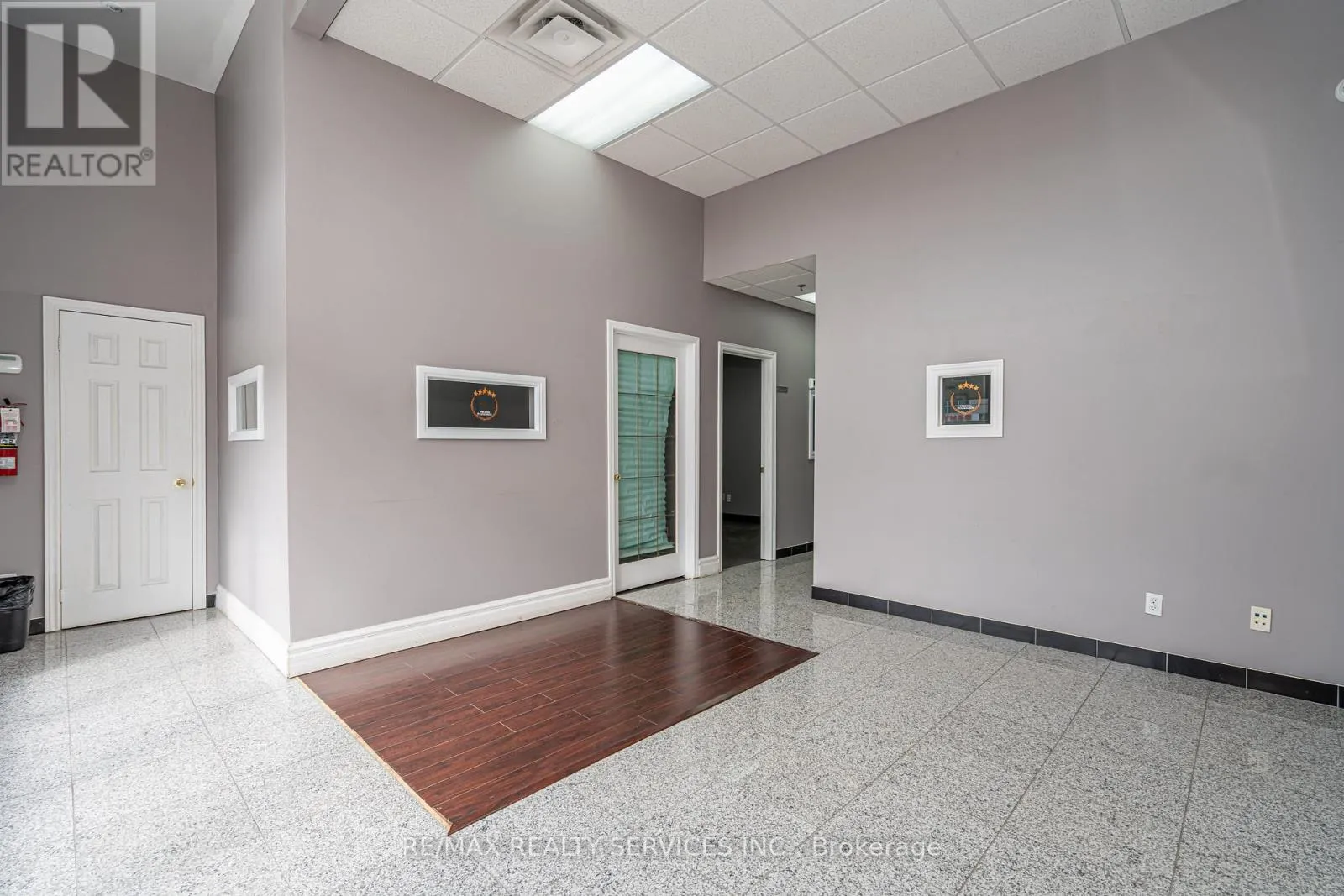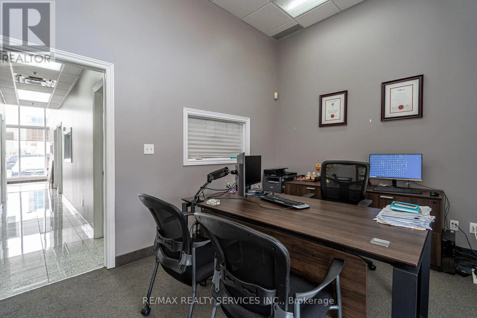 Airport Rd & Drew Rd Attention All Professionals Looking To Start Your Own Business, Your Search Ends Here. Rare opportunity to own a GROUND FLOOR commercial unit with 2 entrances (front & back) in a prime location FACING AIRPORT ROAD. This unit features high ceilings with a welcoming reception & waiting area, 6 Offices, washroom, a separate kitchenette, excellent exposure, and easy access for customers and deliveries. Centrally located steps to public transit, just minutes to Toronto Pearson Airport and major highways like 407, 401, 427 & 409. Current zoning permits a wide range of uses making this a fantastic opportunity with endless possibilities. Extremely Clean & Well Kept. Great opportunity for investors or owner-users in a high-demand commercial corridor. Must See... 1275 sq ft gross including common areas. For accuracy Buyer or Their Agent To Confirm Total Area/Retail Area, Taxes, Maintenance Fees And Permitted uses. Plenty of parking. BONUS: Seller willing to lease back 3 offices. (id:27476)