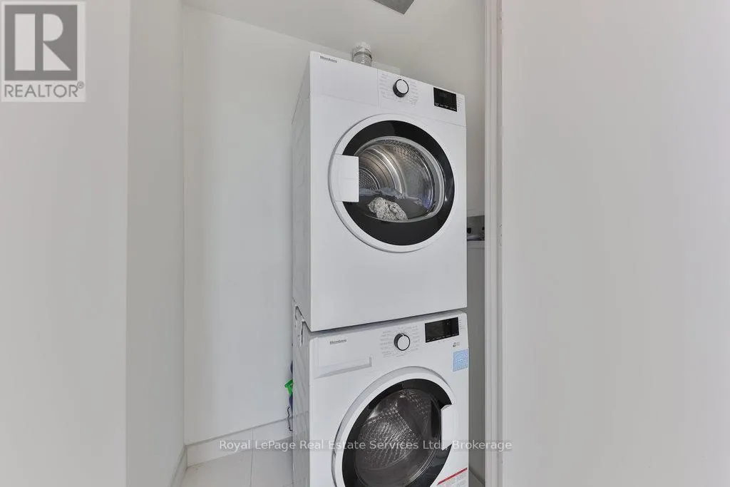 Confederation Pkwy/Burnhamthorpe Luxurious 2-Storey Penthouse in the Heart of Mississauga. Step into this elegant 2-storey corner penthouse unit featuring 2+1 bedrooms, 2.5 baths + 2 parking spaces designed for elevated urban living. The bright & spacious living/dining area is seamlessly connected to an open-concept kitchen, perfect for entertaining. Floor-to-ceiling windows flood the space with natural light and a walkout leads to one of two expansive balconies with stunning views of Lake Ontario and the city skyline. Enjoy a total of 400 sq ft of private outdoor space across 2 wraparound balconies, one on each level. The main floor also includes a versatile office/den with expansive windows and inspiring views, ideal for remote work or a quiet reading space and a powder room. Upstairs, the primary bedroom features a 4-pc ensuite, walk-in closet & balcony access. The 2nd bedroom also offers balcony access and expansive windows, and 3-pc bathroom. An upper-level laundry area adds functionality & ease. The home is finished with 9' smooth ceilings in principal rooms & wide plank high-performance laminate wood flooring, combining comfort, style and function. Residents enjoy world-class amenities including a 24-hr concierge, hotel-style lobby, state-of-the-art fitness center, outdoor pool with shallow deck, party rooms, sports bar, cozy lounge areas with fireplaces, indoor/outdoor children's playgrounds & splash pad, saunas, seasonal outdoor skating rink, rooftop terrace with BBQs & dining area and a multi-purpose games room with private chefs kitchen & dining space. Extras include 2 parking spaces located on the P1 level and 1 storage locker. Parking & amenities are included in the maintenance fee. This residence is just steps from Square One Shopping Centre, fine dining, entertainment, public transit, Sheridan College & University of Toronto Mississauga campus, with easy access to major highways. Rare opportunity to own a true luxury penthouse in one of Mississauga's most sought-after communities. (id:27476)