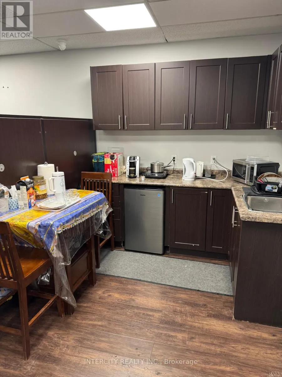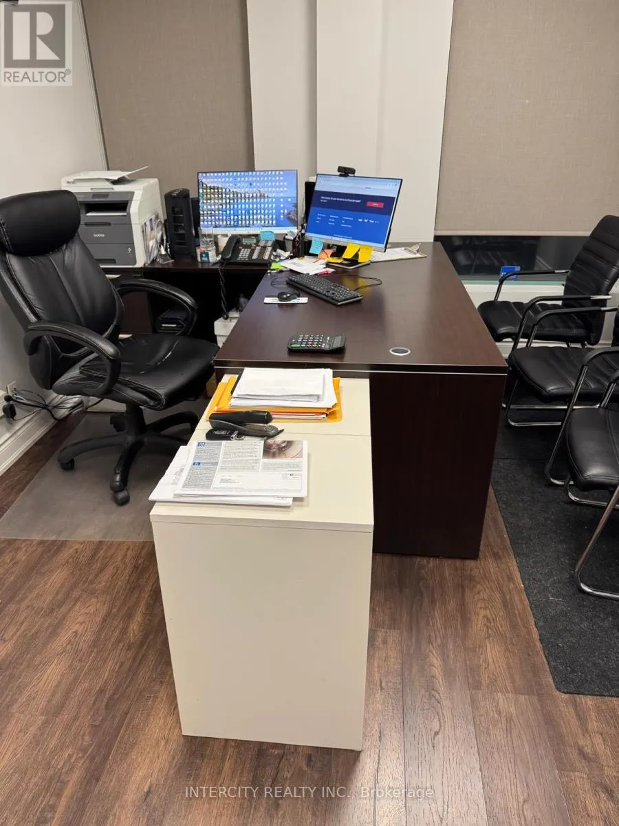 Dixie Rd & Derry Rd Exquisitely Designed And Built, Derry Rd Exposure 1256 Sq. Ft. Ground Floor Office in a Prime North Mississauga Location Close to Major Highways and Airport Attractive Well Maintained Facility. Include Comprehensive HVAC service and Replacement fully Sprinklered. Bell High Speed Fibre. All Existing Furniture, All Desks, Chairs, Board Table, Telephone system, Security Cameras. Commercial condo available with separate cabins suitable for office or medical use, including physiotherapy and dental services. The unit is equipped with a kitchen and washroom facilities, providing a complete setup for professional operations. (id:27476)