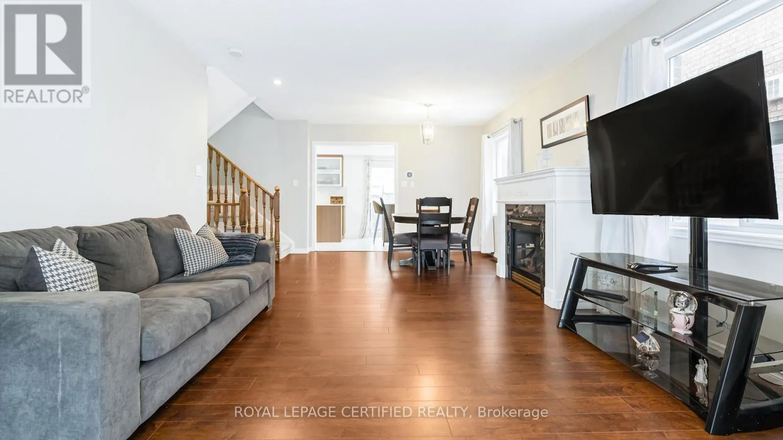Cross Streets: Britannia Rd W & Tenth Line W. ** Directions: Britania Rd W/Belle Donne Dr/Freeman Terrace. Welcome to this well-maintained 2-storey link home in the highly desirable Churchill Meadows community of Mississauga. Offering 3 generous bedrooms and 3 bathrooms, this home features a functional and family-friendly layout. The main floor boasts a combined living and dining area highlighted by a cozy fireplace, creating an inviting space for everyday living and entertaining. The unfinished basement provides excellent potential for future customization and includes a cold room for added storage. Outside, enjoy the convenience of a single-car garage and an extended driveway accommodating up to 3 vehicles with no sidewalk-a rare and valuable feature. The property is complemented by a cement walkway and patio, ideal for outdoor enjoyment, along with a garden shed for additional storage. Located close to schools, parks, transit, and all essential amenities, this home offers comfort, practicality, and great value in a sought-after neighbourhood. Upgraded gas furnace (2023), central air conditioning (2023) (id:27476)