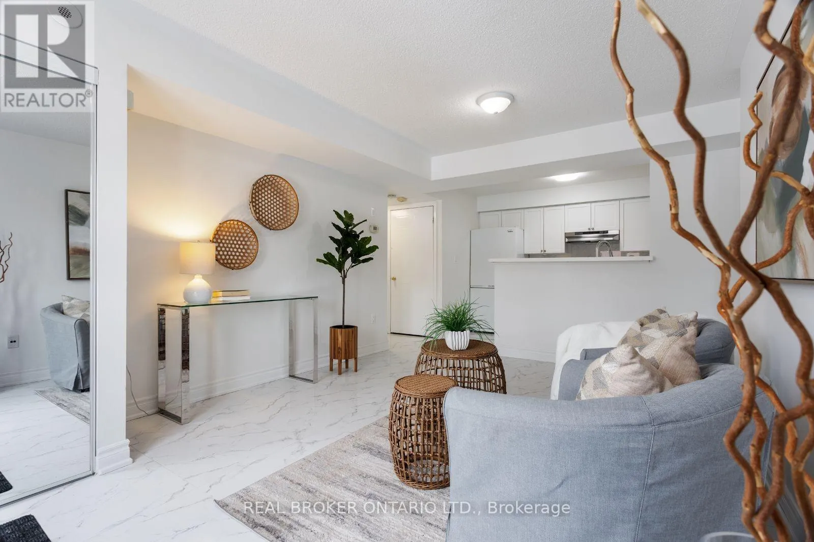 Eglinton Ave W/ Guildwood Way Gleaming on Guildwood. An exceptional alternative to condo living, this fully renovated stackedtownhouse offers refined, low-maintenance living in the heart of Mississauga. Thoughtfully renovated in December 2025 and never lived in since, the residence presents as entirely new, combining modern design, functionality, and everyday comfort without the compromises ofhigh-rise living. With no elevators and no stairs, access is effortless, making this an idealoption for professionals, downsizers, or anyone seeking convenience without sacrificing style. Positioned as a desirable corner unit, the home is bathed in natural light throughout the day, enhancing the open and airy atmosphere. The interior showcases a cohesive, contemporary aesthetic with no carpet throughout, clean lines, and carefully selected modern finishes that feel both current and enduring. The living and dining spaces flow seamlessly, offering a comfortable setting for daily living as well as casual entertaining. The kitchen is sleek and efficient, designed to complement the overall minimalist aestheticwhile maximizing storage and usability. Two well-proportioned bedrooms provide flexibility for a primary retreat, guest room, or home office, while the spa-inspired bathroom delivers a boutique-hotel feel, highlighted by a large stand-up shower and elegant finishes. One parking space is included for added convenience. Ideally located near the intersection ofMavis Road and Eglinton Avenue, the home offers outstanding connectivity-just minutes to SquareOne Shopping Centre, Credit Valley Hospital, Highway 403, and an array of dining, shopping, andeveryday amenities. With a Walk Score of 73, most daily errands can be accomplished on foot, further enhancing the lifestyle appeal. A turnkey, never-lived-in home offering the ease of condo living-without the vertical trade-offs, this is modern Mississauga living at its best. (id:27476)