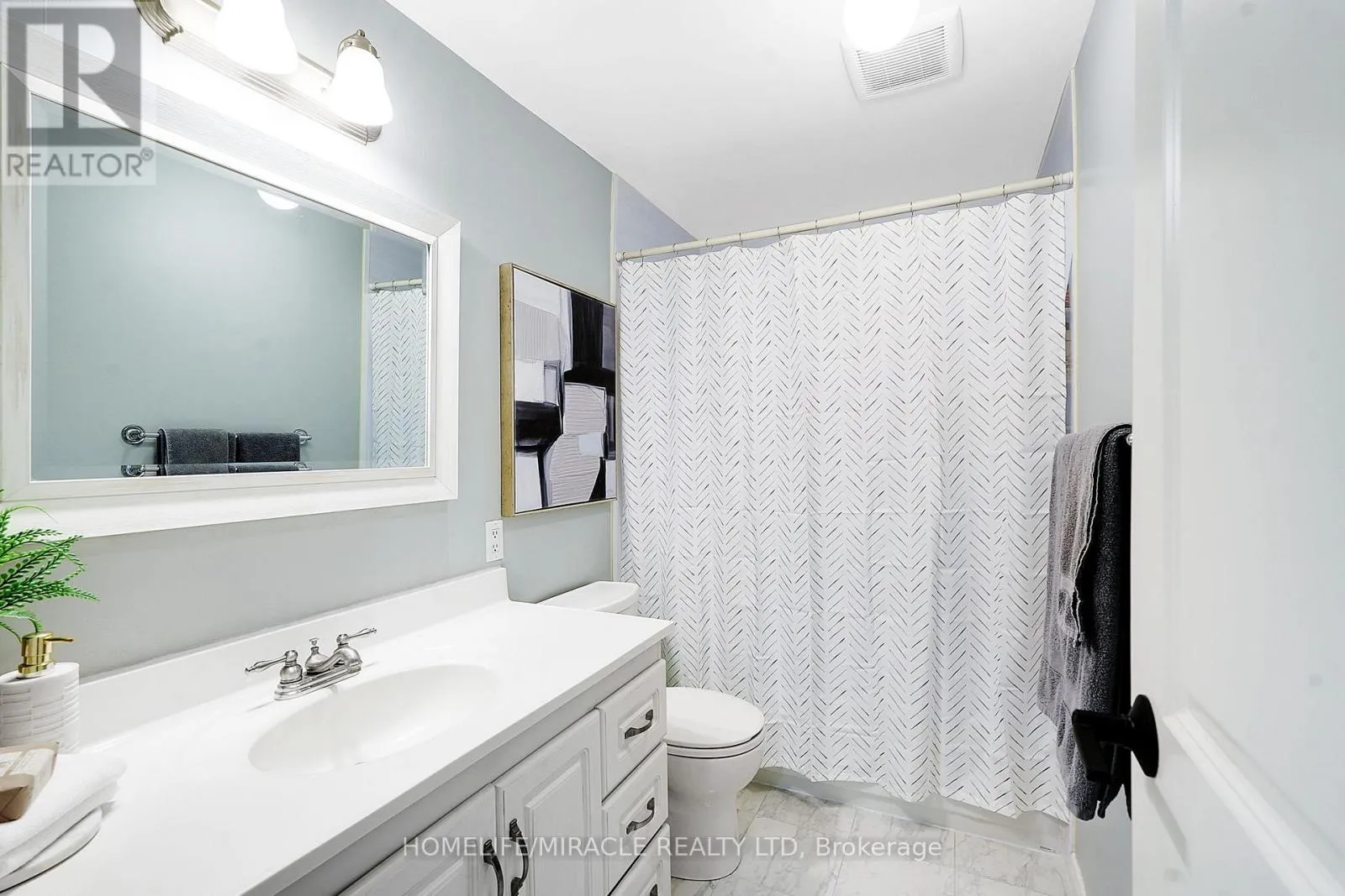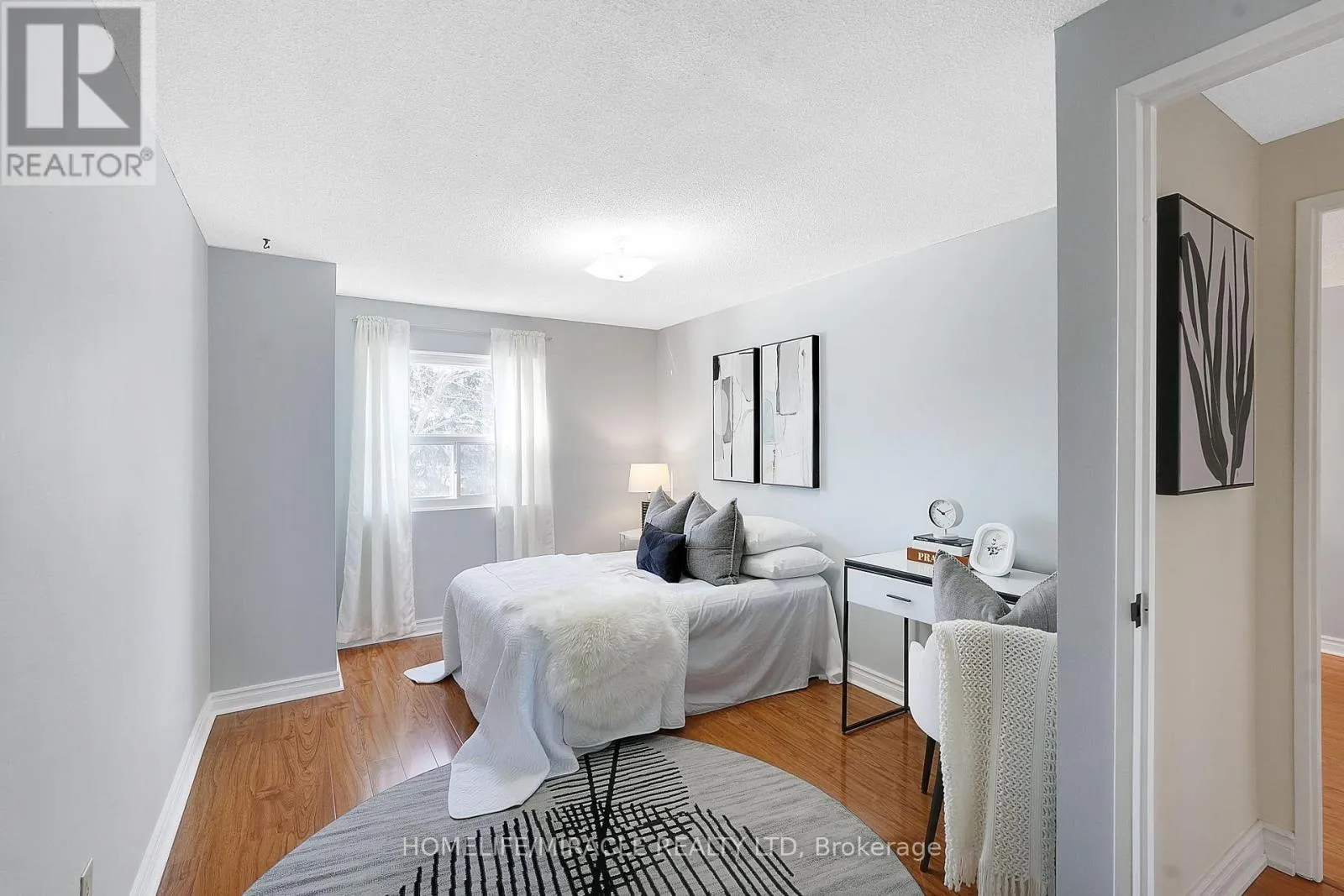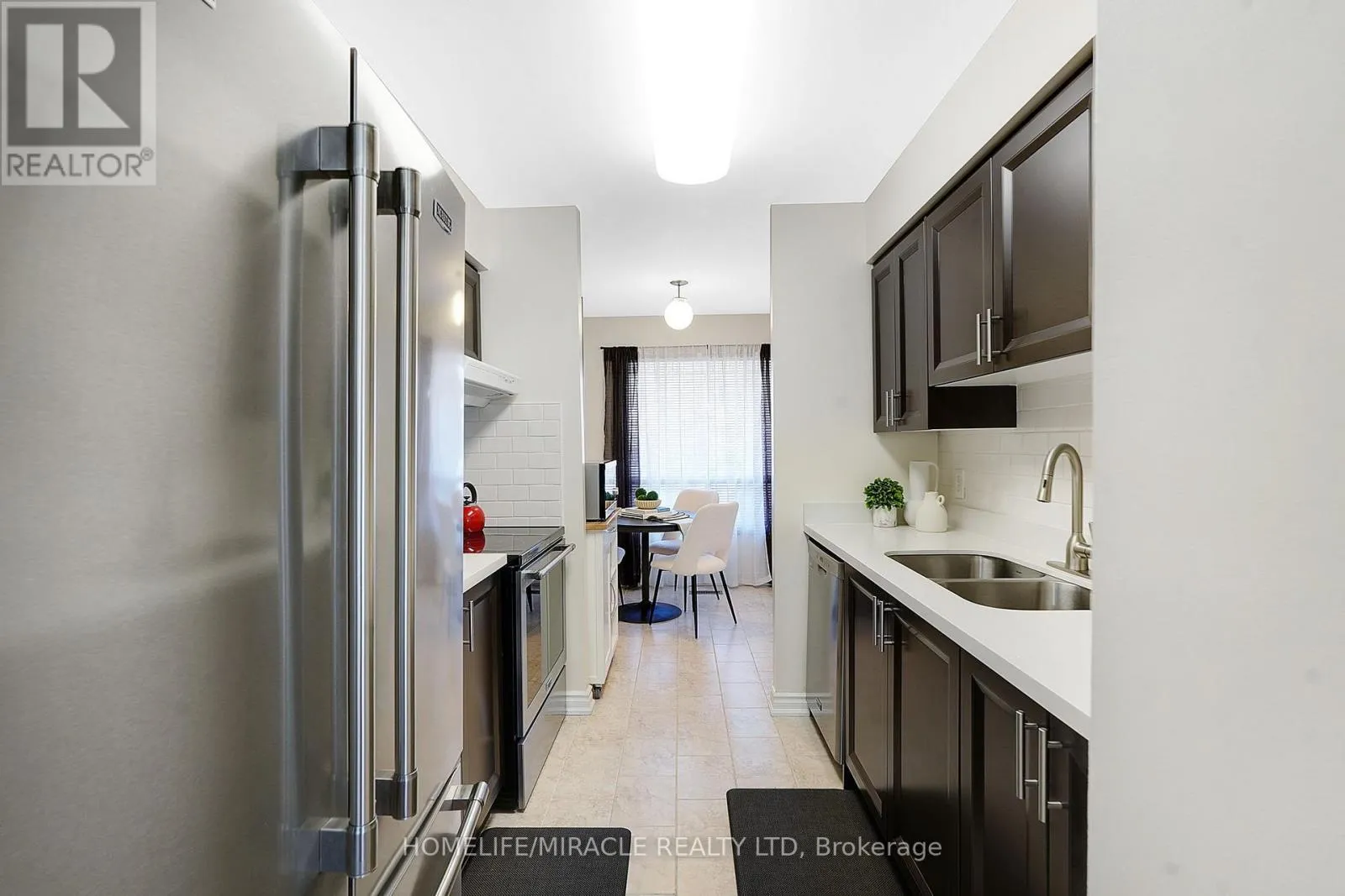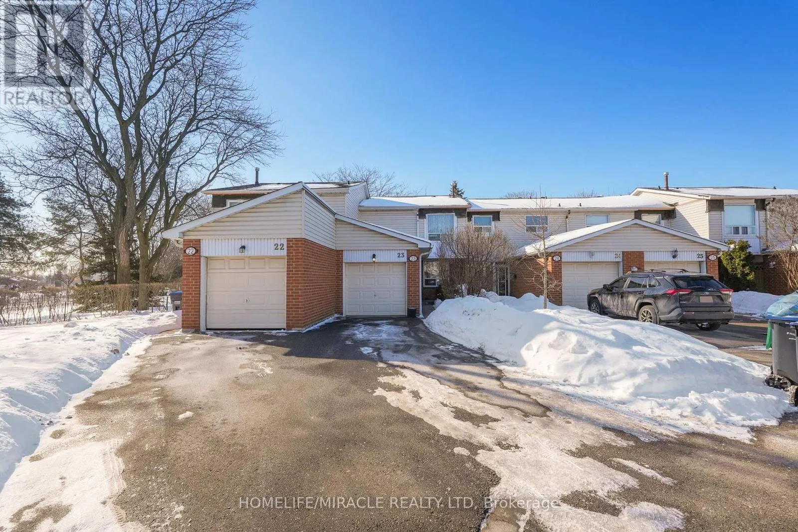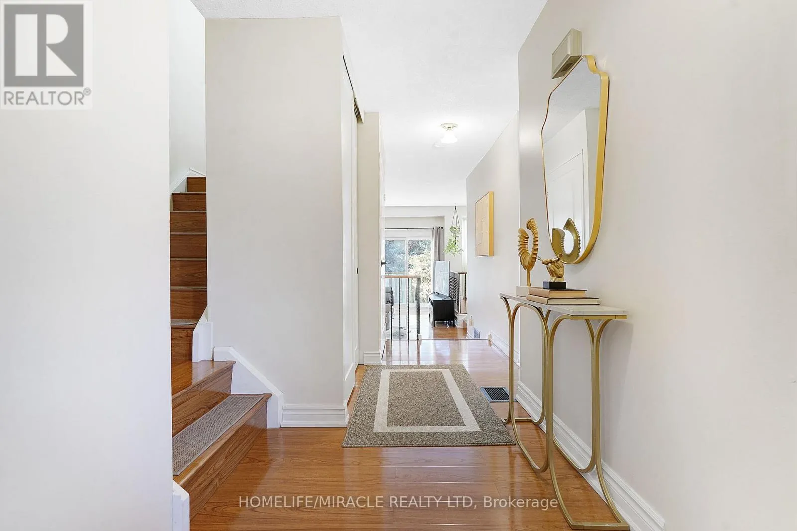 Cawthra Rd & Rathburn Rd E Renovated condo townhouse located on a quiet cul-de-sac in Forestview Village, a prime Mississauga location. This home offers 3 spacious bedrooms and a separate dining room overlooking the living room with a wood-burning fireplace. Sliding doors lead to a private fenced backyard, ideal for relaxing or entertaining. The kitchen was renovated in 2018 with updated kitchen cabinets, countertops, backsplash, and exhaust hood, and features a pantry and breakfast area. Laminate flooring throughout the main and second levels enhances the modern appeal of the home. Energy-efficient upgraded windows throughout and an upgraded patio door (2019). The finished basement, complete with pot lights, provides additional versatile living space. Conveniently located minutes to Highways 403 & 401, Square One, top-rated schools, shopping areas, transit, parks, restaurants, and everyday amenities, this home offers both lifestyle and convenience. The well-maintained, family-friendly complex features ample visitor parking and a true sense of community. Meticulously kept, thoughtfully upgraded, and full of warmth, this stunning home is perfect for those seeking comfort, functionality, and timeless charm. (id:27476)