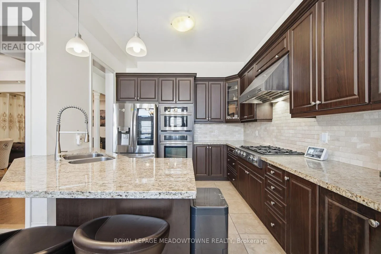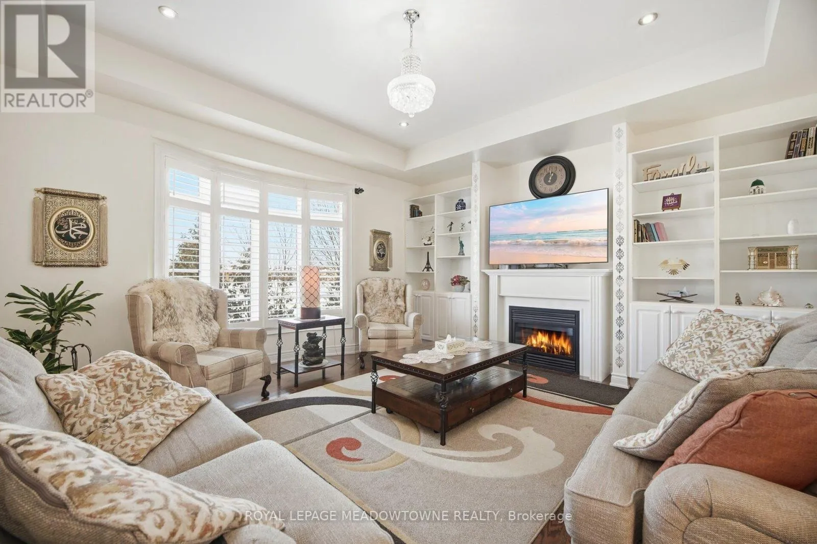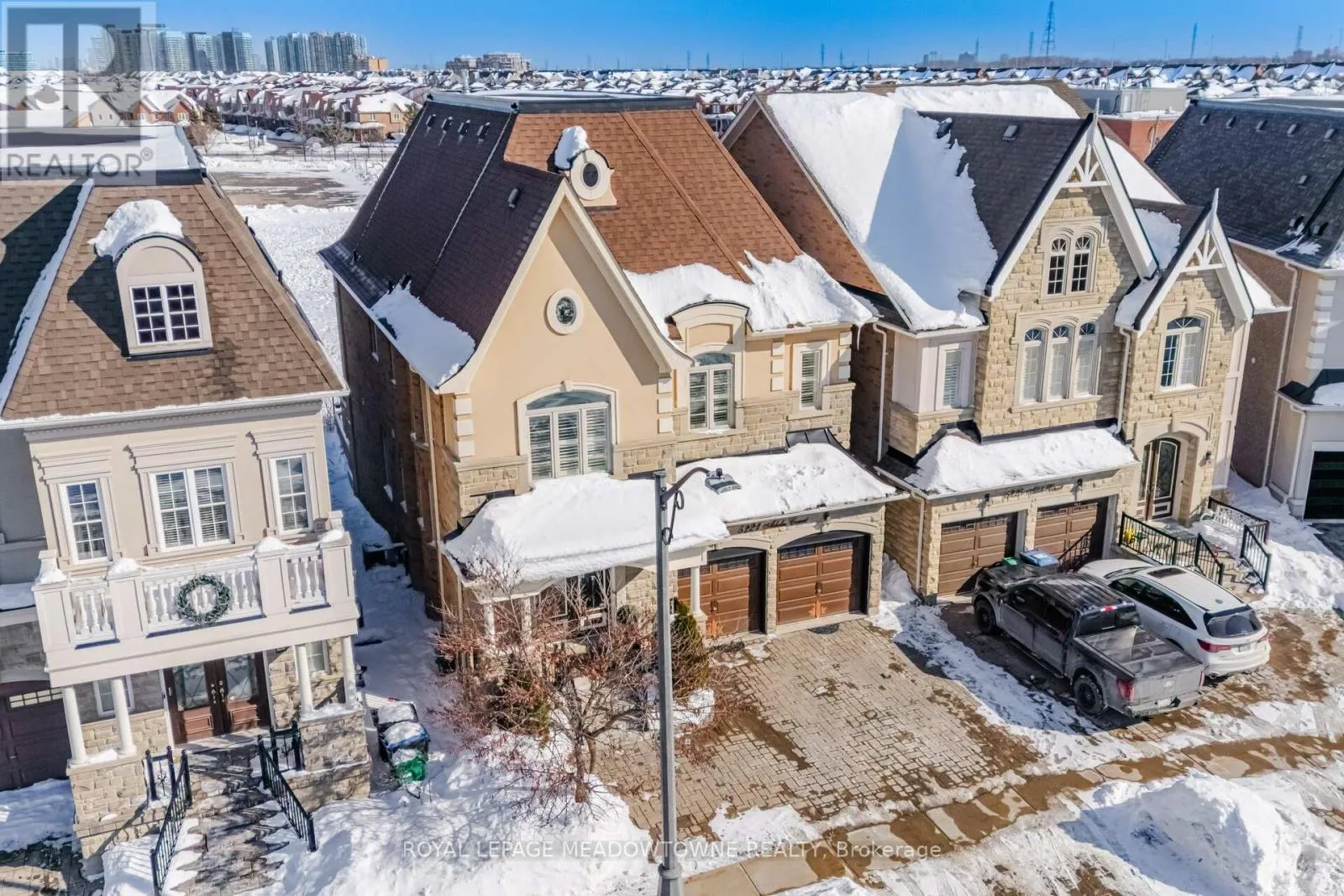 Erin Centre & Winston Churchill Absolutely stunning executive estate home positioned on the most exclusive and finest street in Churchill Meadows, quietly nestled on a prestigious cul-de-sac offering unmatched privacy and distinction. This meticulously maintained residence showcases a rare three-car driveway and two-car garage equipped with an EV charger, soaring ten-foot ceilings on the main level, nine-foot ceilings on the second level, and a professionally finished walk-out basement designed for elevated living. The home features four full bathrooms plus a powder room, smooth ceilings throughout, and convenient upper-level laundry with brand new machines. The chef's kitchen is crafted for luxury entertaining, featuring smart Samsung appliances under warranty, an elegant breakfast area with walk-out to a two-tier deck, and a gas hookup for seamless indoor-outdoor hosting. The grand primary retreat boasts a fireplace, two expansive walk-in closets, and a spa-inspired five-piece ensuite designed for ultimate relaxation. Secondary bedrooms are equally impressive, offering a Jack and Jill five-piece bath and a private ensuite suite complete with walk-in closet and three-piece bathroom. California shutters throughout provide timeless elegance and refined privacy. The lower level unveils a newly built apartment-style living space finished to an exceptional standard, highlighted by a massive home theatre, two executive offices, and direct walk-out access to the landscaped yard - ideal for extended family, guests, or sophisticated entertaining. Furniture available for purchase. A rare opportunity to acquire a grand, impeccably appointed luxury residence on the most coveted street in one of Mississauga's most sought-after communities. (id:27476)