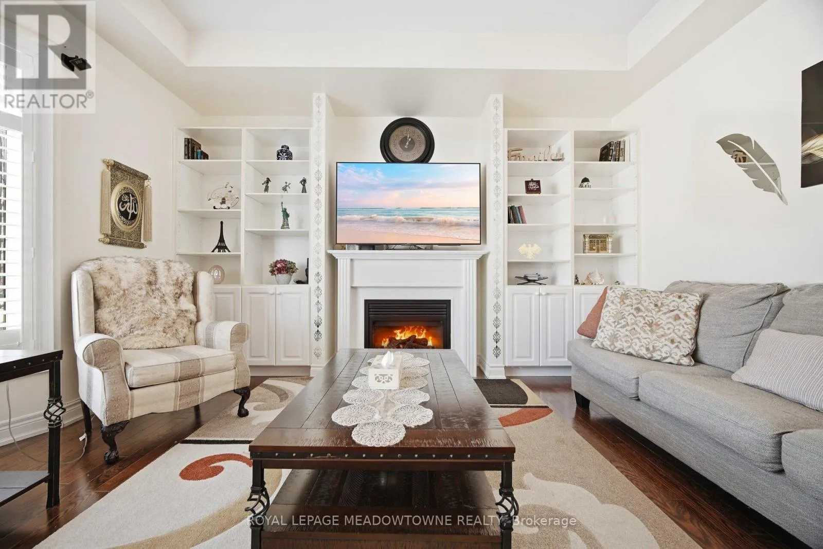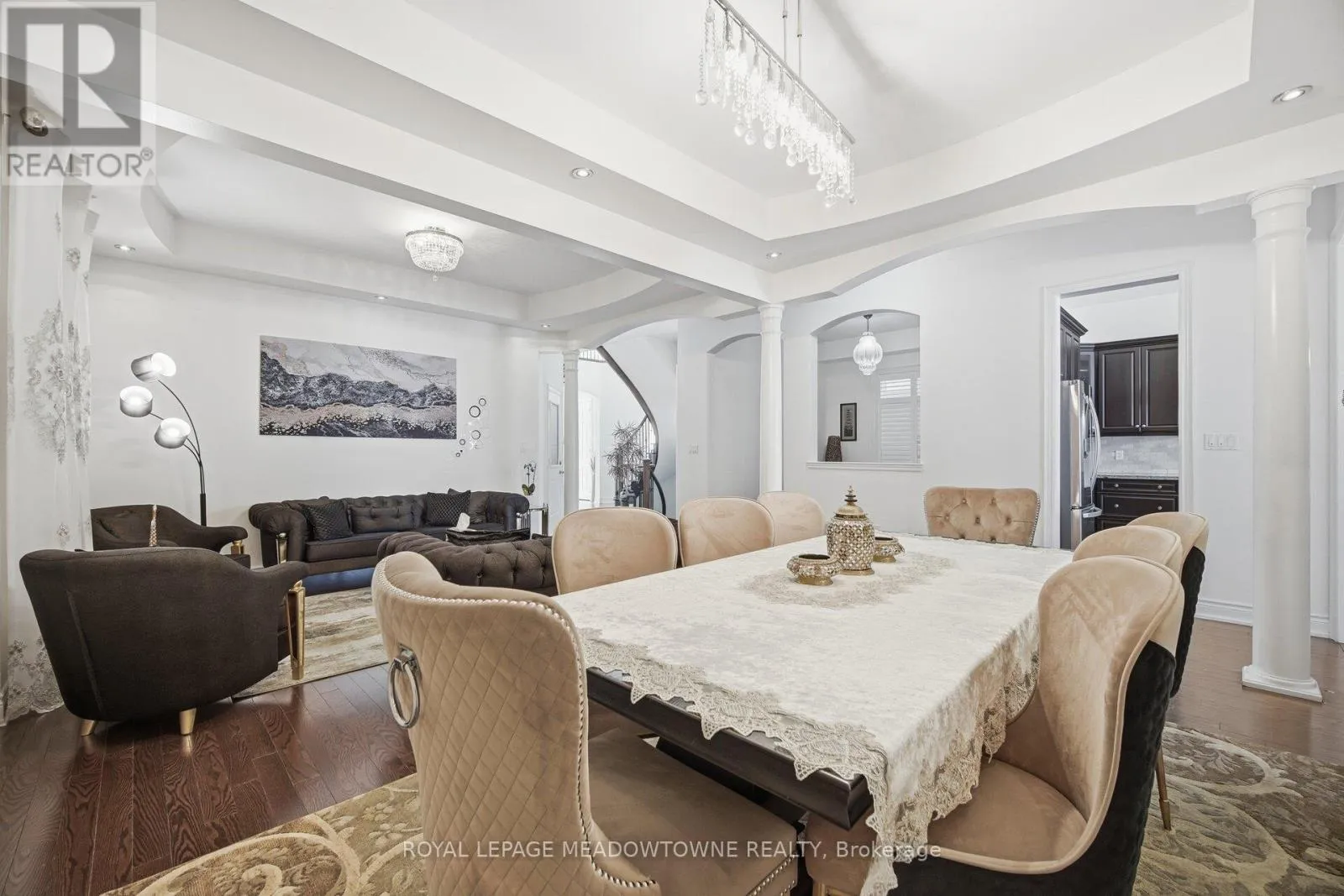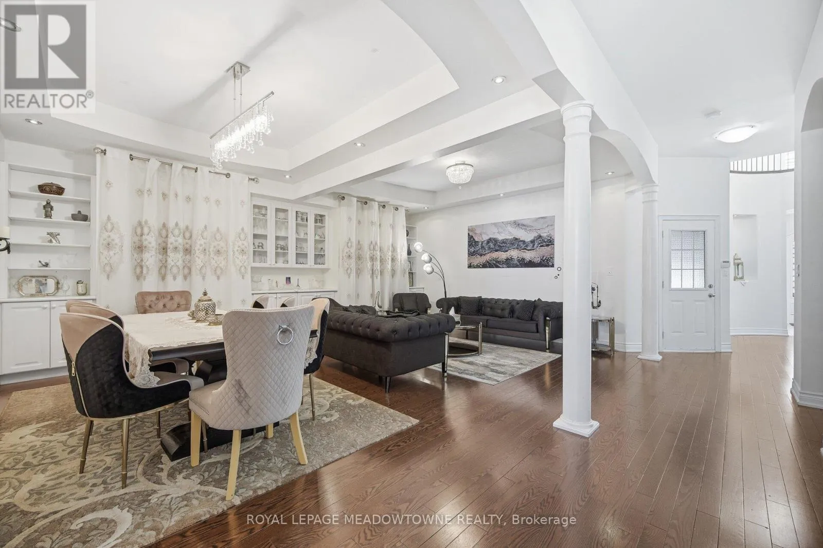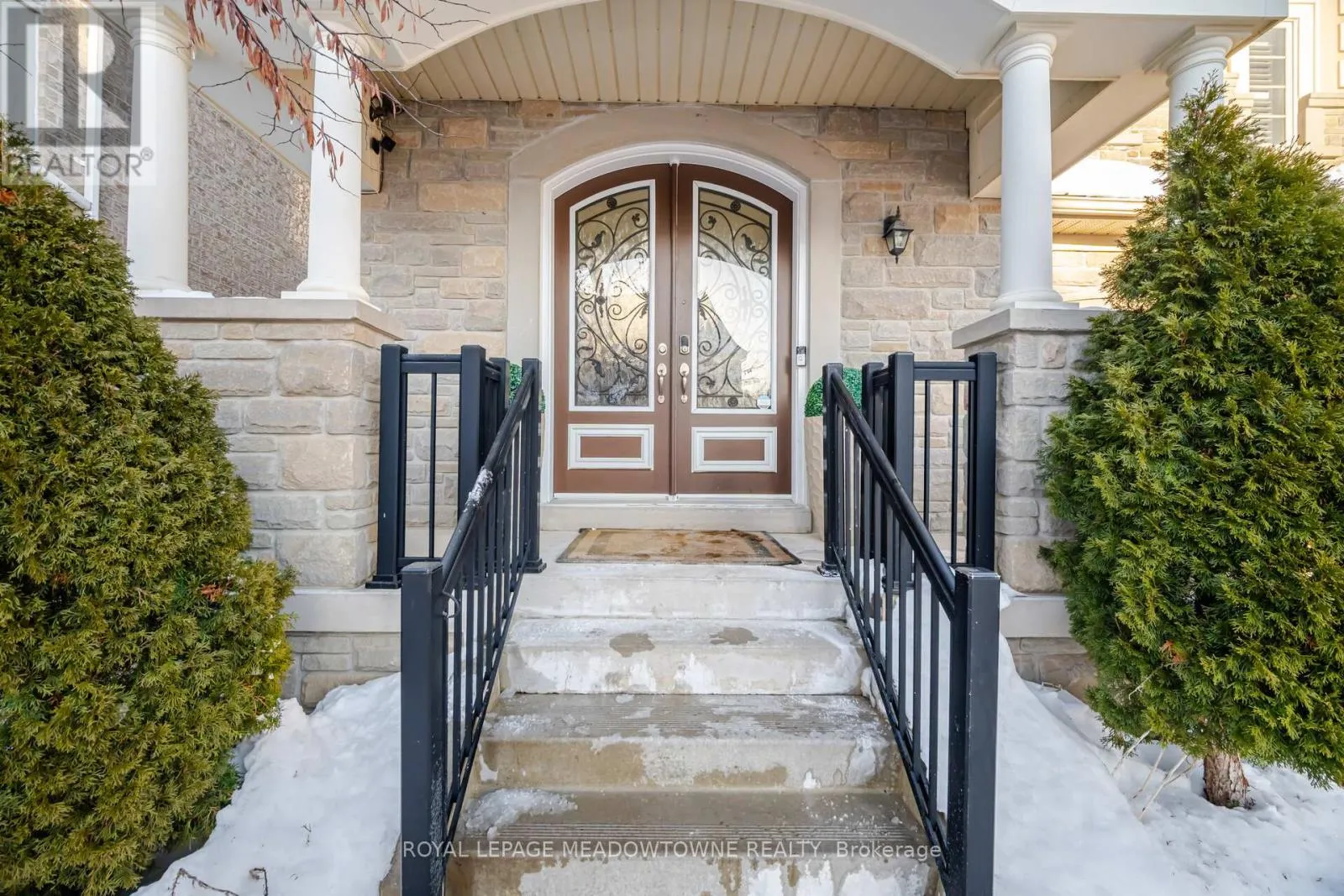 Erin Centre & Winston Churchill Absolutely stunning executive estate home positioned on the most exclusive and finest street in Churchill Meadows, quietly nestled on a prestigious cul-de-sac offering unmatched privacy and distinction. This meticulously maintained residence showcases a rare three-car driveway and two-car garage equipped with an EV charger, soaring ten-foot ceilings on the main level, nine-foot ceilings on the second level, and a professionally finished walk-out basement designed for elevated living. The home features four full bathrooms plus a powder room, smooth ceilings throughout, and convenient upper-level laundry with brand new machines. The chef's kitchen is crafted for luxury entertaining, featuring smart Samsung appliances under warranty, an elegant breakfast area with walk-out to a two-tier deck, and a gas hookup for seamless indoor-outdoor hosting. The grand primary retreat boasts a fireplace, two expansive walk-in closets, and a spa-inspired five-piece ensuite designed for ultimate relaxation. Secondary bedrooms are equally impressive, offering a Jack and Jill five-piece bath and a private ensuite suite complete with walk-in closet and three-piece bathroom. California shutters throughout provide timeless elegance and refined privacy. The lower level unveils a newly built apartment-style living space finished to an exceptional standard, highlighted by a massive home theatre, two executive offices, and direct walk-out access to the landscaped yard - ideal for extended family, guests, or sophisticated entertaining. Furniture available for purchase. A rare opportunity to acquire a grand, impeccably appointed luxury residence on the most coveted street in one of Mississauga's most sought-after communities. (id:27476)