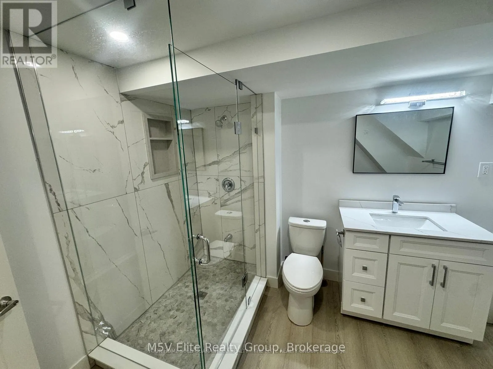 Derry Rd/Airport Rd Welcome to this stunningly renovated lower-level home. Enjoy the functionality of a split-level layout that maximizes space and privacy. With 2 spacious bedrooms and a sleek 3-piece bathroom adorned with elegant marble detailing, every detail of this home has been crafted to enhance your lifestyle. The separate eat-in kitchen with a separate breakfast area, invites you to savor meals in style, featuring quartz countertops, custom flooring, and a stylish backsplash for a modern touch. The spacious living area provides the perfect setting for relaxation and entertainment, while the dedicated laundry room ensures that chores are handled with ease. Situated in a family-friendly neighborhood, this home is within walking distance to parks and schools, with easy access to the Go Station, major highways, TTC routes, and minutes to the airport. You'll appreciate the convenience of the area while enjoying your shared backyard space. Two private driveway parking spaces are included, making this the perfect blend of comfort, style, and location. (id:27476)