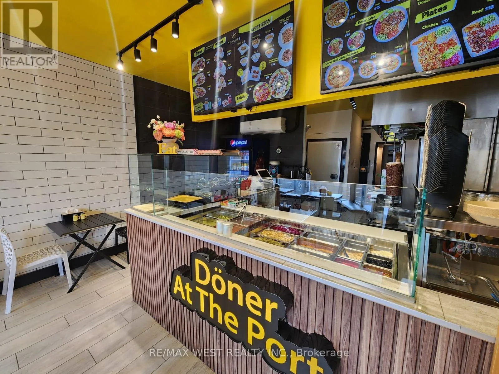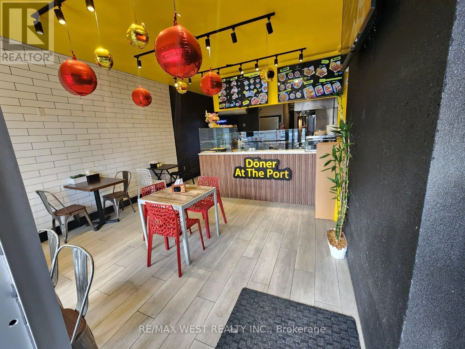 Lake Shore Rd E and Hurontario St Fully Equipped, Turn-Key Restaurant for Sale in Port Credit. 4.7 Google Review (Over 1000 customer). Exceptionally successful, clean, newly renovated, and fully operational restaurant located in the heart of Port Credit, one of Mississauga's most vibrant and touristic areas. This turn-key business is ready to continue the existing concept or be converted to any type of restaurant. Situated in a prime, high-traffic location with strong foot traffic and a loyal customer base. The area is especially busy during the summer, with numerous festivals and events drawing consistent crowds. Fully equipped commercial kitchen with 8-foot hood. All chattels included. Walk-in fridge. Basement for storage and office use .16 seats indoor + 16 seats front patio .Side door access for staff and equipment .2 parking spots included .Monthly Gross rent is $6950. An excellent opportunity for owner-operators or investors looking to establish or expand a restaurant business in a highly sought-after location. (id:27476)
